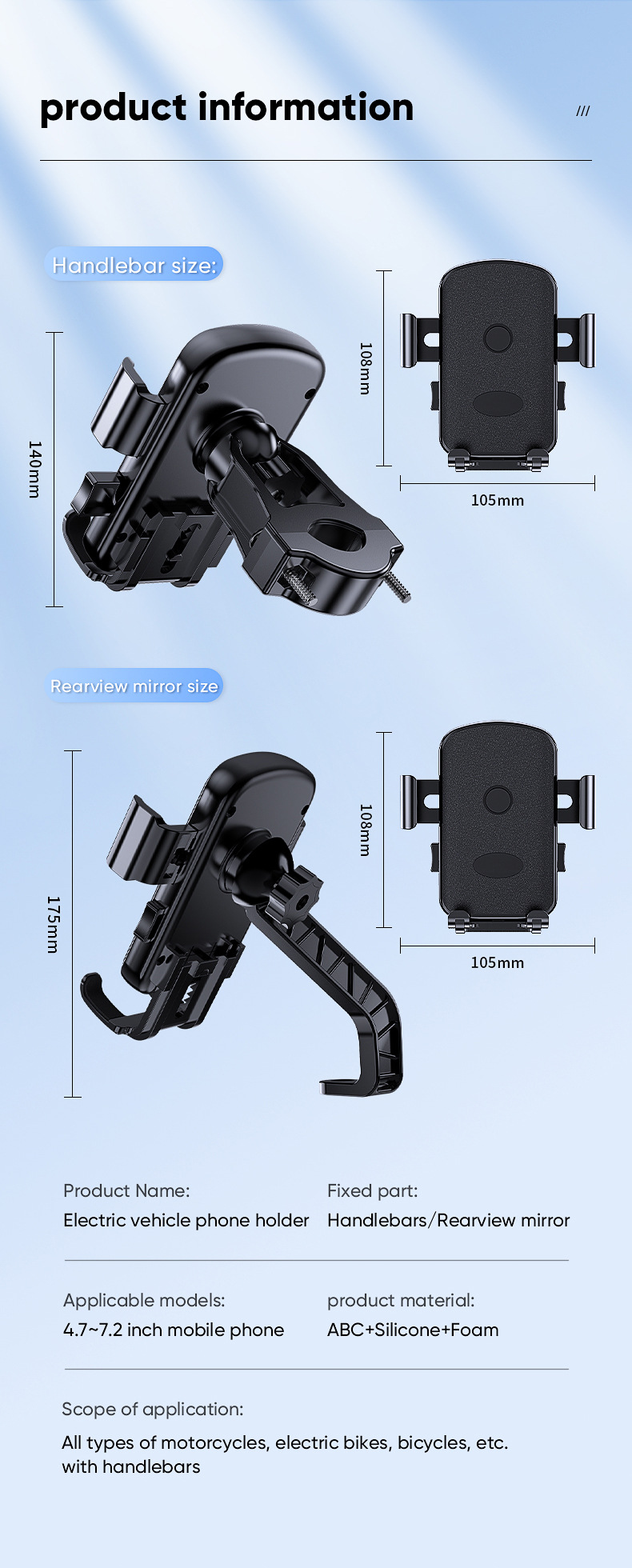 • YC17 사이클링 브래킷 백미러 모델-플라스틱 막대