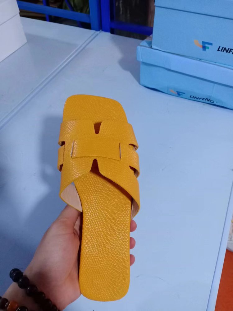국경 간 대외 무역 플러스 사이즈 2024 여름 새로운 T 플랫 힐 플랫 고무 PU 슬리퍼 플랫 여성 신발 도매스토어 가기