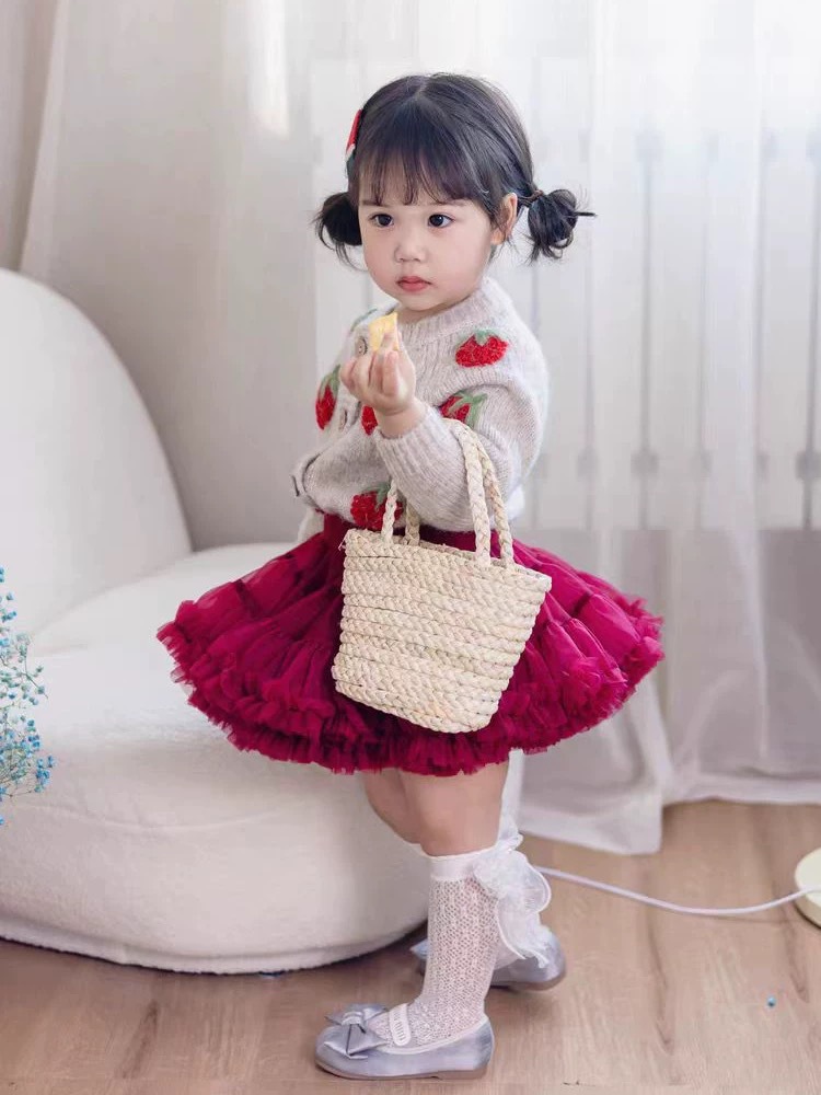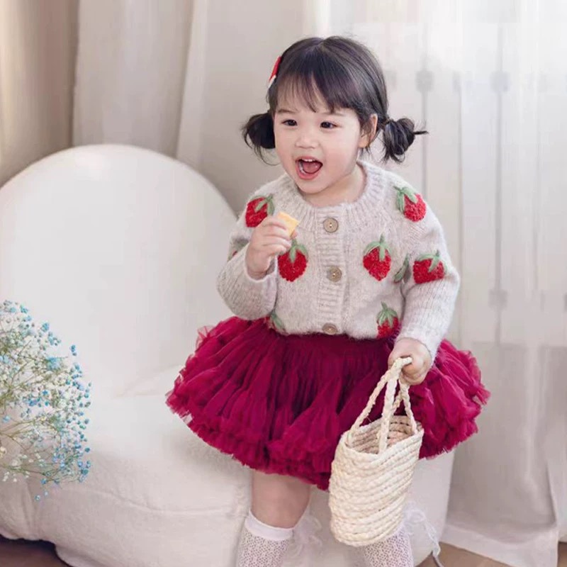 여자 니트 카디건 2025 새로운 가을 옷 아기 소녀 딸기 수 놓은 스웨터 어린이 유행 양모 재킷 유행