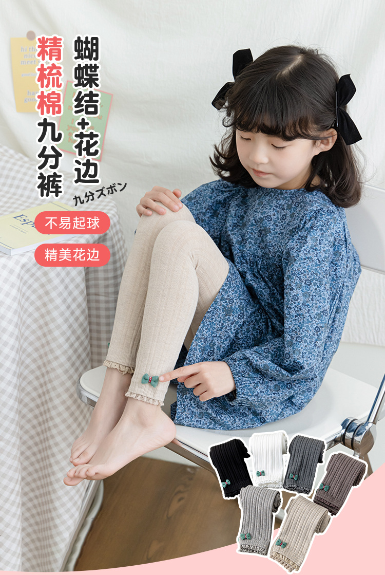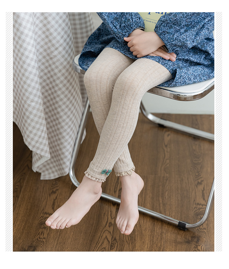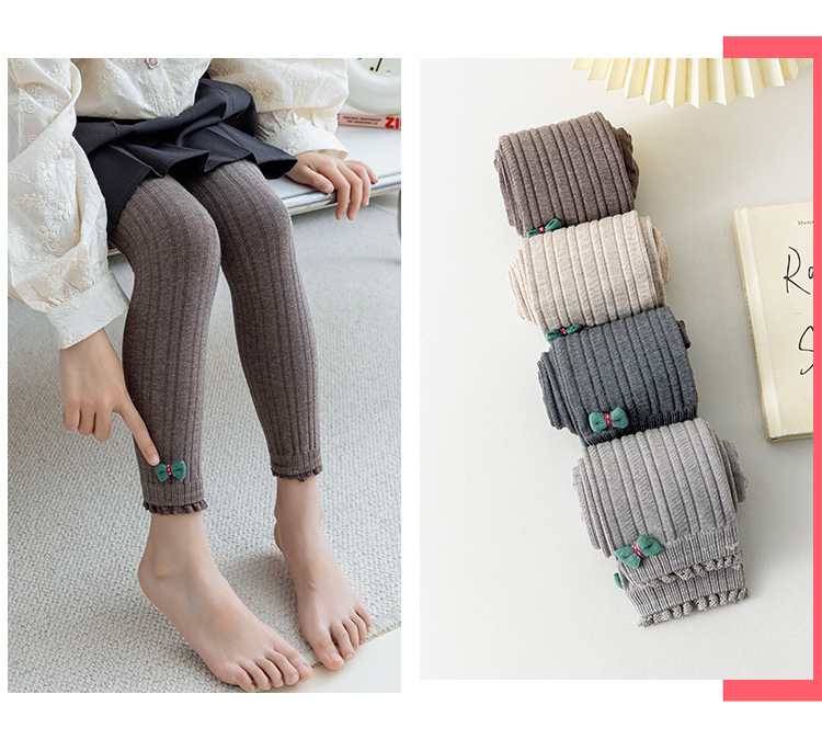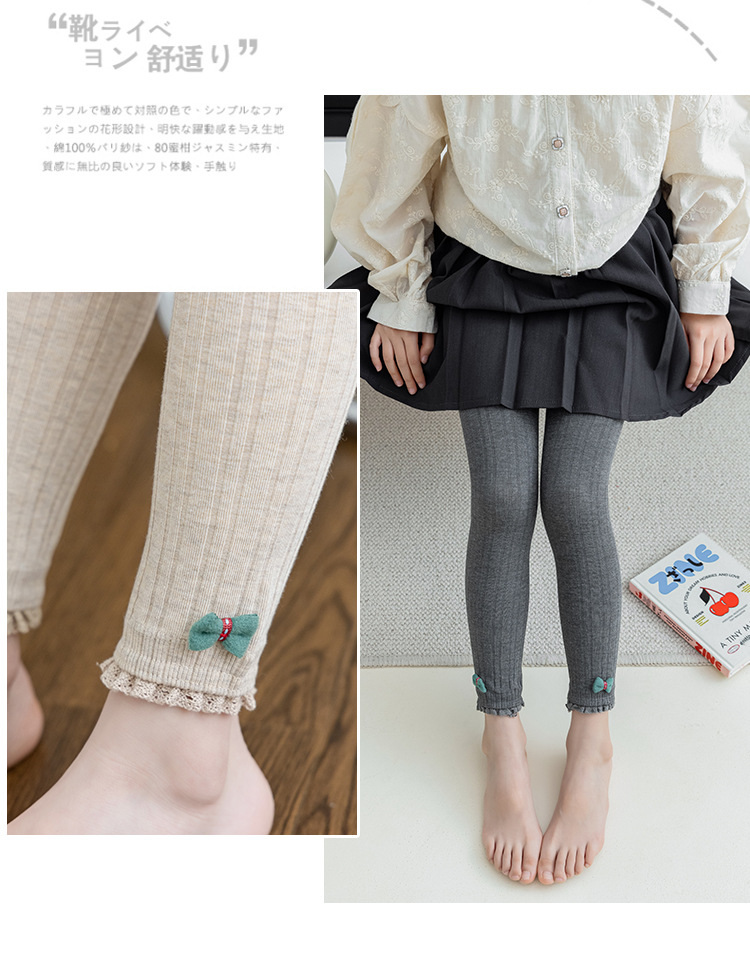 봄과 가을 새로운 녹색 활 어린이 레깅스 소녀 외부 착용 발목 길이 바지 큰 어린이 소녀 레이스 팬티 스타킹