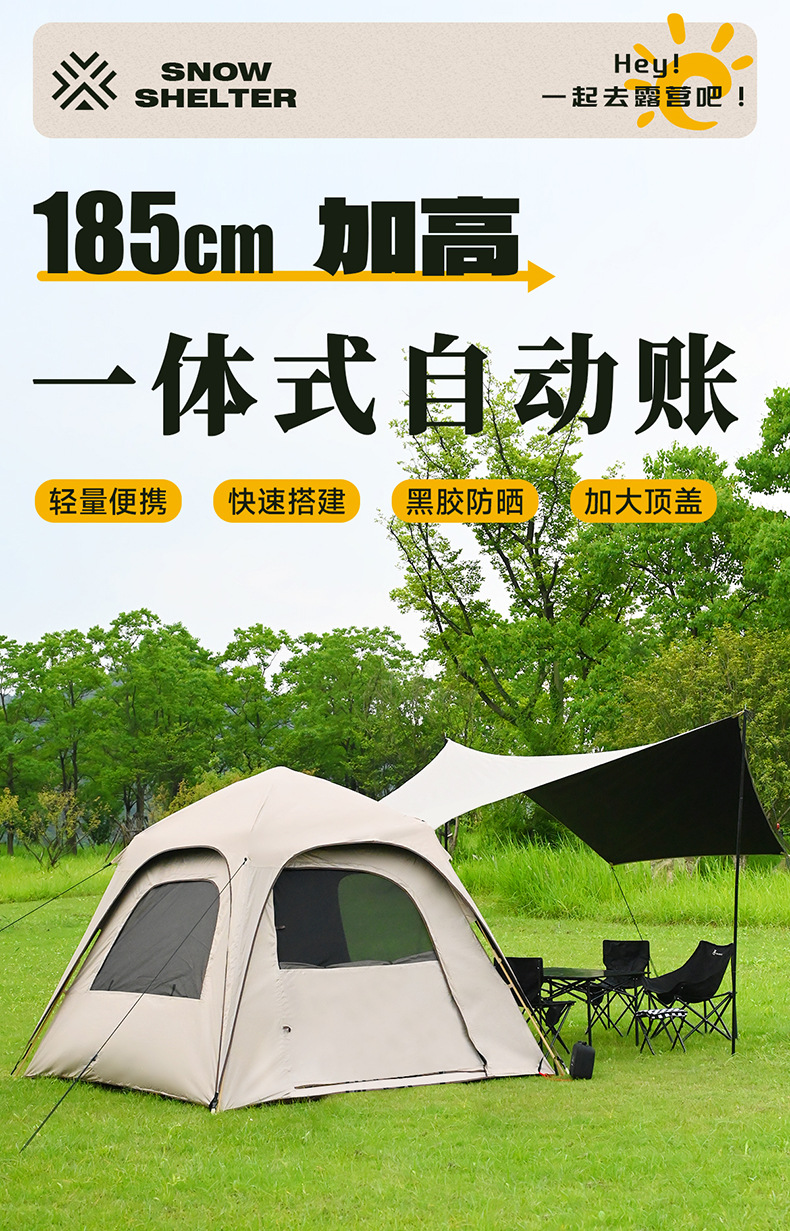 야외 캐노피 텐트, 투인원 캠핑 장비, 강화 및 두꺼워짐, 비닐 자외선 차단, 휴대용 접이식 자동 빠른 개방 텐트