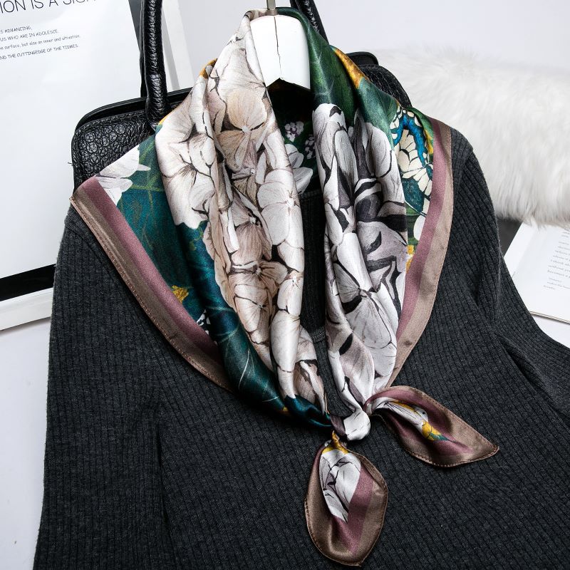 진짜 실크 스카프 작은 광장 스카프 70cm 하이 엔드 선물을주는 뽕나무 실크 스카프 봄과 가을 그림자 소녀 서양과 함께 작은 스카프
