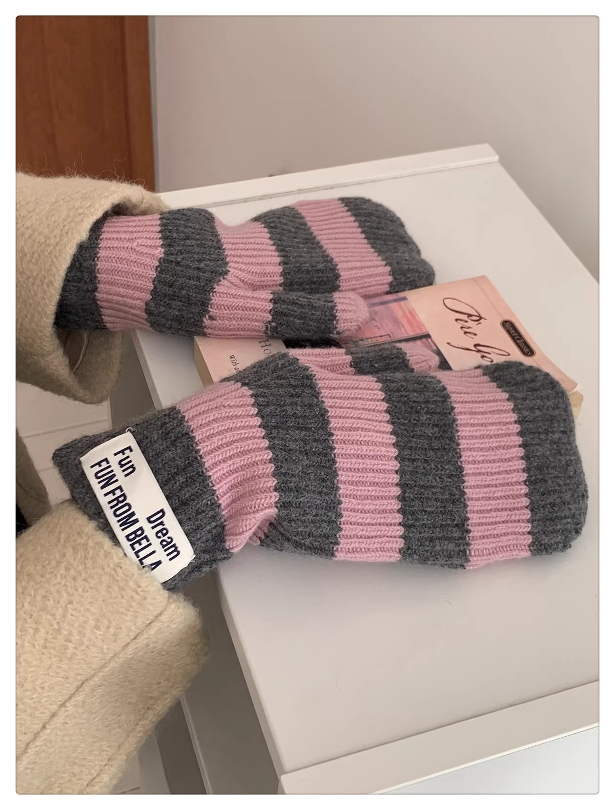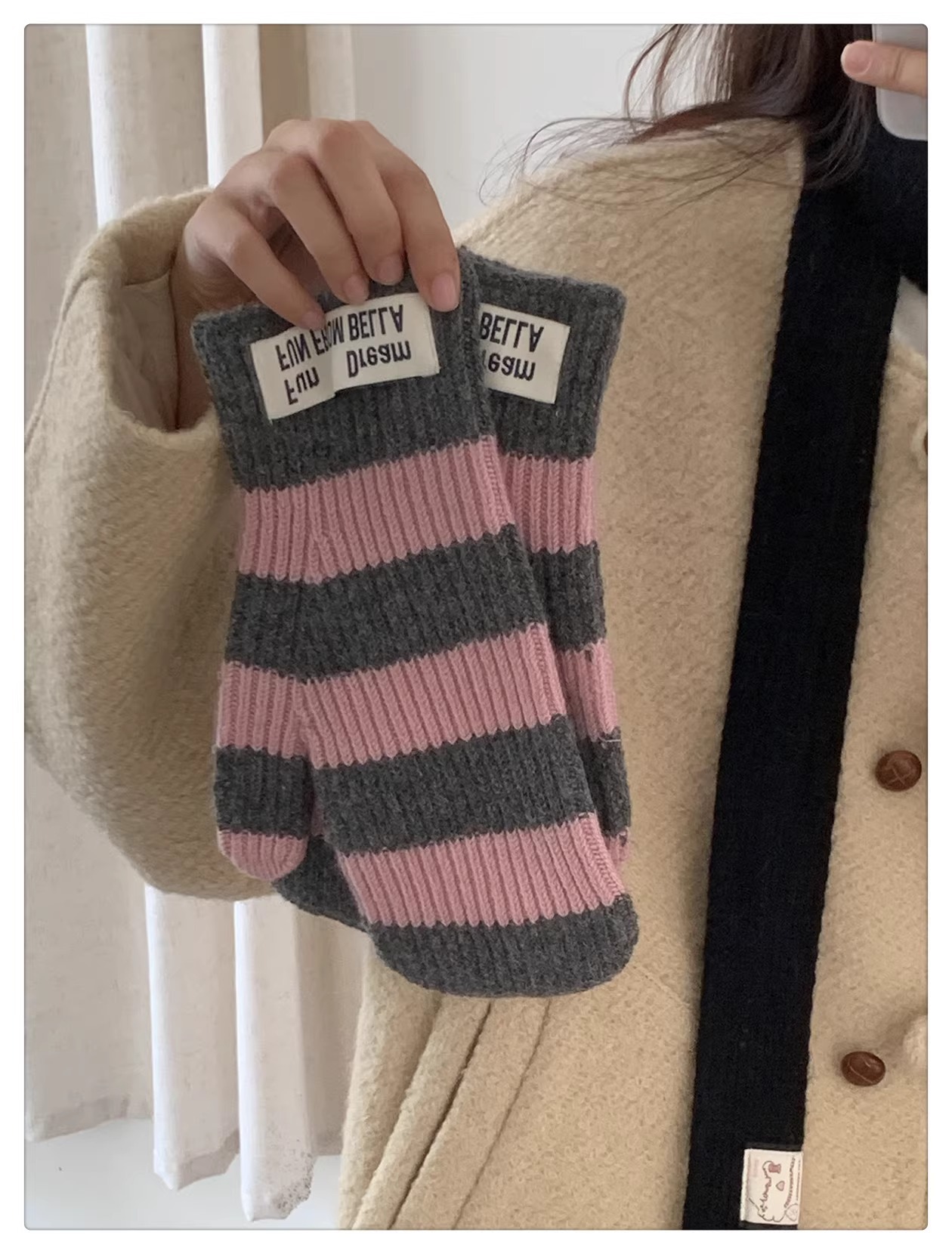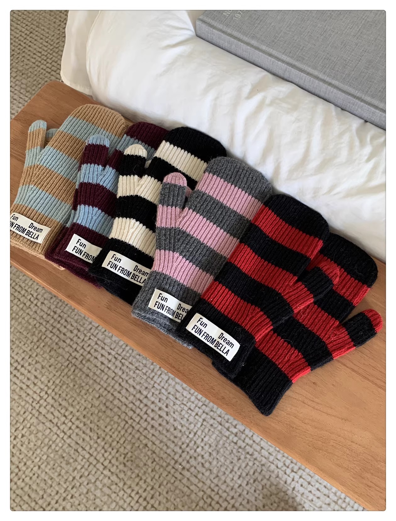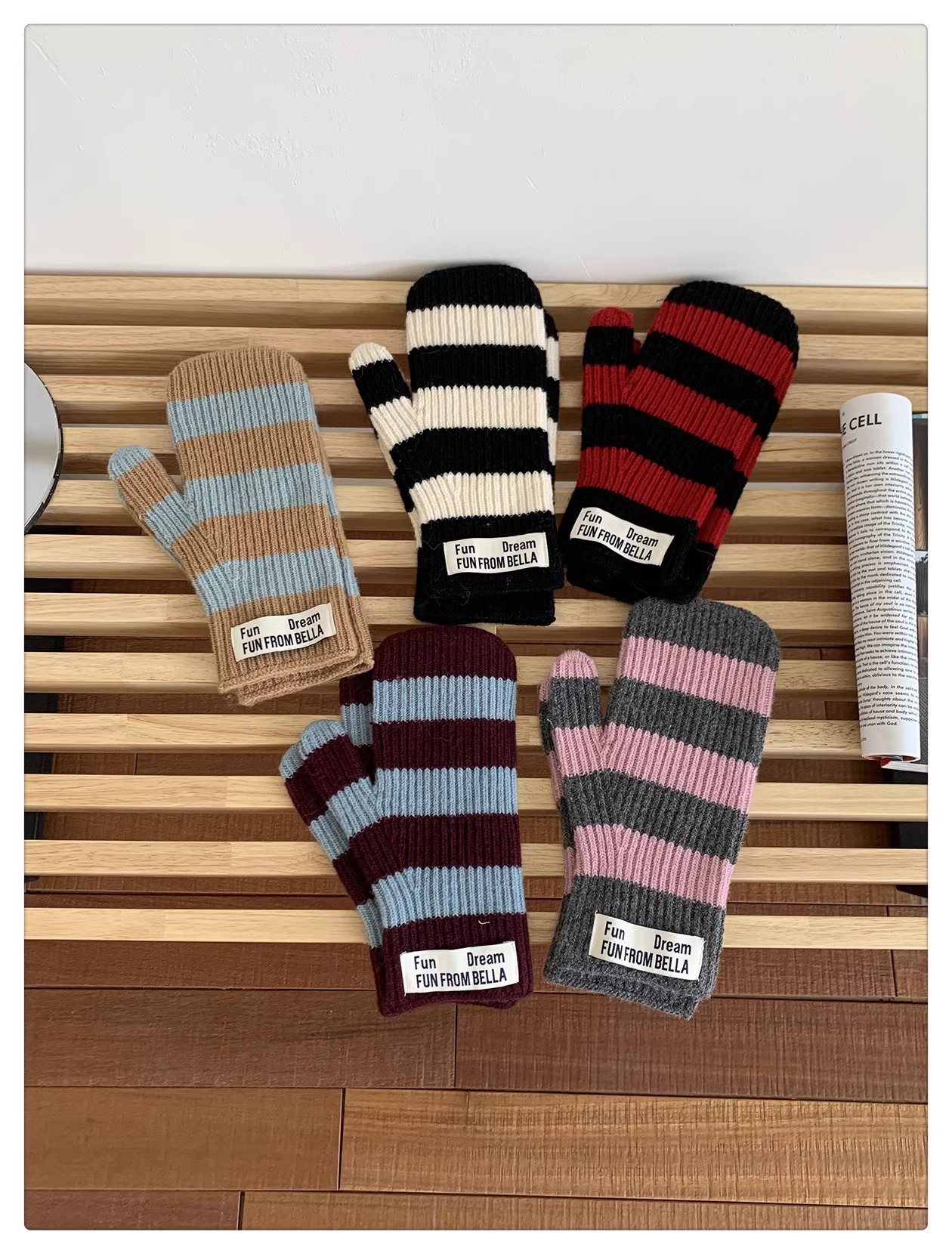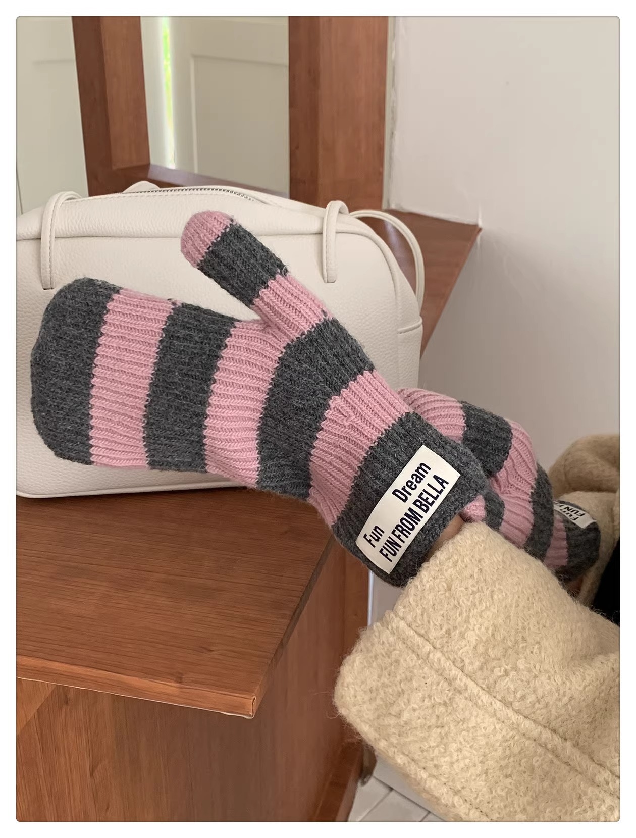 손가락 장갑 가을과 겨울 귀여운 색상 매칭 스트라이프 두꺼운 대학 스타일 사이클링 따뜻한 장갑