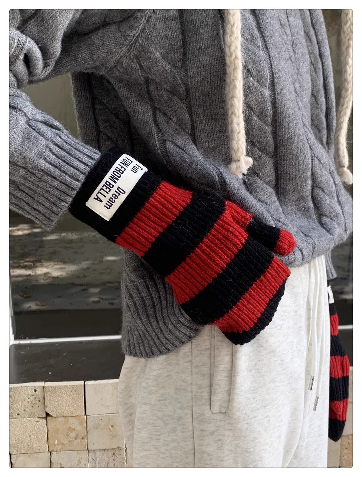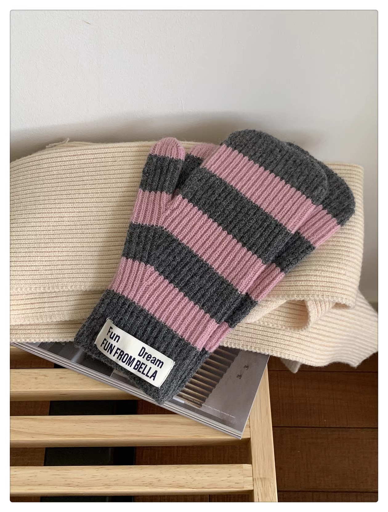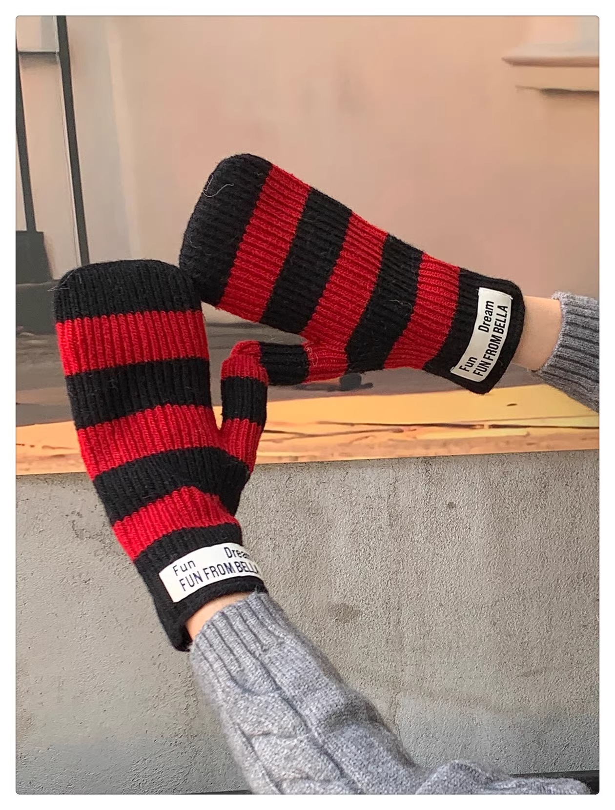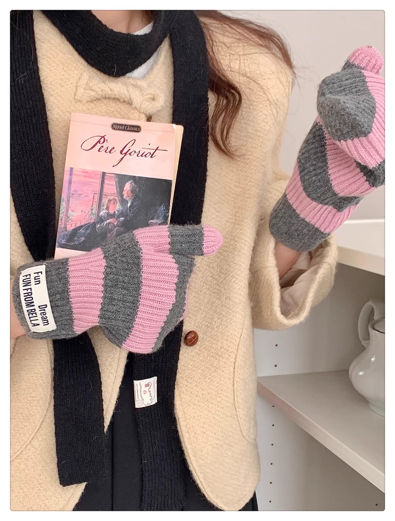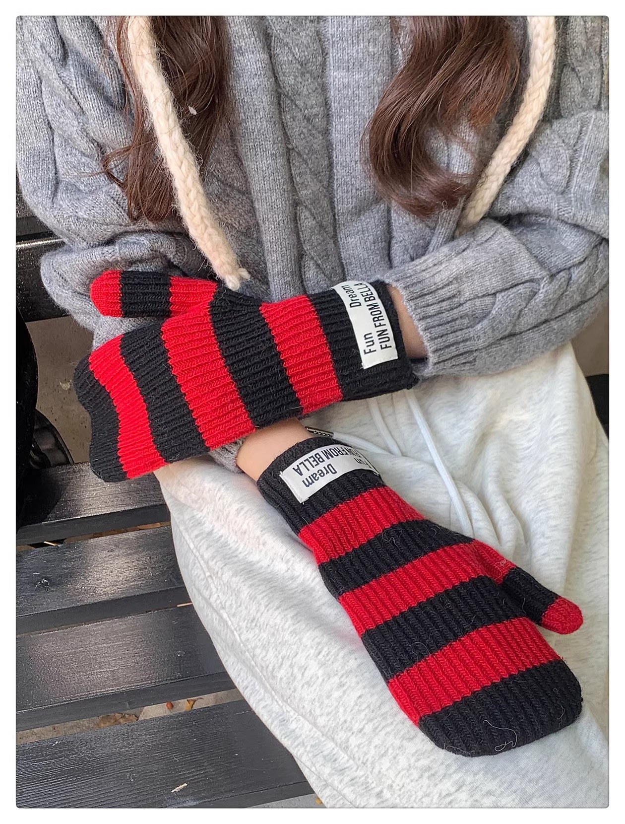 손가락 장갑 가을과 겨울 귀여운 색상 매칭 스트라이프 두꺼운 대학 스타일 사이클링 따뜻한 장갑