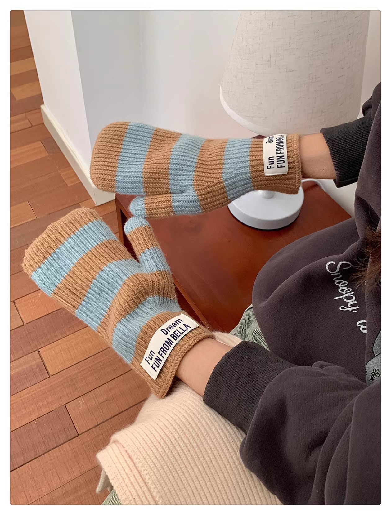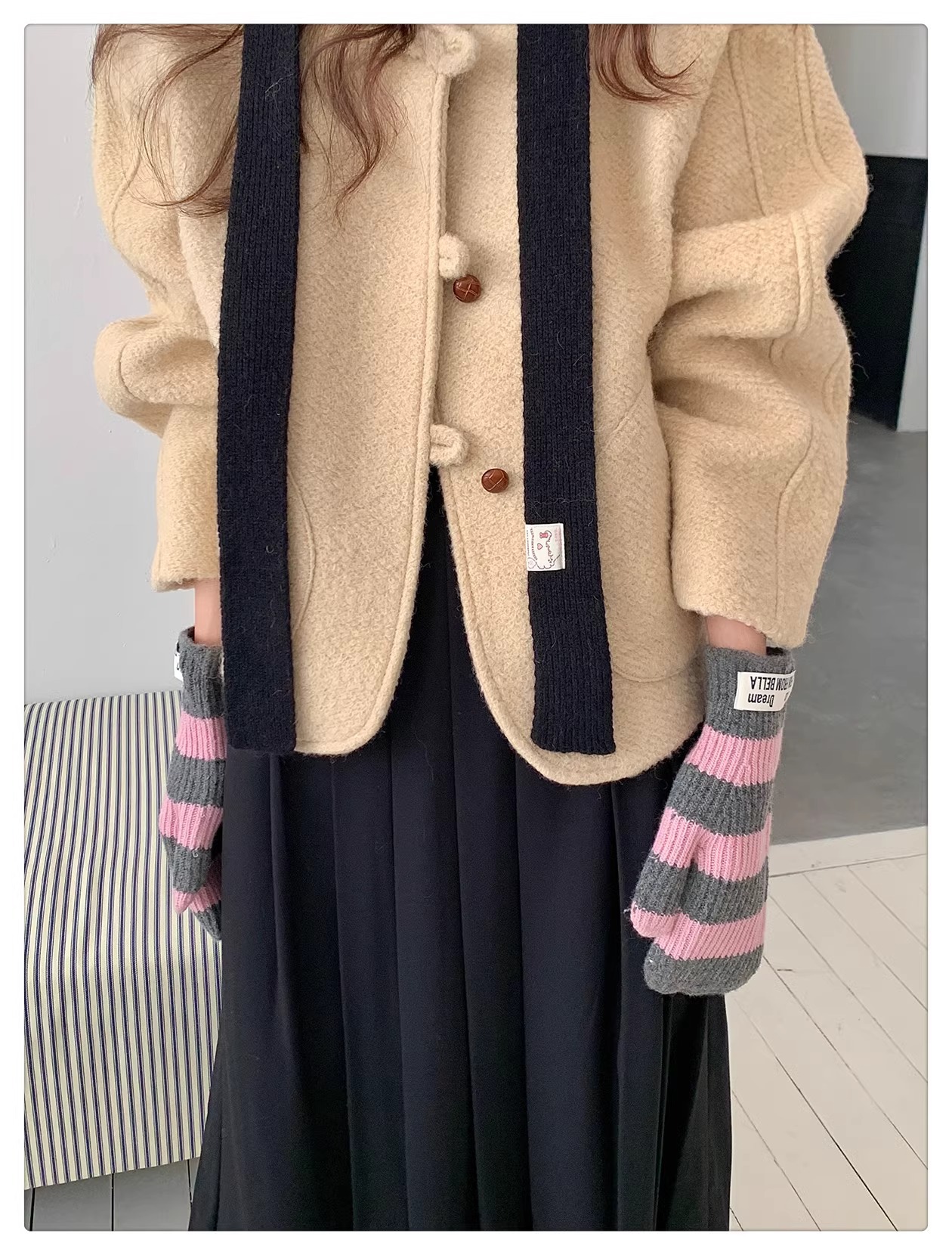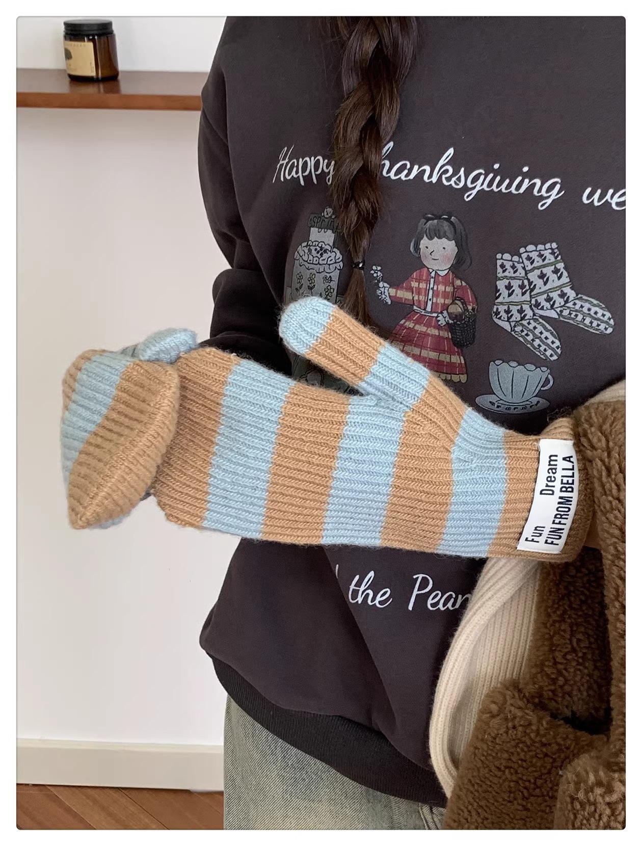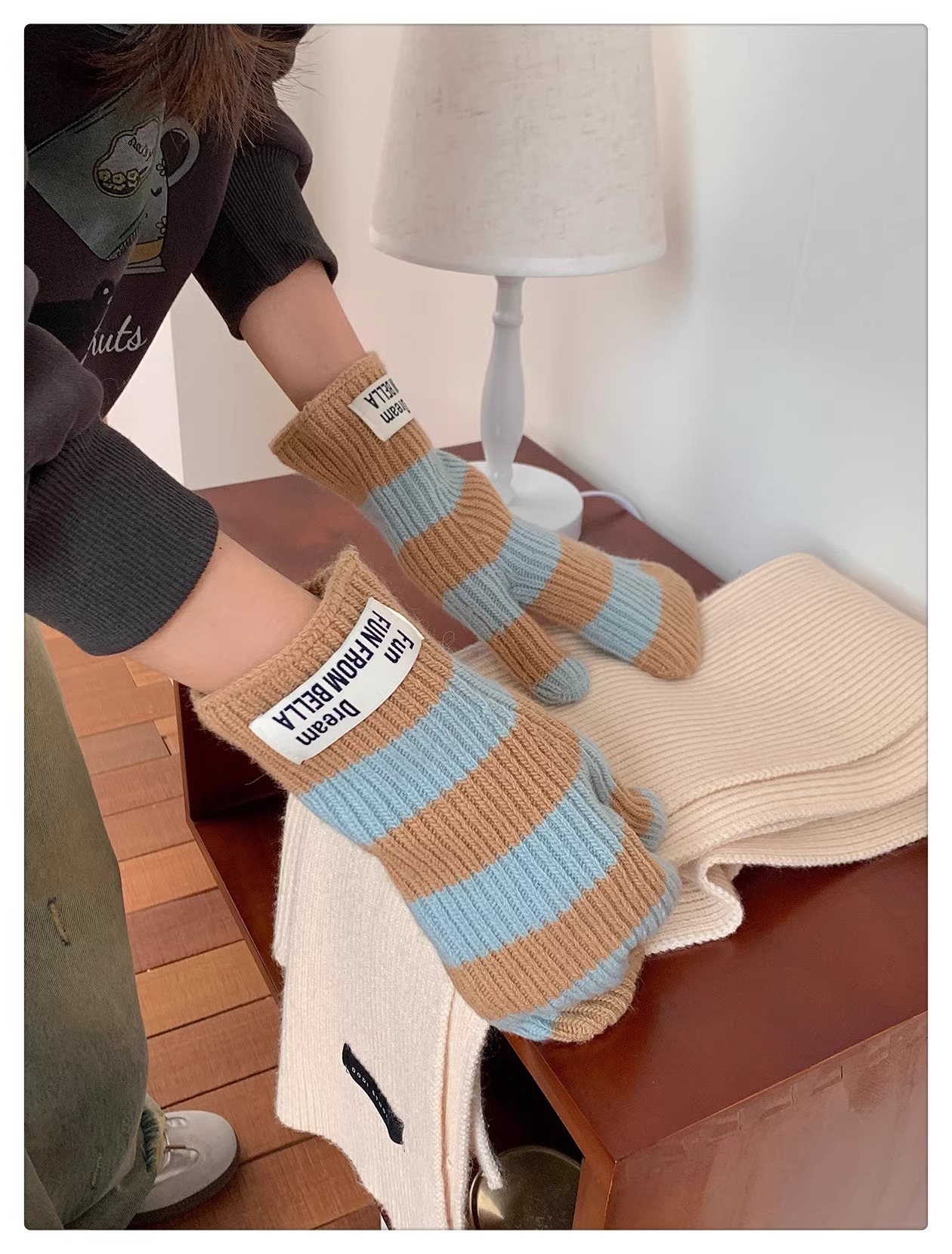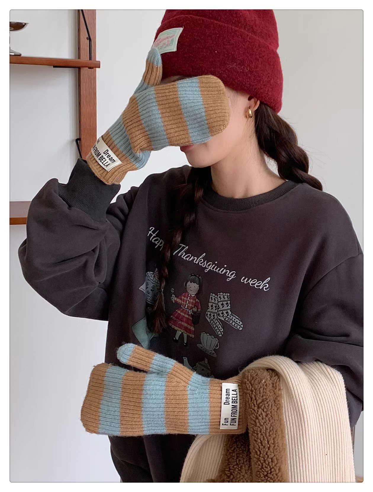 손가락 장갑 가을과 겨울 귀여운 색상 매칭 스트라이프 두꺼운 대학 스타일 사이클링 따뜻한 장갑