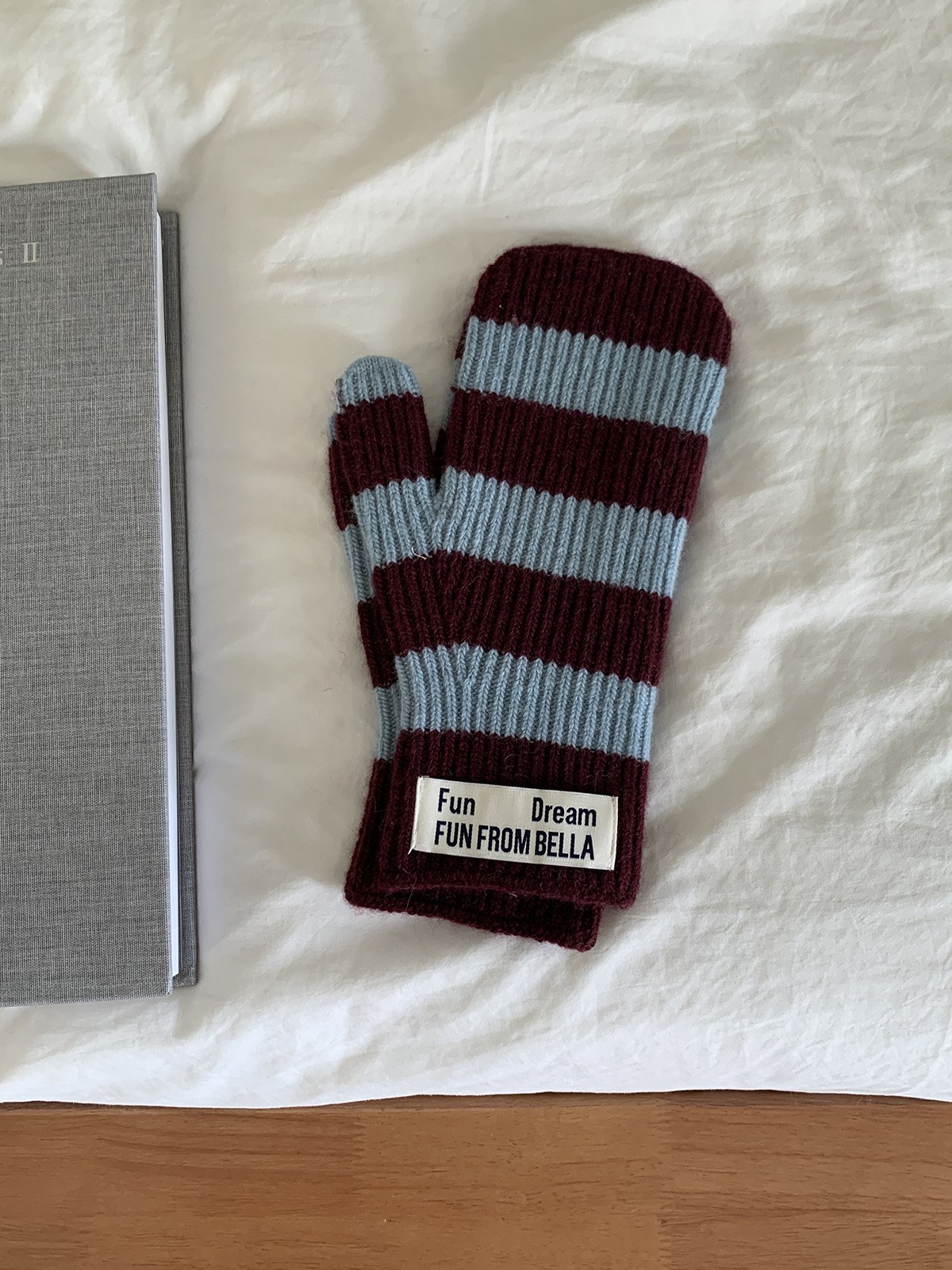 손가락 장갑 가을과 겨울 귀여운 색상 매칭 스트라이프 두꺼운 대학 스타일 사이클링 따뜻한 장갑스토어 가기