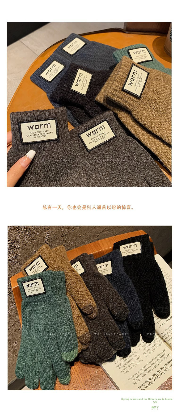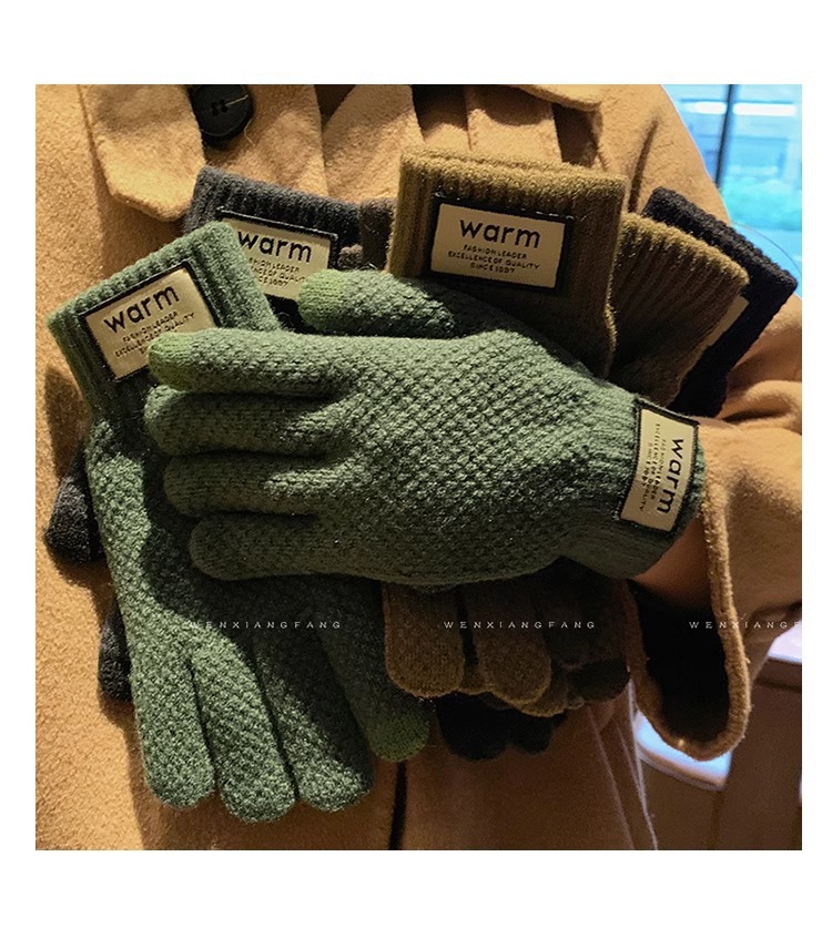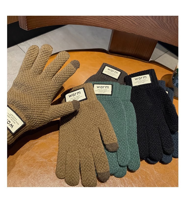 니트 울 장갑 남녀 가을 겨울 두꺼운 따뜻한 사이클링 미끄럼 다섯 손가락 기모 손가락 터치 스크린 장갑의 한국어 버전스토어 가기