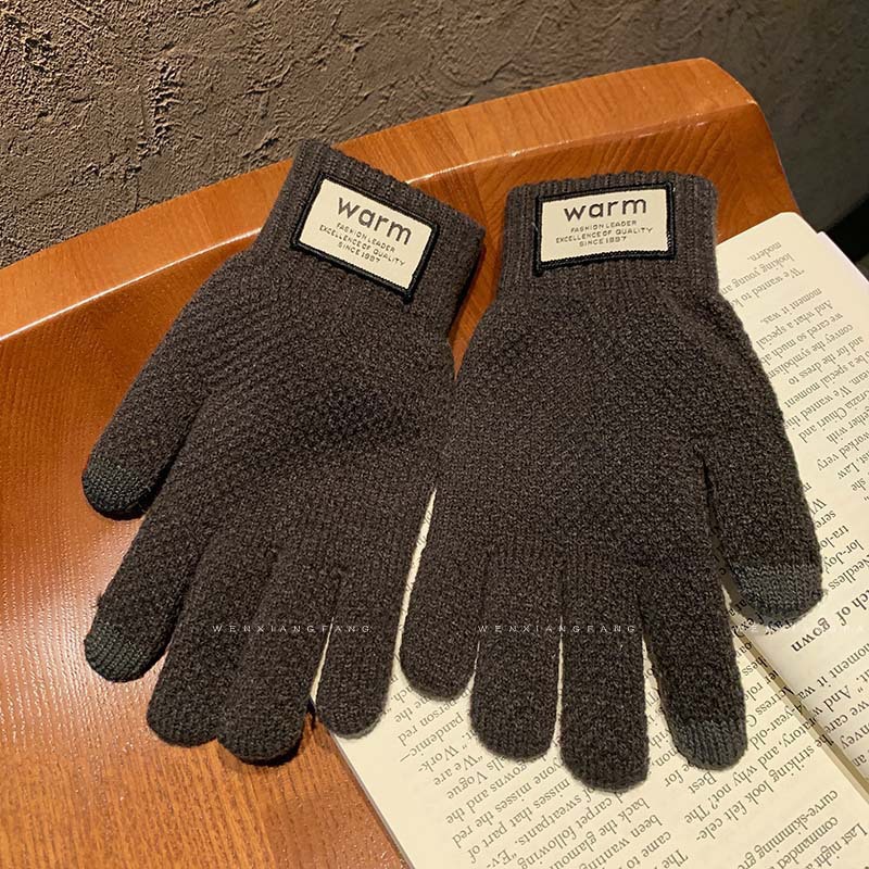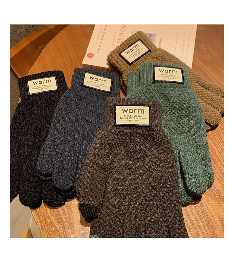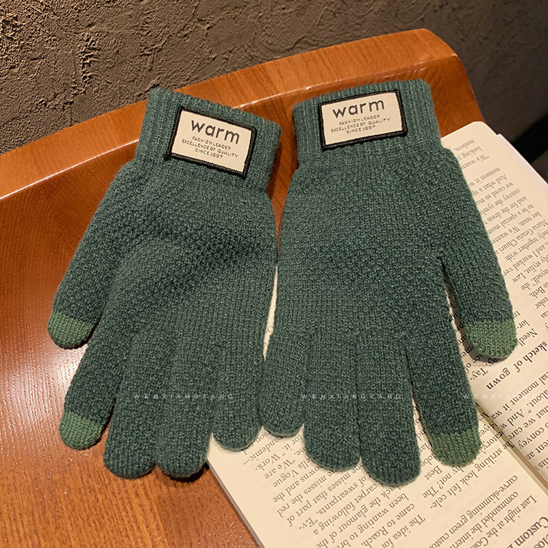 니트 울 장갑 남녀 가을 겨울 두꺼운 따뜻한 사이클링 미끄럼 다섯 손가락 기모 손가락 터치 스크린 장갑의 한국어 버전