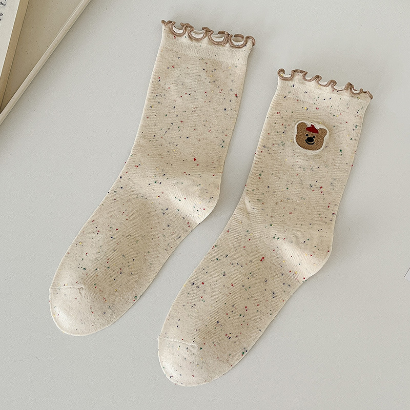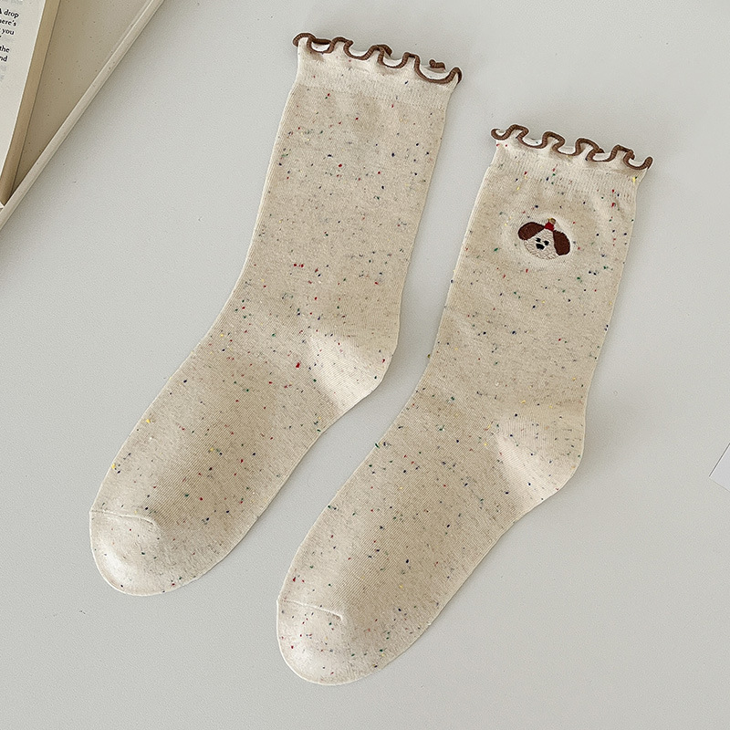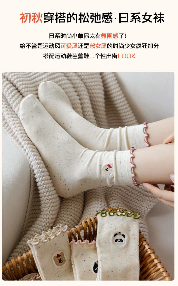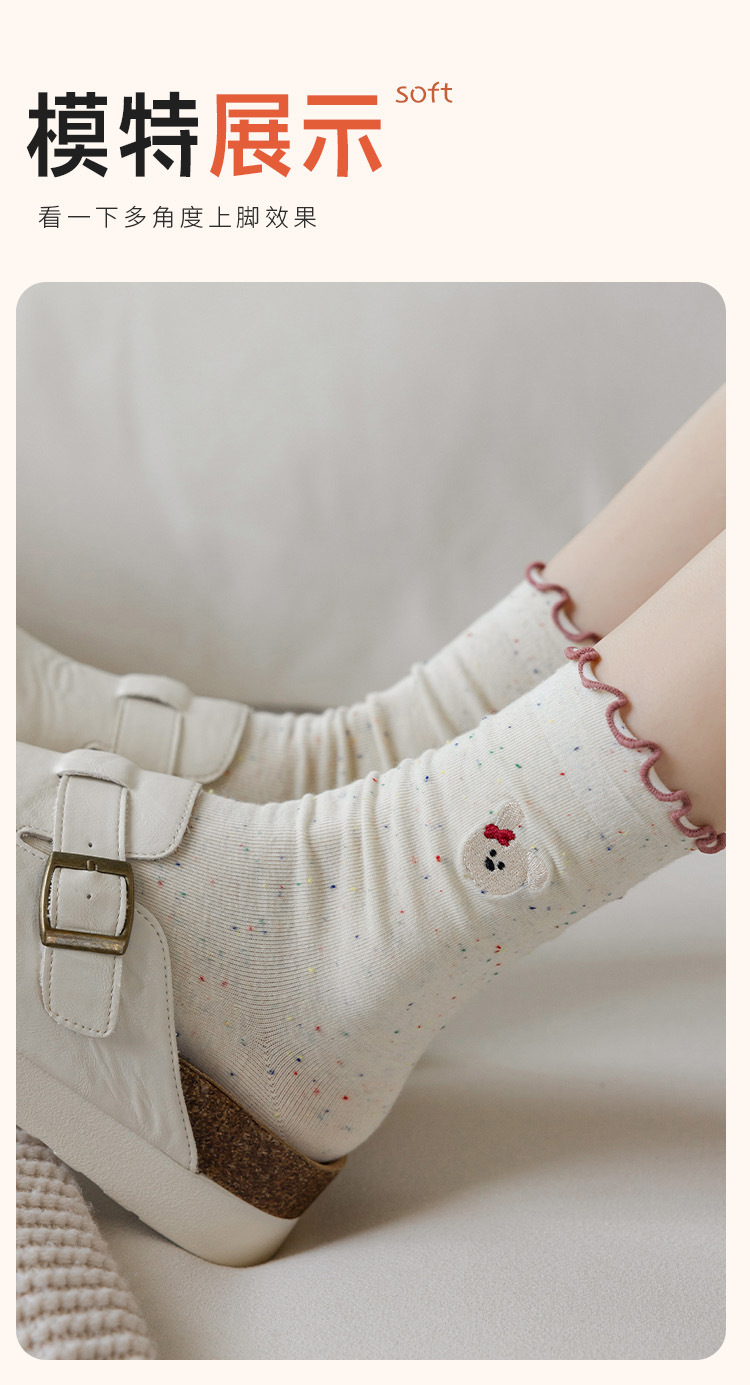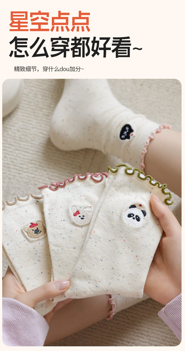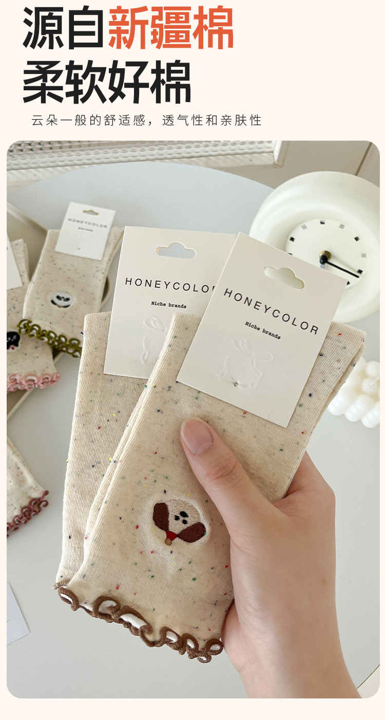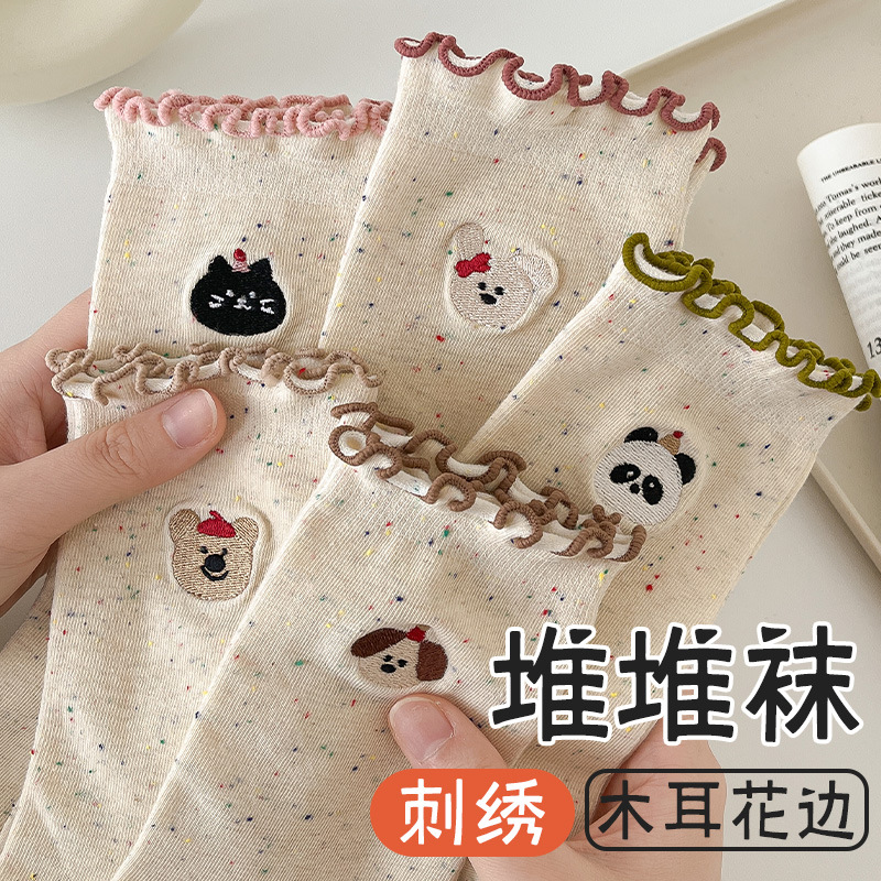 양말 여성 포인트 원사 귀 가장자리 자수 동물 중간 튜브 양말 신종 한국 귀여운 만화 더미 양말 도매스토어 가기