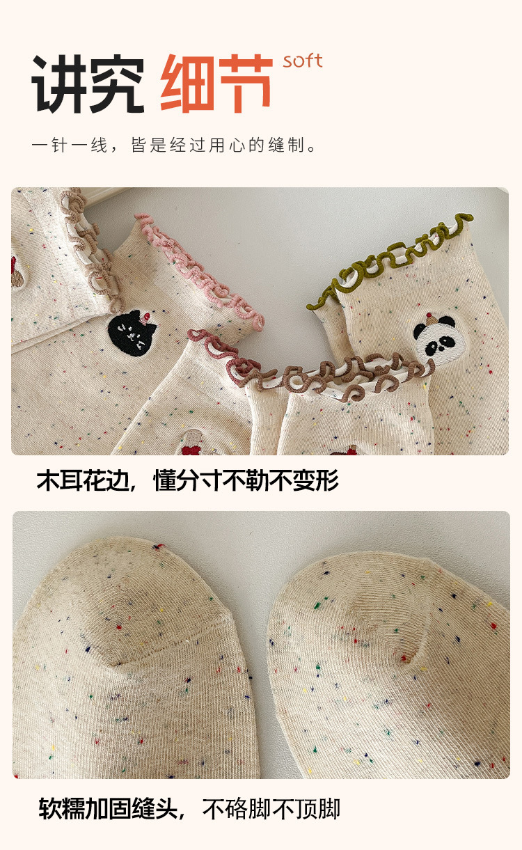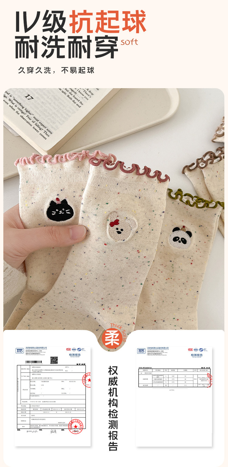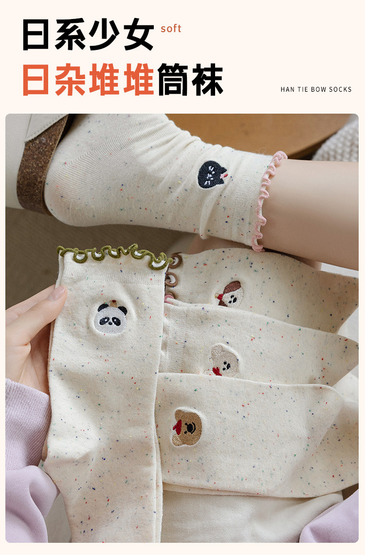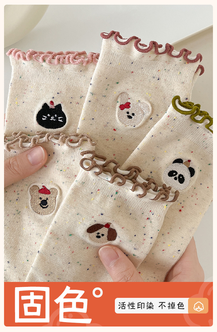 양말 여성 포인트 원사 귀 가장자리 자수 동물 중간 튜브 양말 신종 한국 귀여운 만화 더미 양말 도매