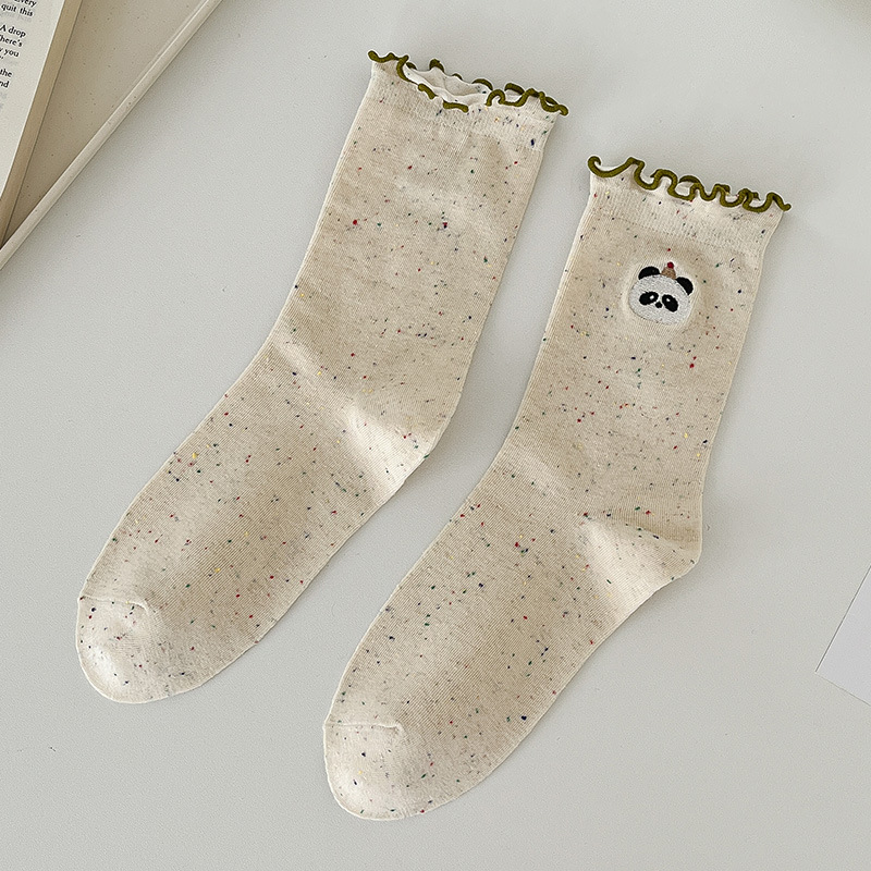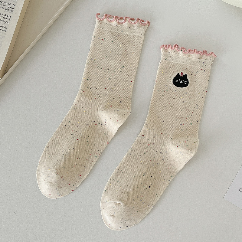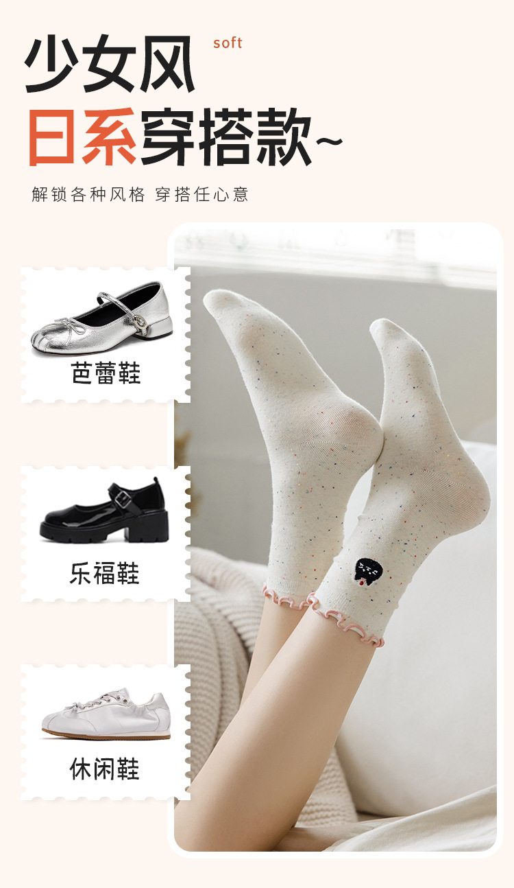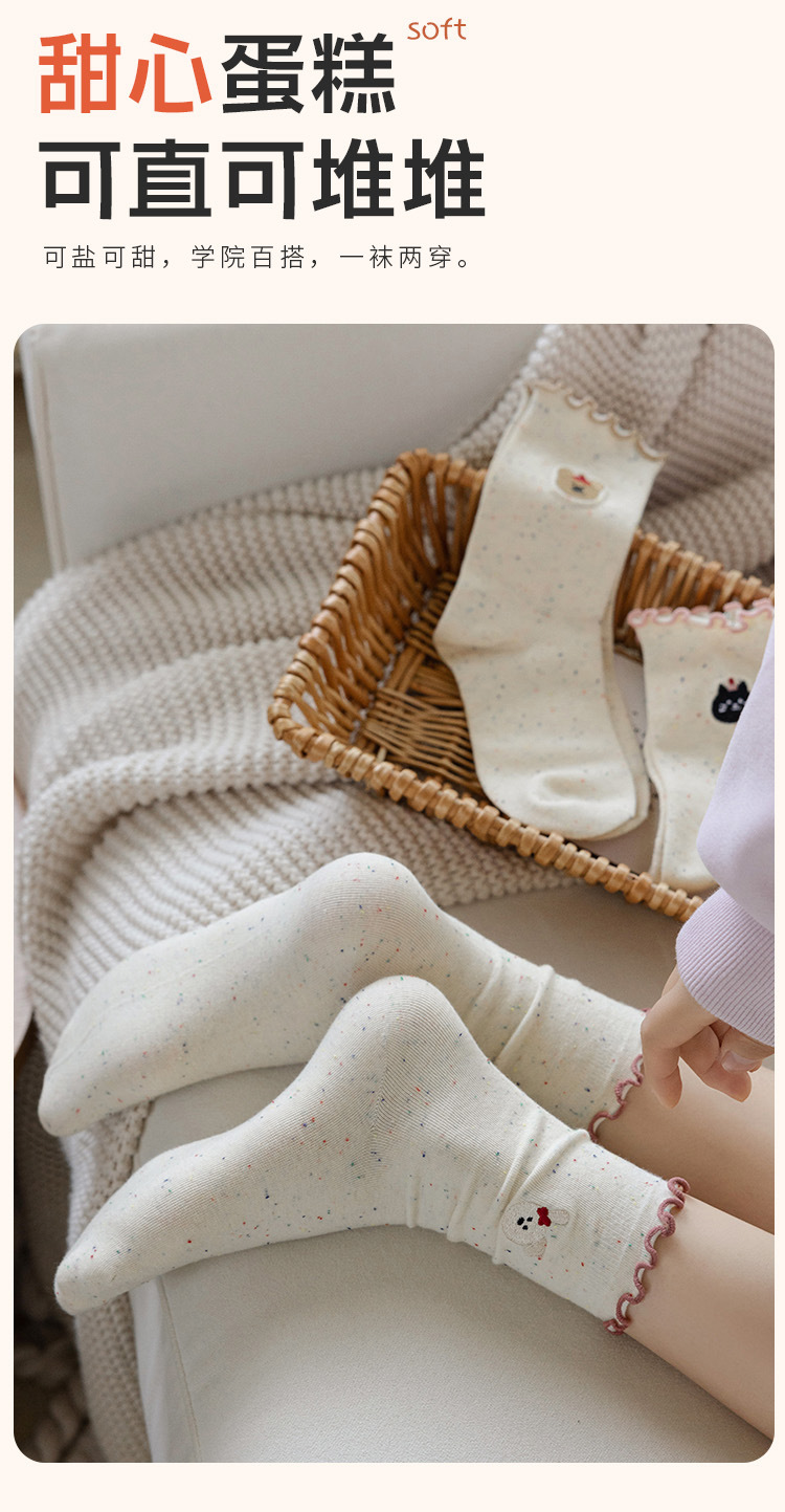 양말 여성 포인트 원사 귀 가장자리 자수 동물 중간 튜브 양말 신종 한국 귀여운 만화 더미 양말 도매