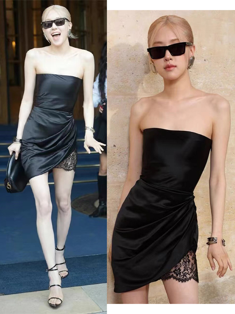 박채영 동일 스타일 옷 고급 핫걸 섹시 스트랩리스 원피스 여성 여름 Acetic Acid 스티칭 레이스 힙합 스커트