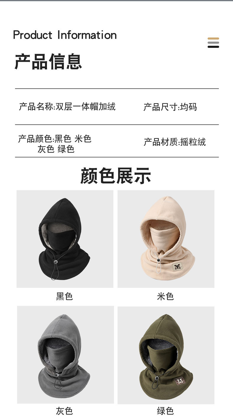 가을과 겨울 따뜻한 통합 모자 남성과 여성을위한 야외 기모 두꺼운 방풍 및 방청 승마 마스크 귀 및 목 보호 통합 모자스토어 가기