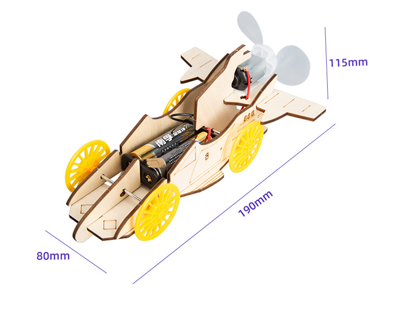 초등학생 창조적 인 DIY 과학 기술 실험 장난감 작은 생산 바람 자동차 나무 공기 역학적 자동차