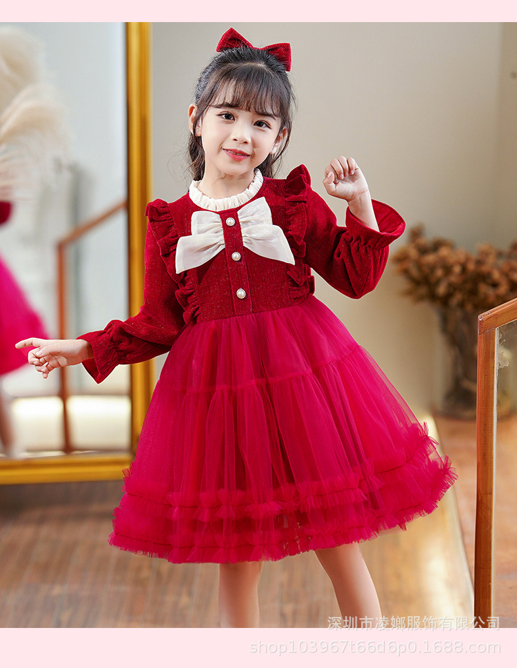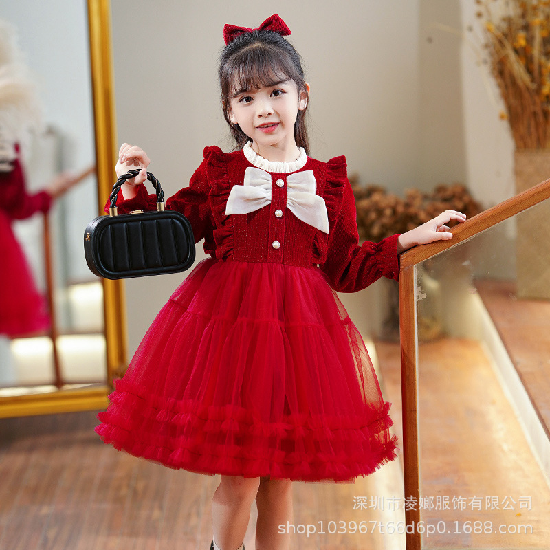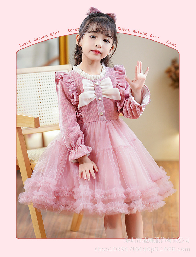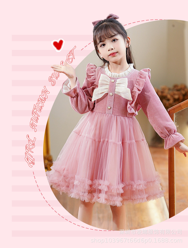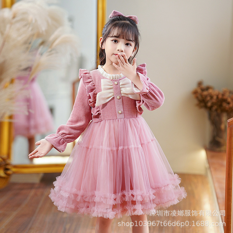 여아 봄 가을 원피스 거즈 스커트 신상 아동 한국 스타일 중대형 어린이 공주 드레스 생일 패션 퍼프 스커트 소녀용스토어 가기