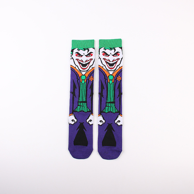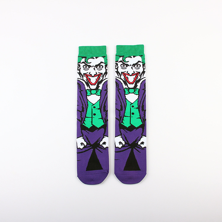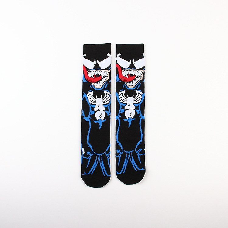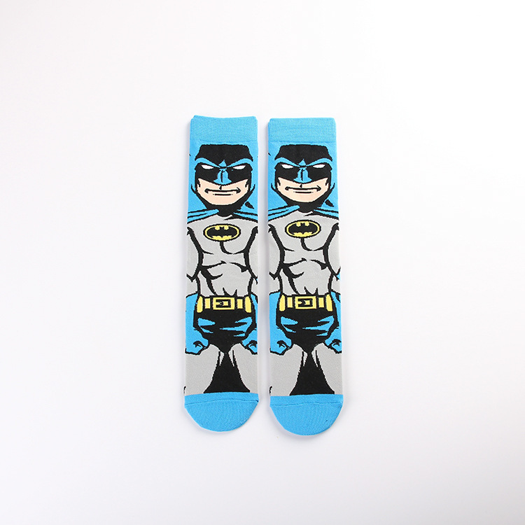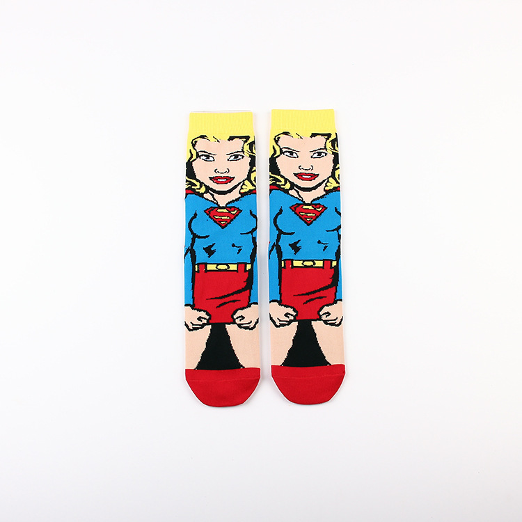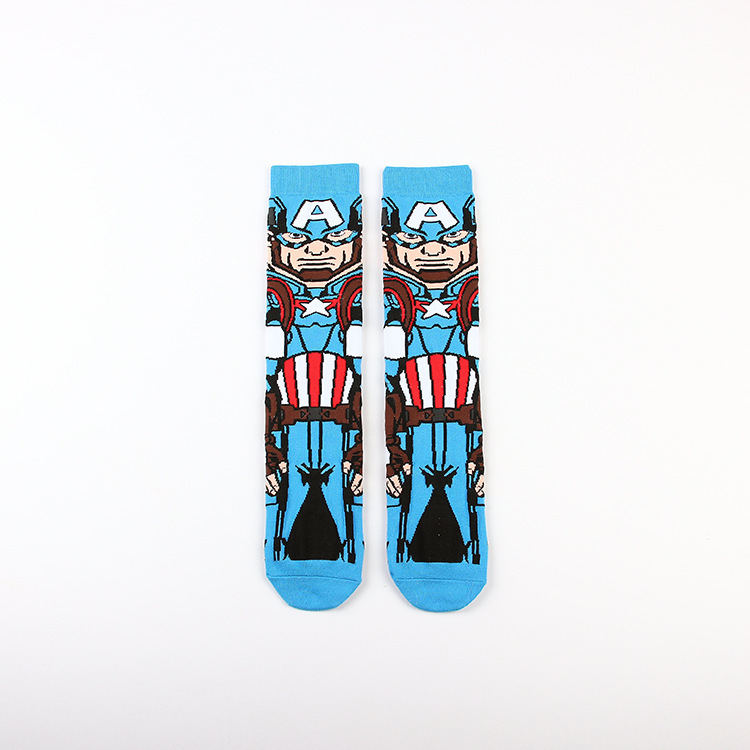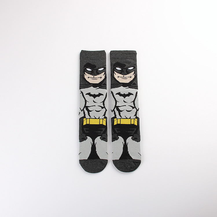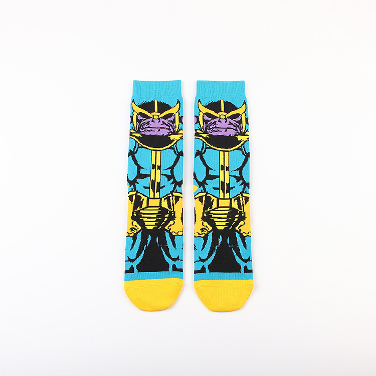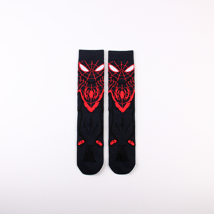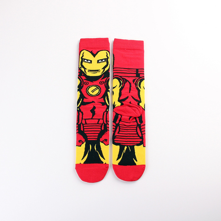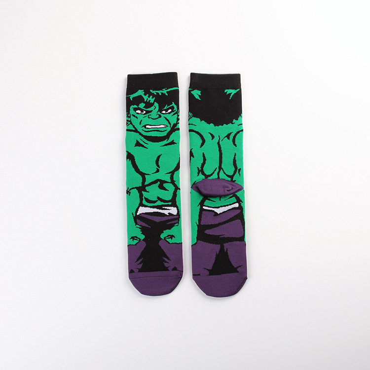Yimei Marvel 애니메이션 헐크 슈퍼맨 미국 팀 스파이더 맨 광대 캐주얼 커플 중반 송아지 양말 남성과 여성 유행 양말 긴