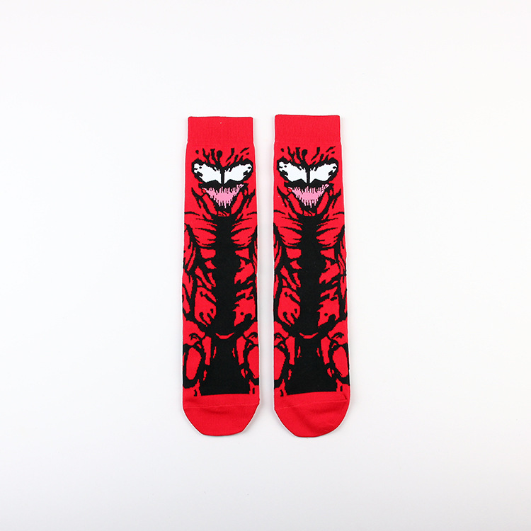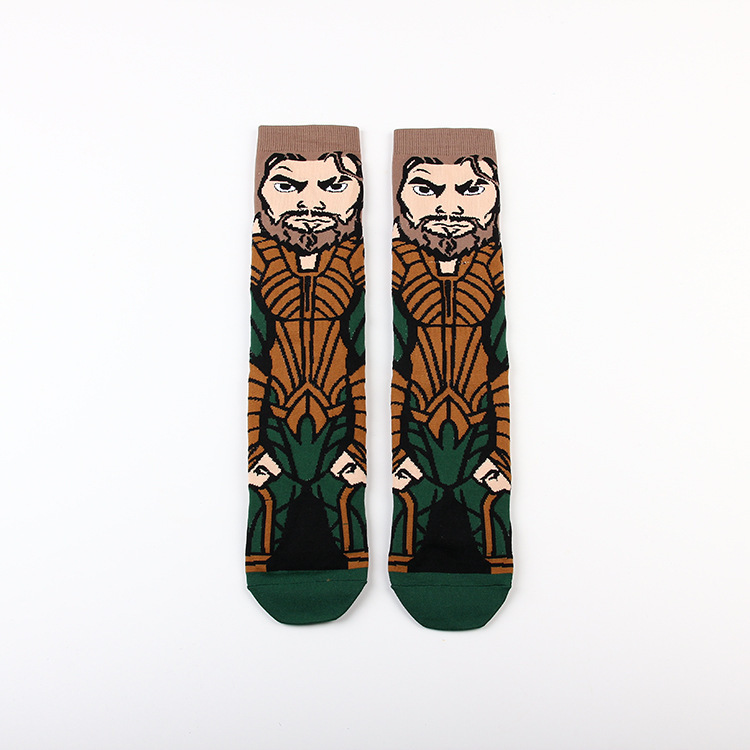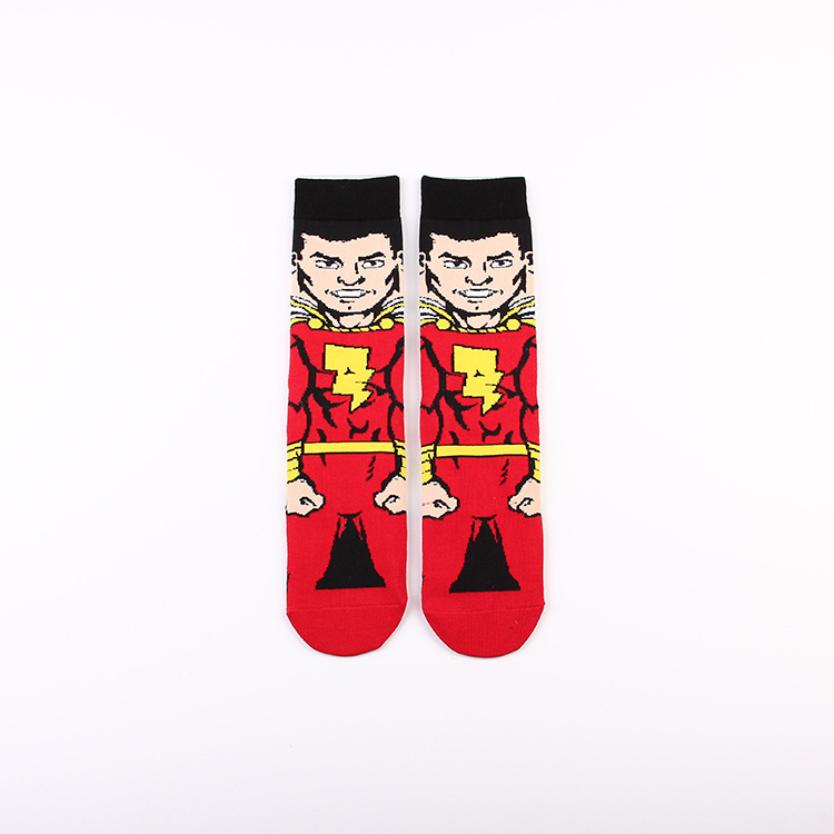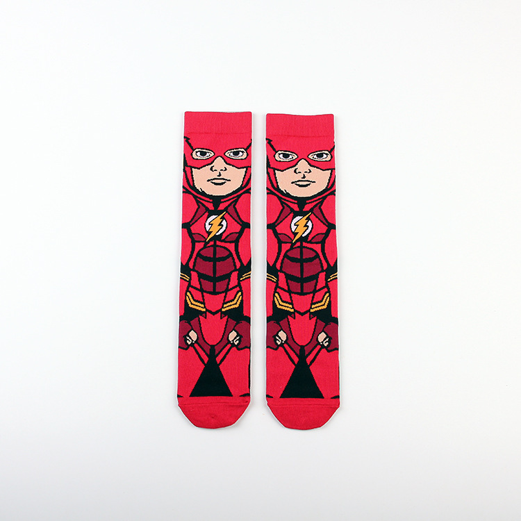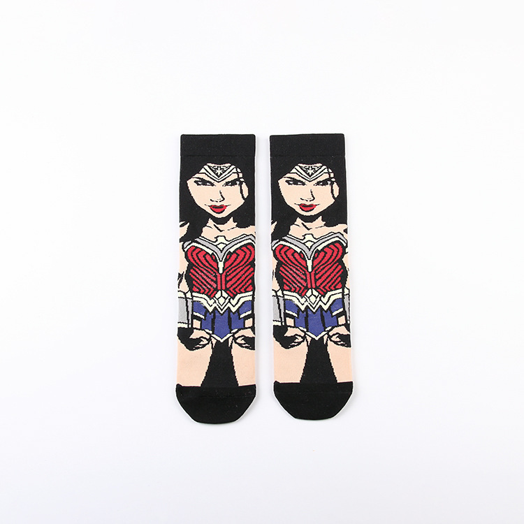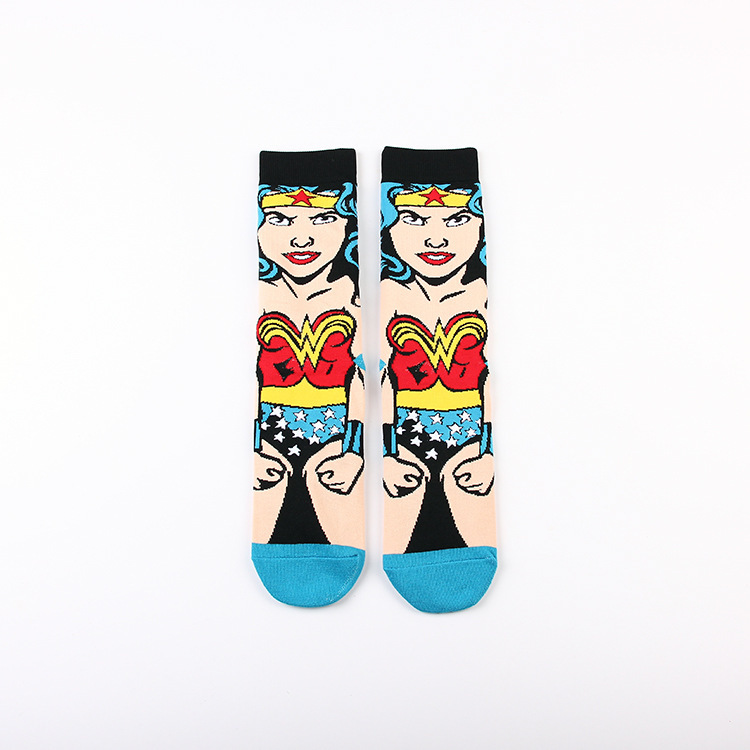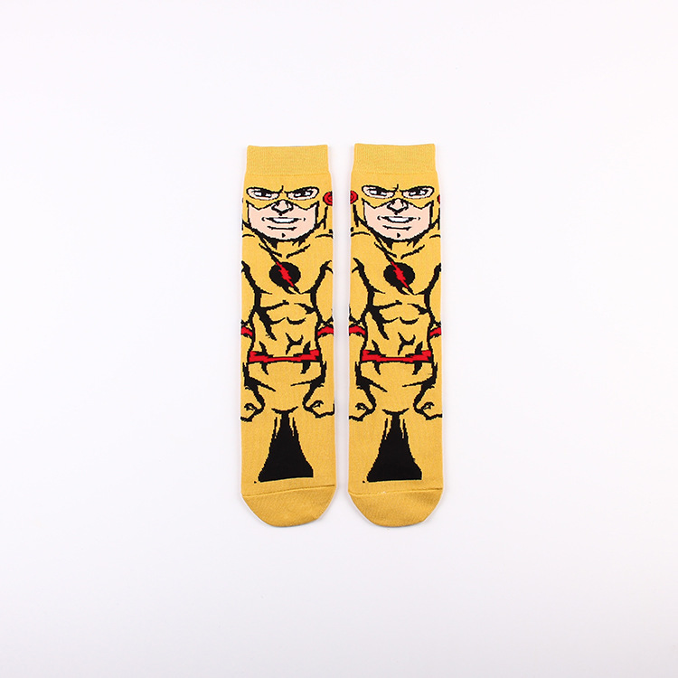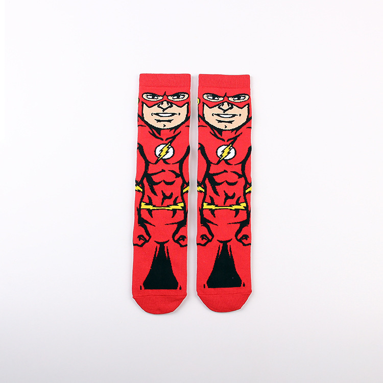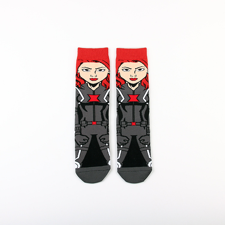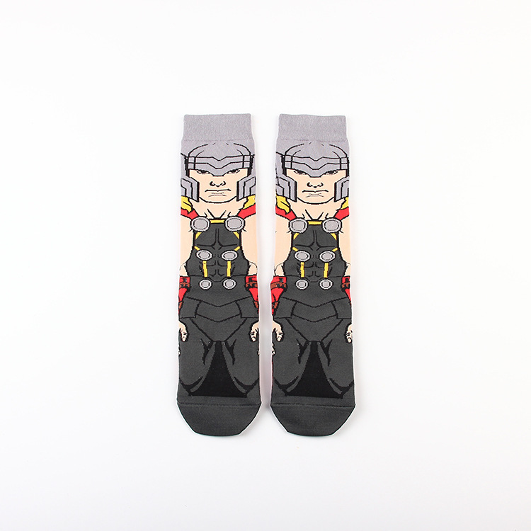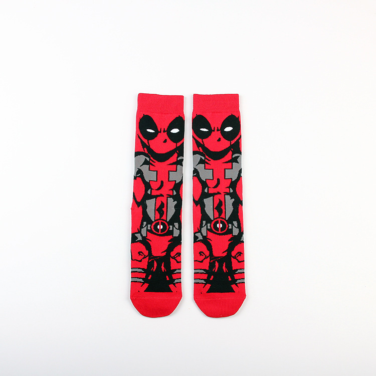 Yimei Marvel 애니메이션 헐크 슈퍼맨 미국 팀 스파이더 맨 광대 캐주얼 커플 중반 송아지 양말 남성과 여성 유행 양말 긴