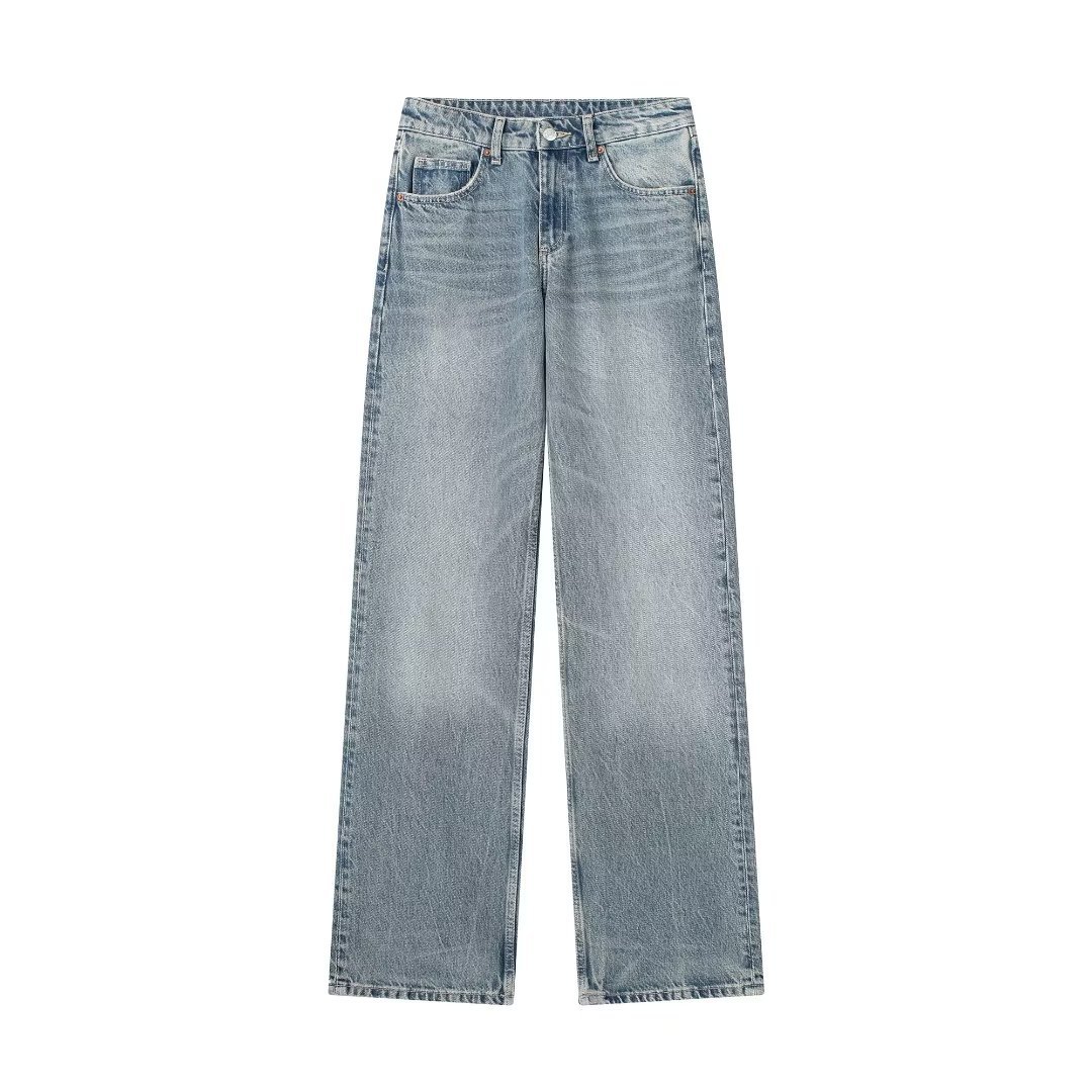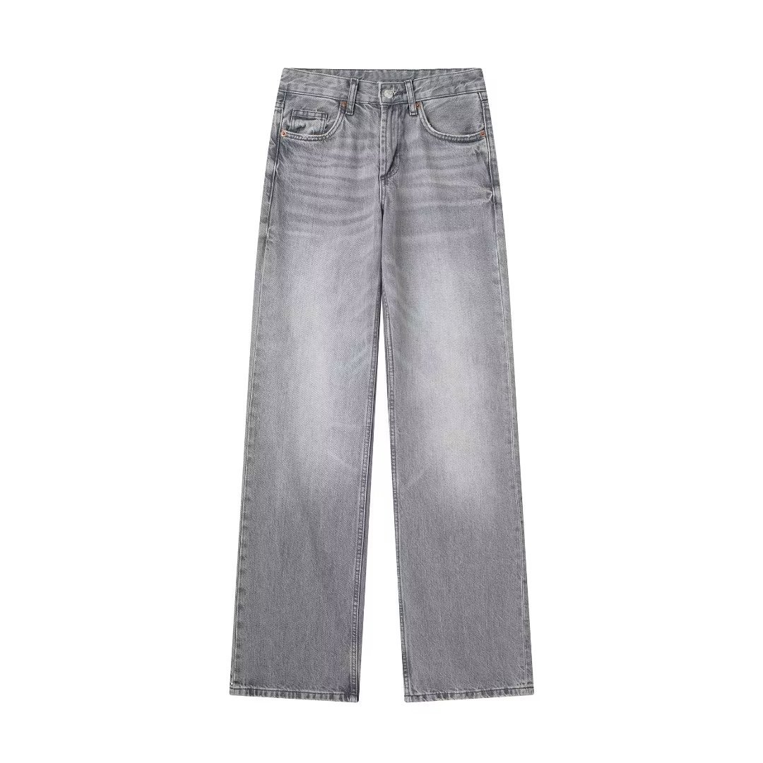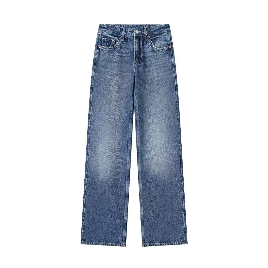 대외 무역 목록! 가을 새로운 유럽과 미국의 국경 여성 캐주얼 넓은 다리 중간 허리 긴 청바지 6045129스토어 가기