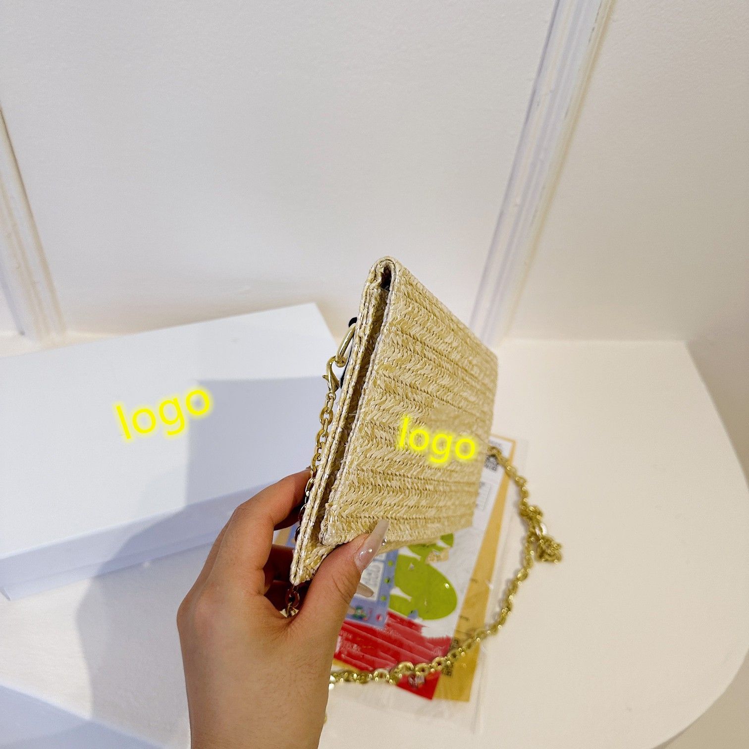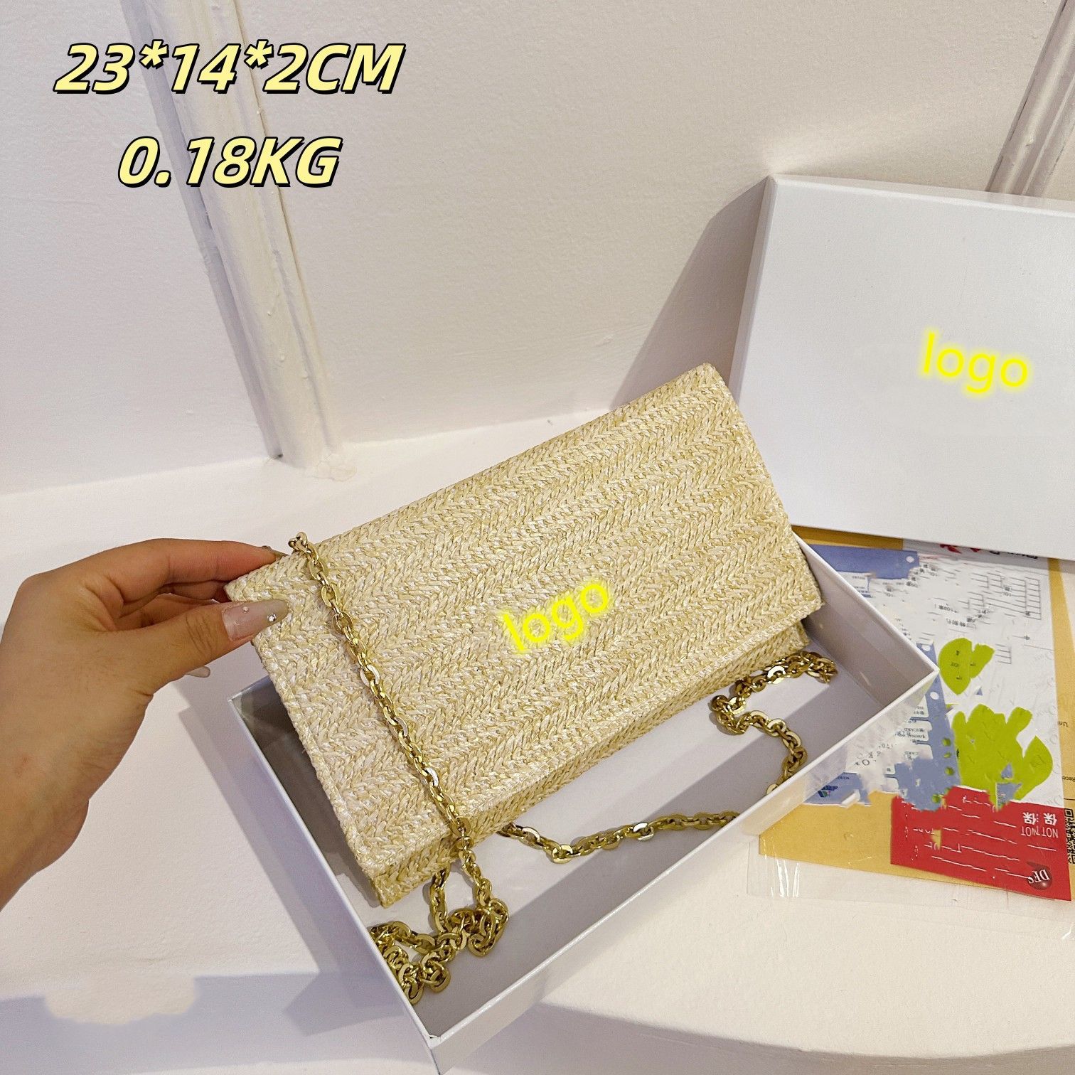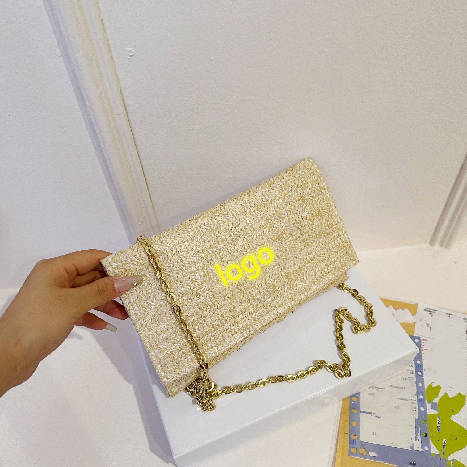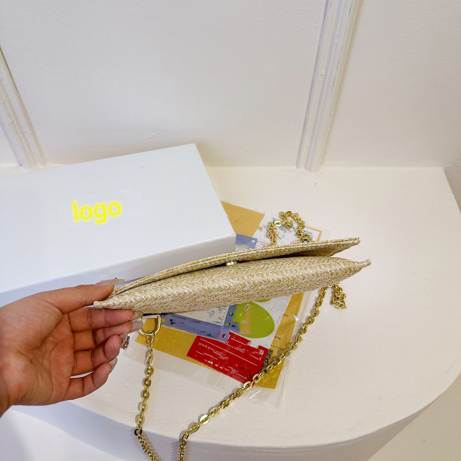 2024 새로운 패션 브랜드 선물 상자 포장 여성 뷰티 메이크업 선물 짠 밀짚 짠 가방 체인 어깨 크로스 바디 클러치 백