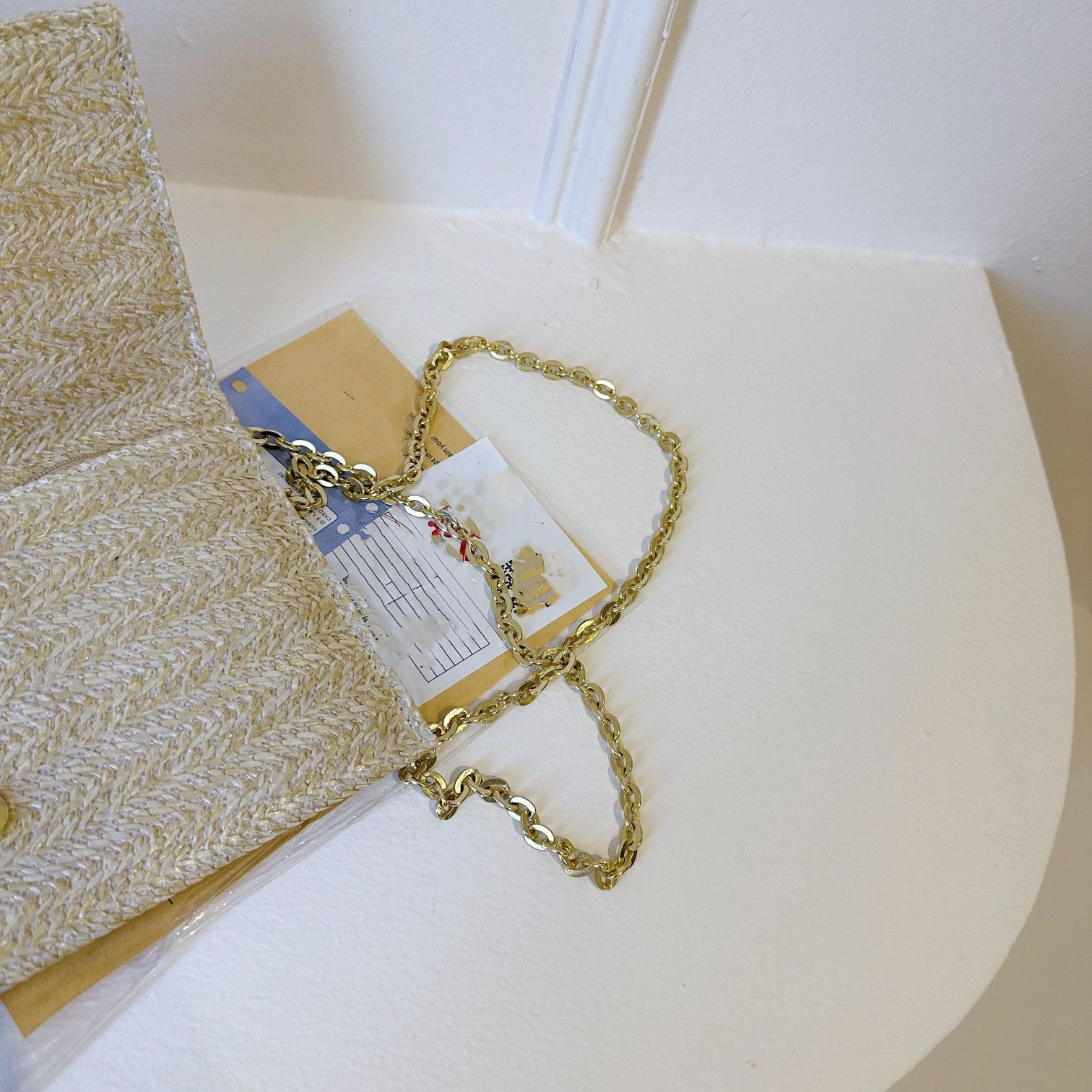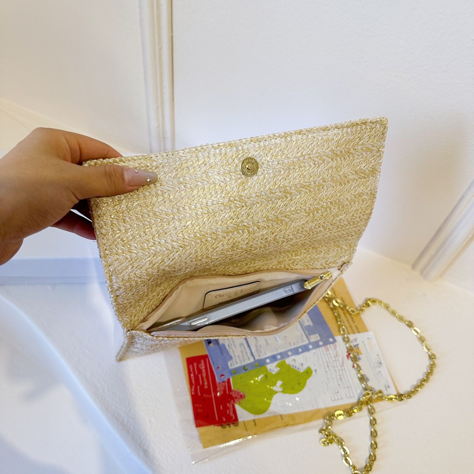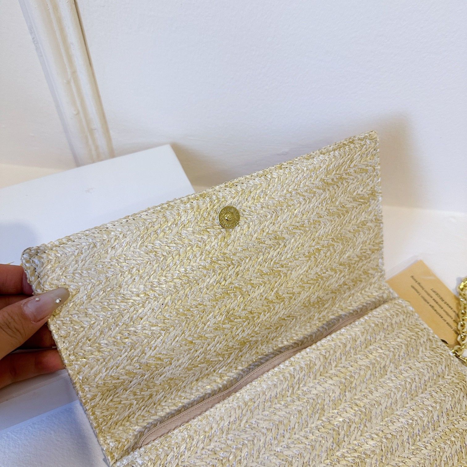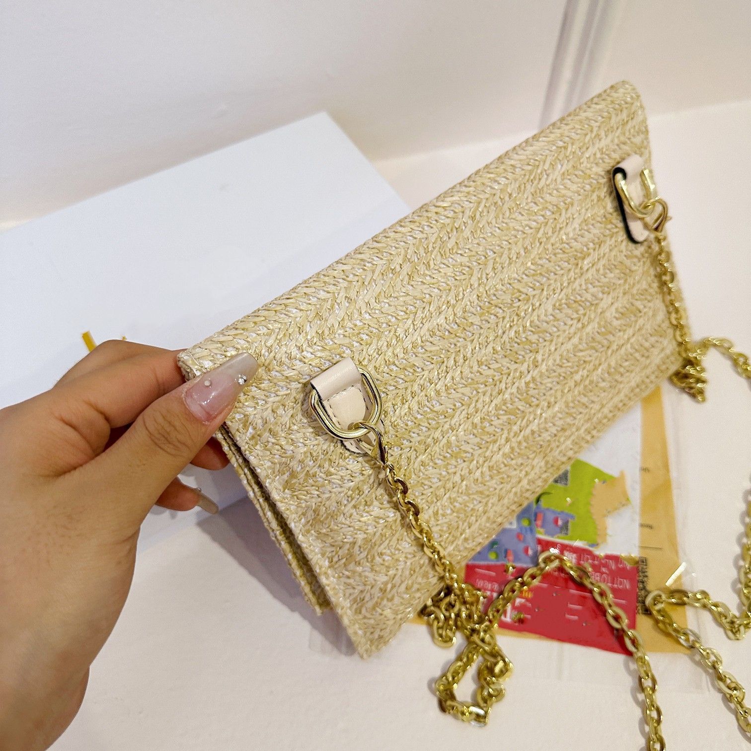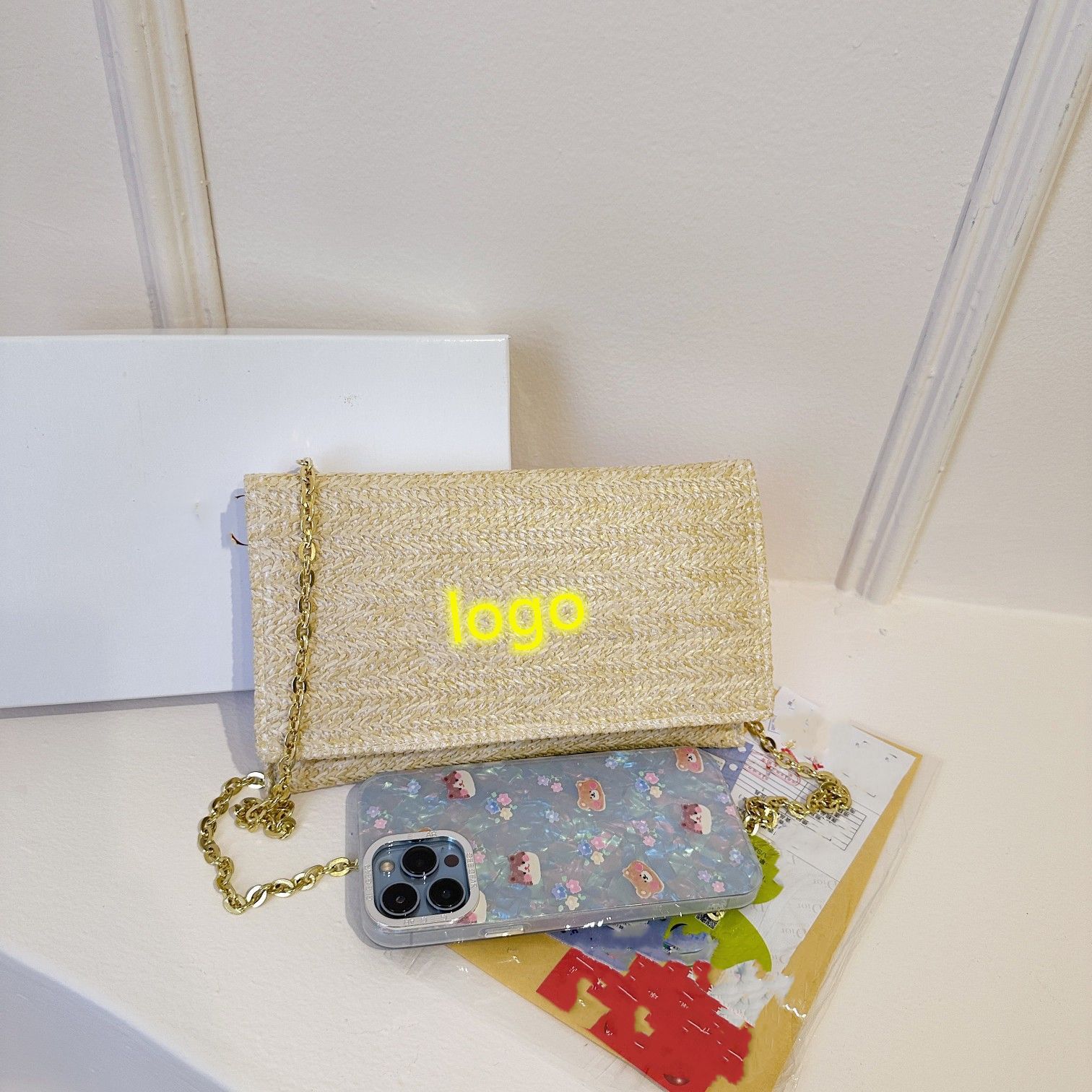 2024 새로운 패션 브랜드 선물 상자 포장 여성 뷰티 메이크업 선물 짠 밀짚 짠 가방 체인 어깨 크로스 바디 클러치 백