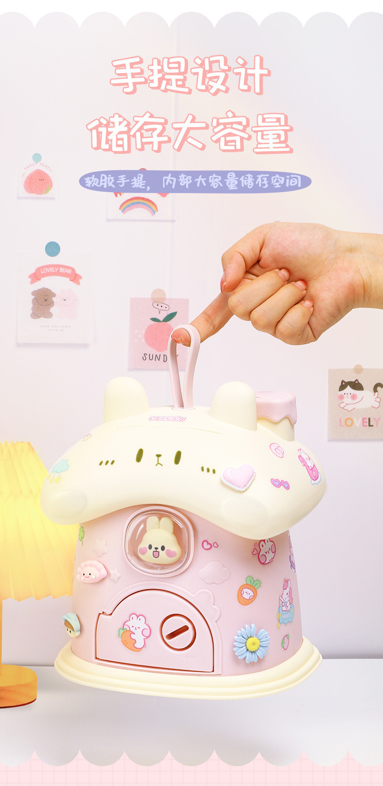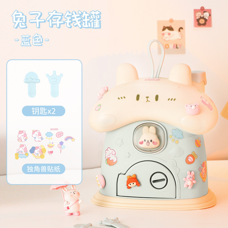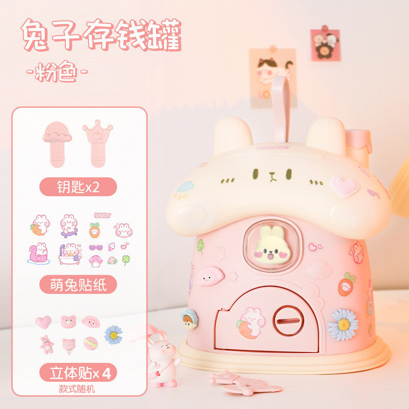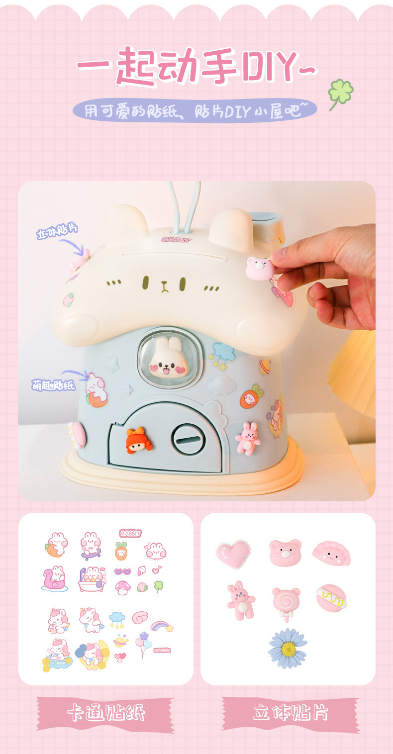 Ins 귀여운 만화 토끼 DIY 스티커 돼지 저금통 바람직한 저장 돼지 저금통 어린이를위한 높은 색상 가치 생일 선물