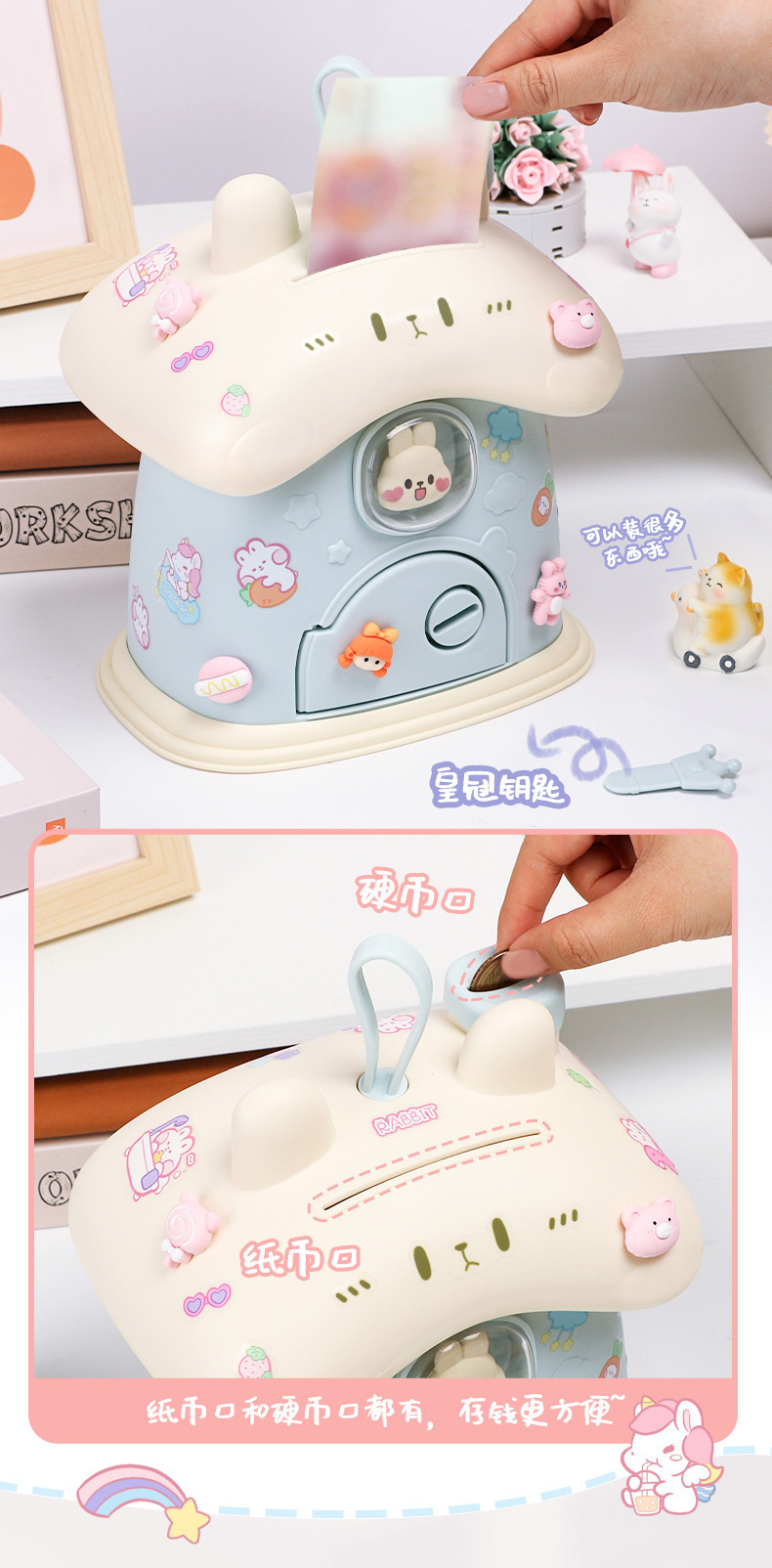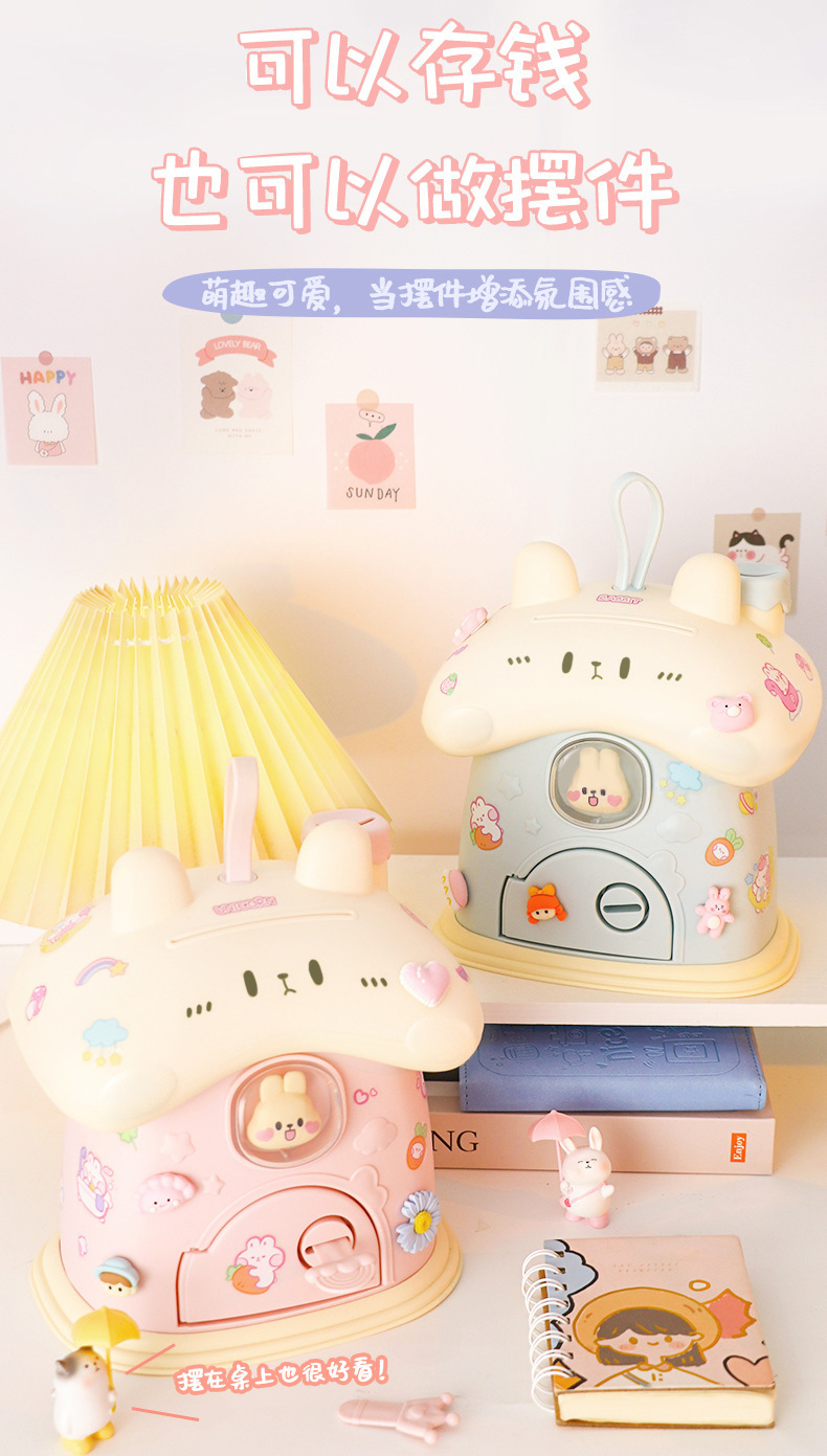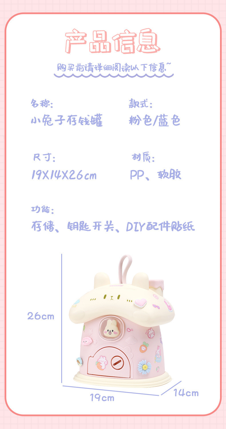 Ins 귀여운 만화 토끼 DIY 스티커 돼지 저금통 바람직한 저장 돼지 저금통 어린이를위한 높은 색상 가치 생일 선물스토어 가기