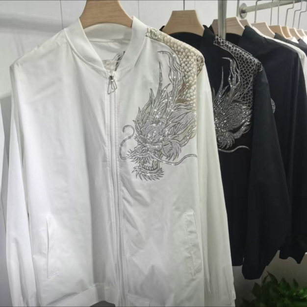 싱글 레이어 자외선 차단제 봄과 여름 새로운 오버 숄더 용 모조 다이아몬드 재킷 정신 남자 폭발 용 프린트 코트 남성과 여성스토어 가기