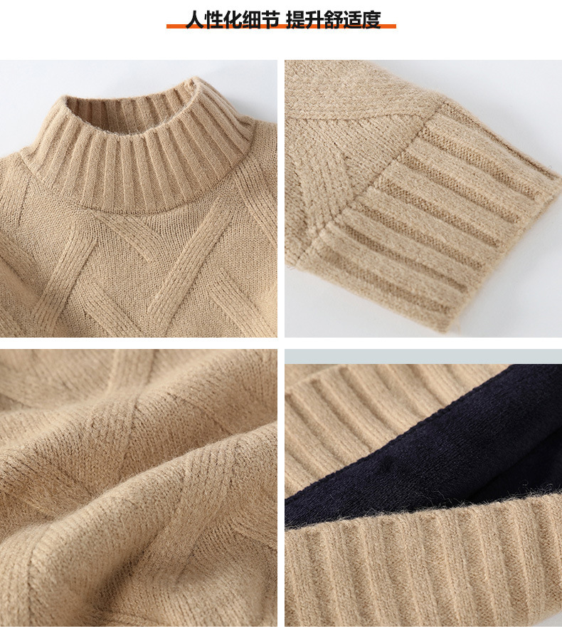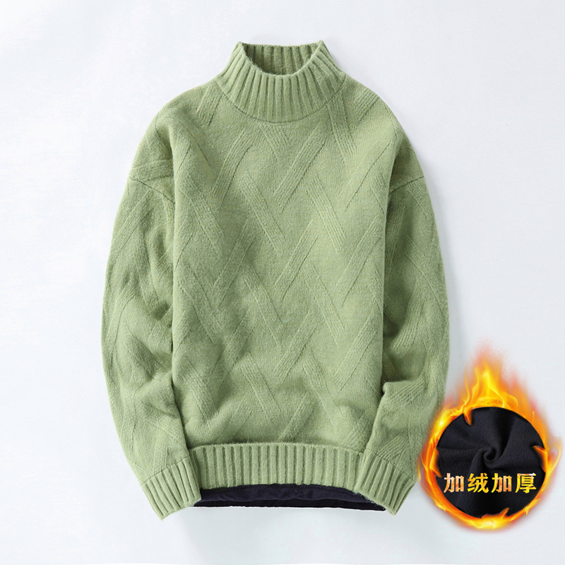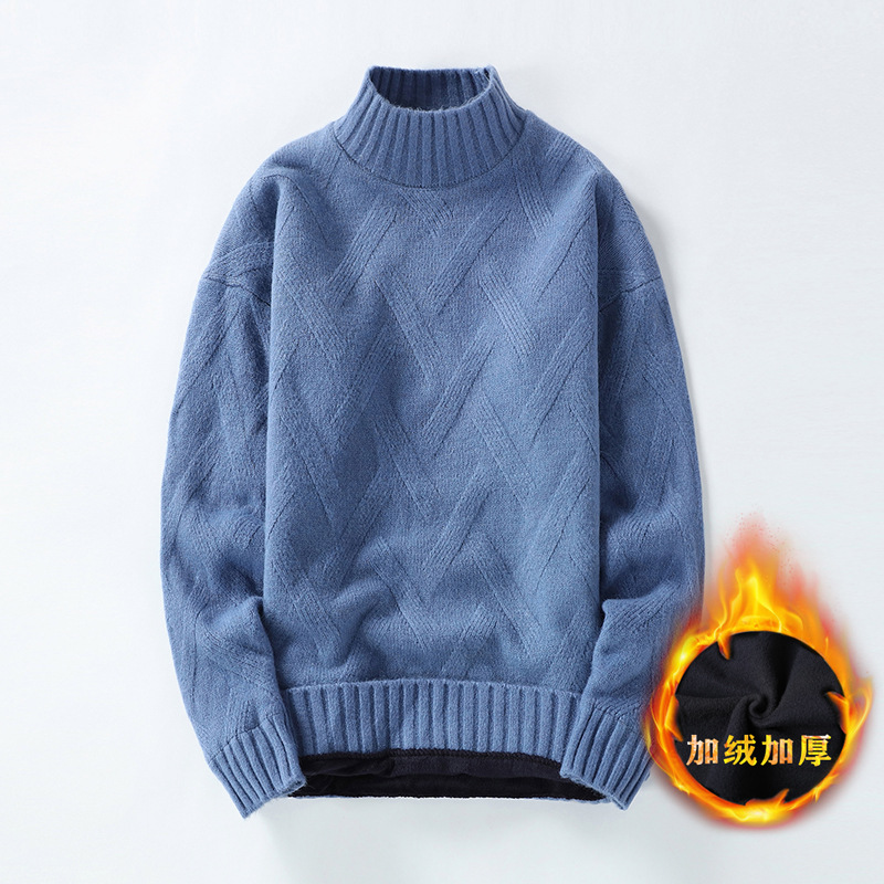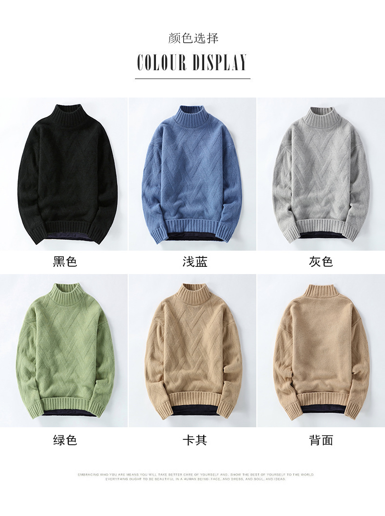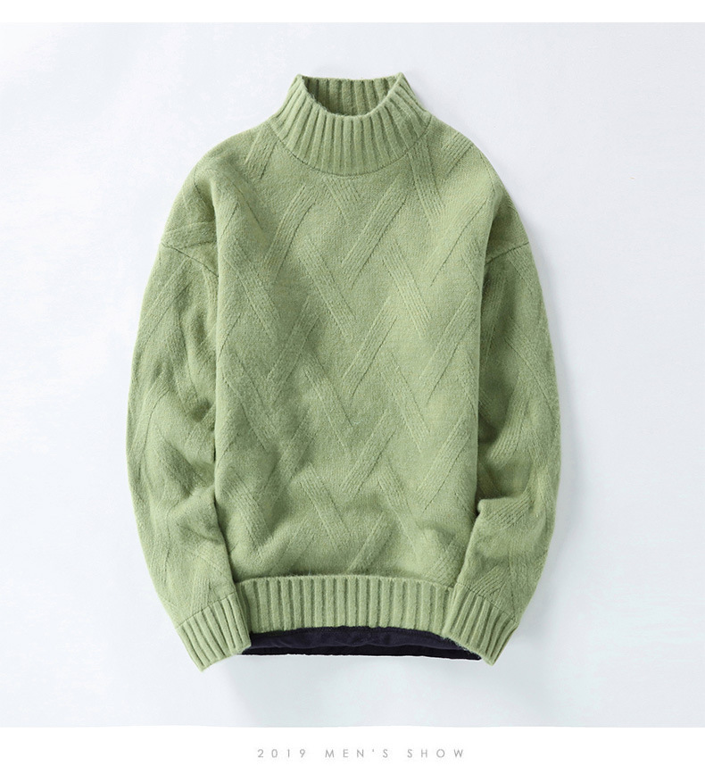 2020 새로운 가을과 겨울 반 터틀넥 스웨터 남자 한국 스타일 느슨한 니트 스웨터 유행 기모 두꺼운 따뜻한 옷