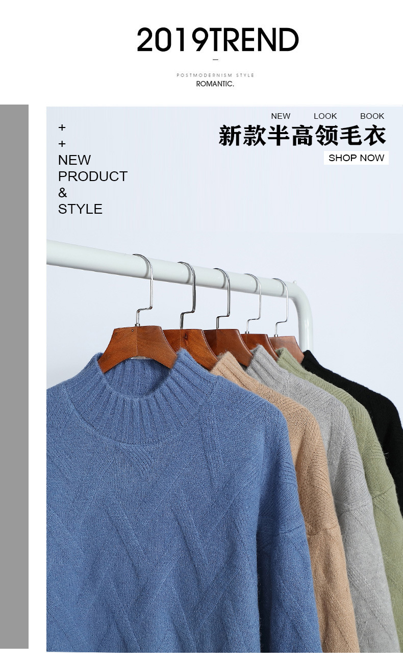 2020 새로운 가을과 겨울 반 터틀넥 스웨터 남자 한국 스타일 느슨한 니트 스웨터 유행 기모 두꺼운 따뜻한 옷스토어 가기