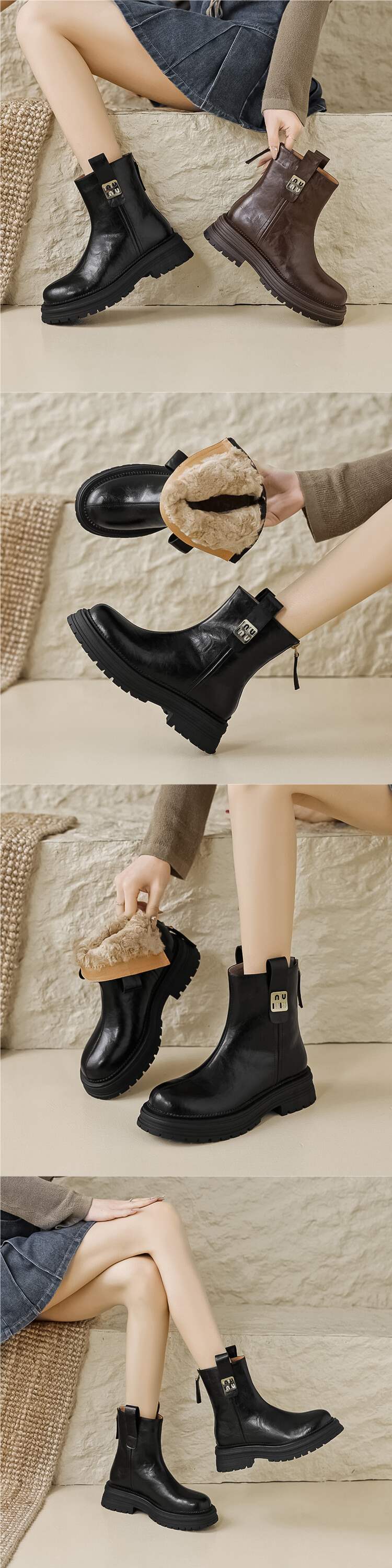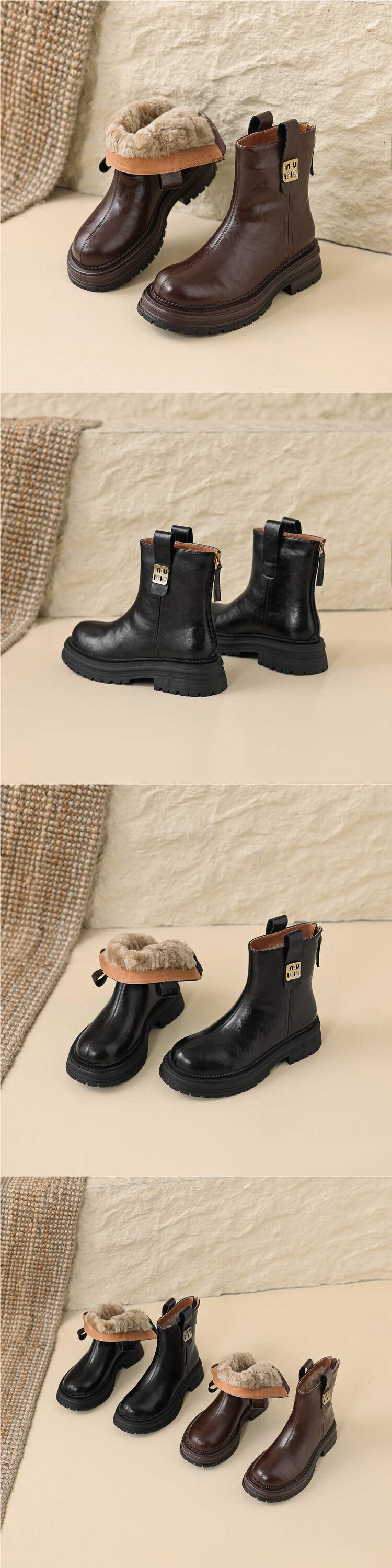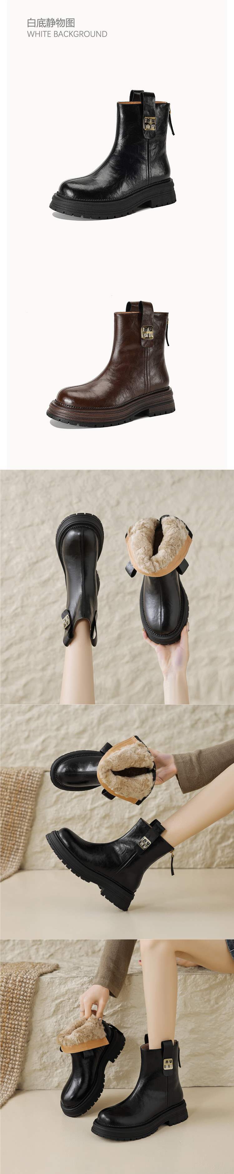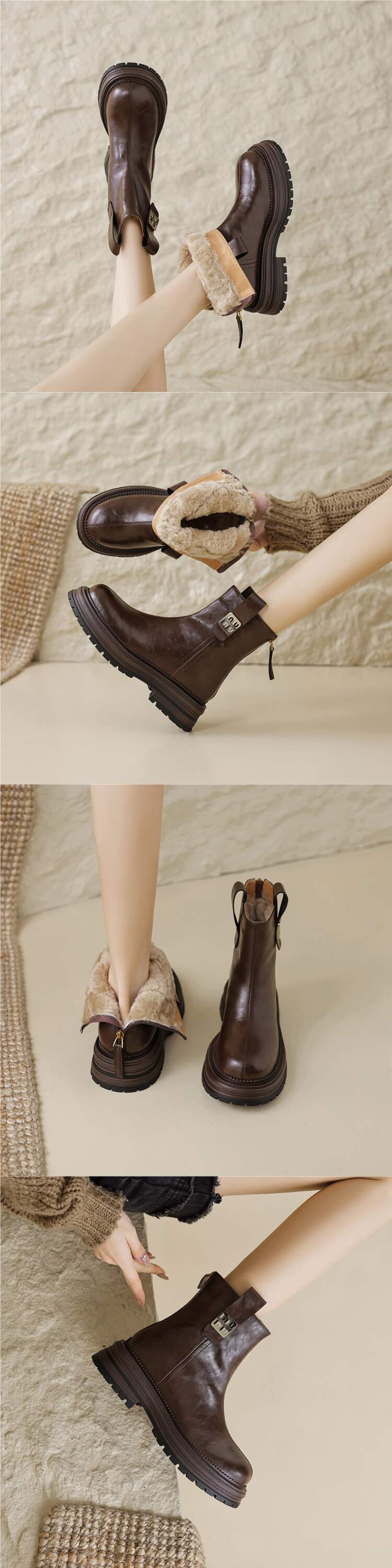 순수한 양모! 겨울 전체 Cowhide 짧은 부츠 여성 기모 두꺼운 밑창 마틴 부츠 모피 원피스 코튼 양고기 양모 신발스토어 가기