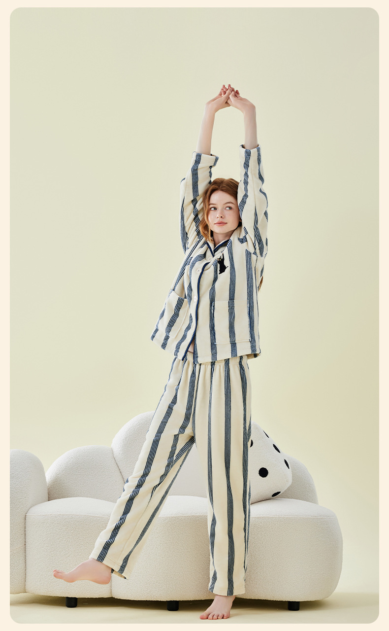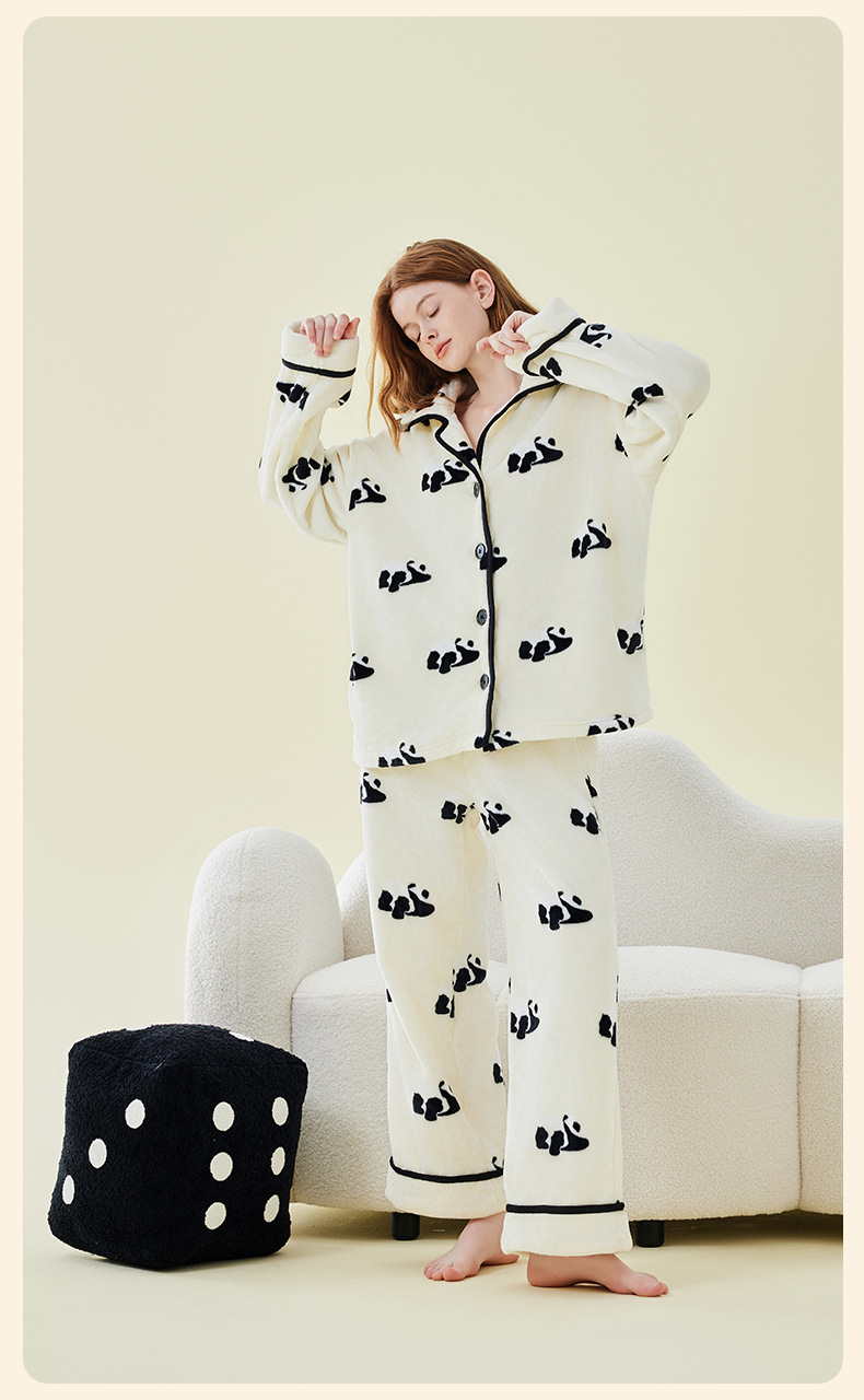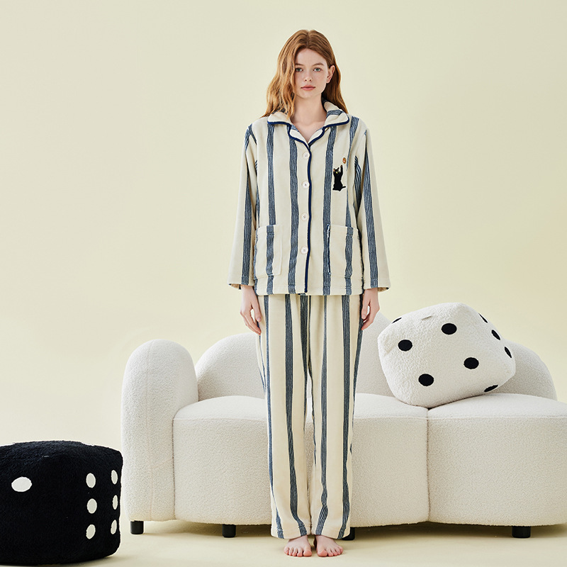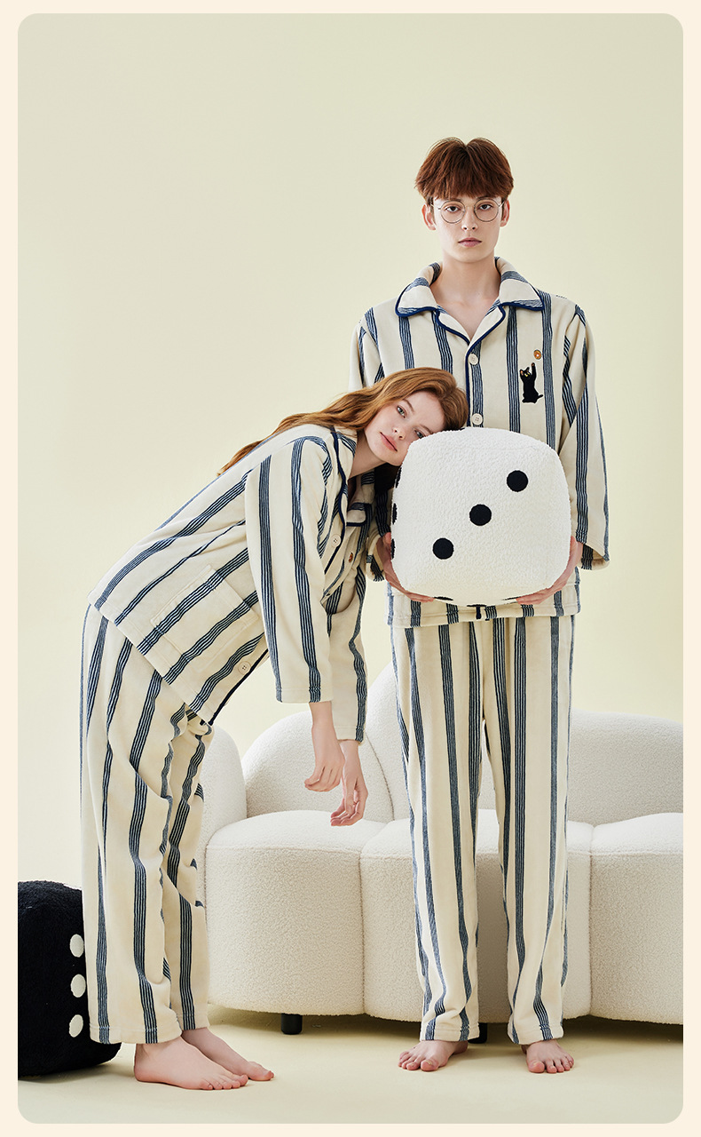 클래스 A 겨울 플란넬 파자마 남자 고양이 자수 남자 파자마 산호 양털 홈 옷 두꺼운 따뜻한 세트