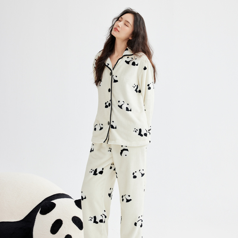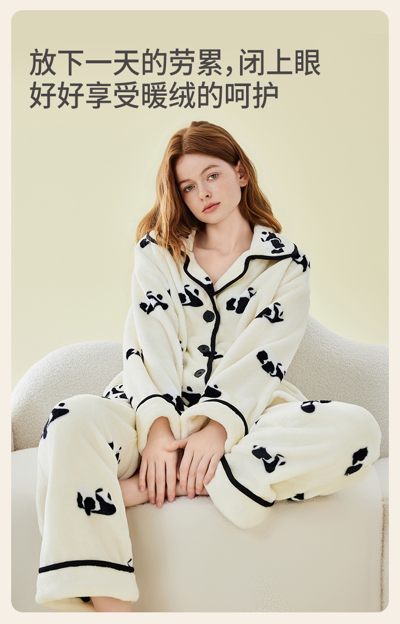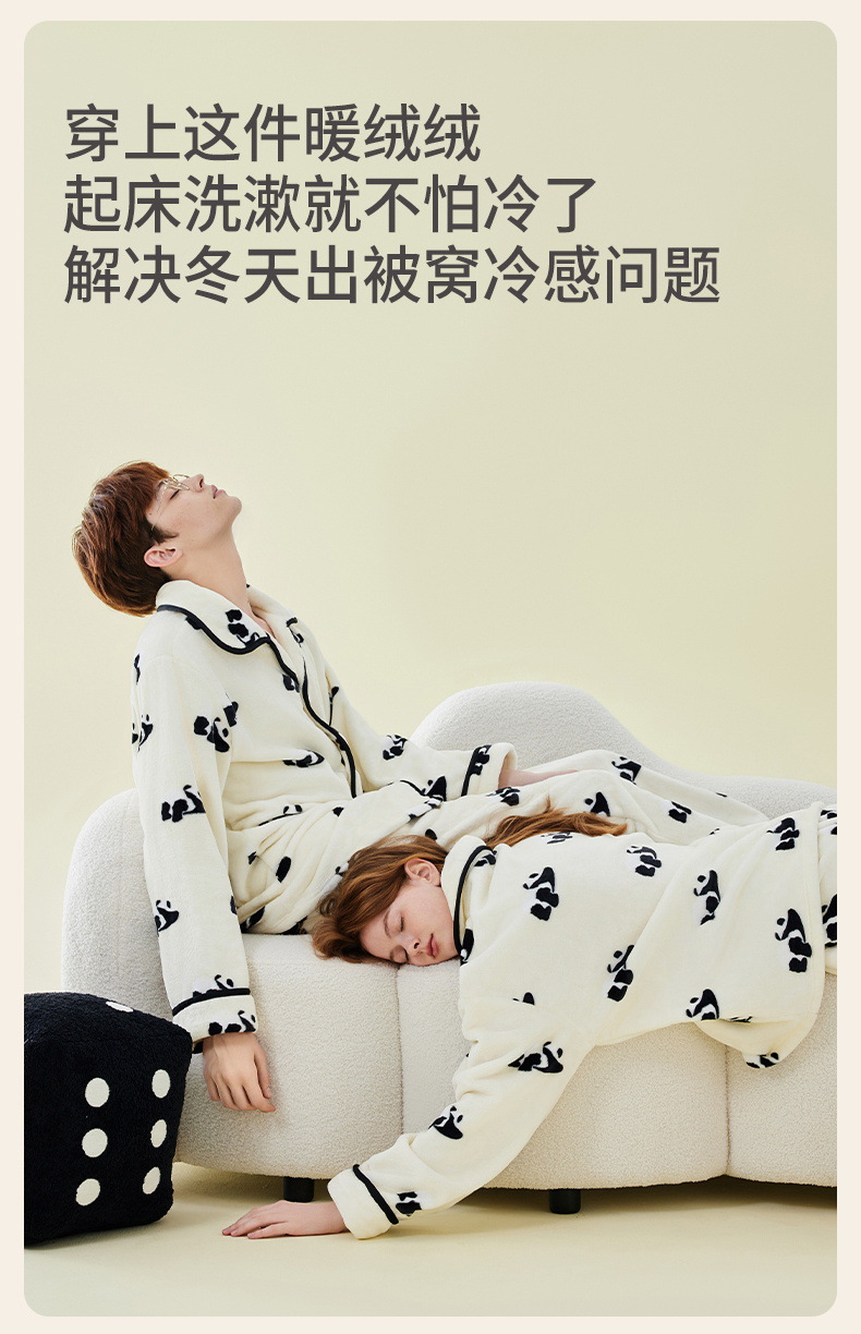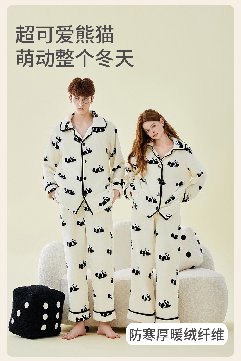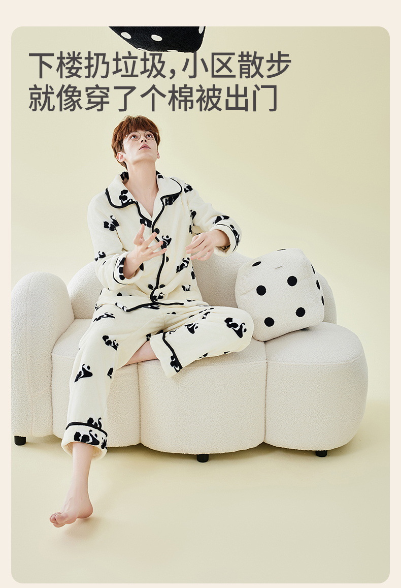 클래스 A 겨울 플란넬 파자마 남자 고양이 자수 남자 파자마 산호 양털 홈 옷 두꺼운 따뜻한 세트스토어 가기
