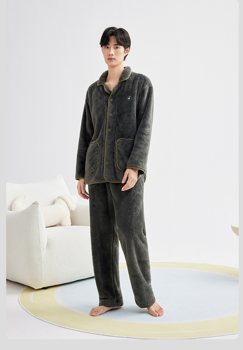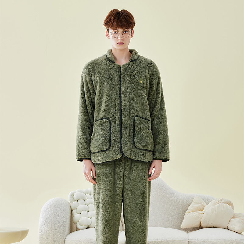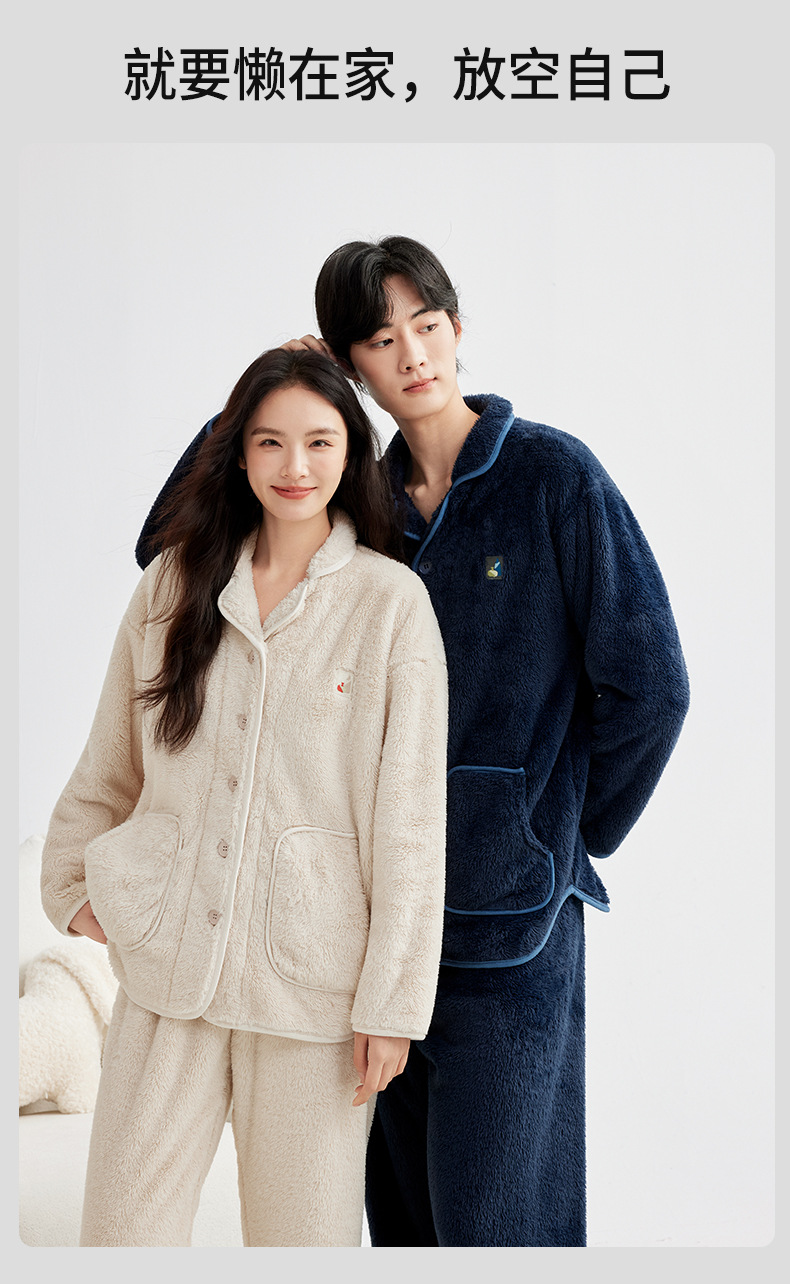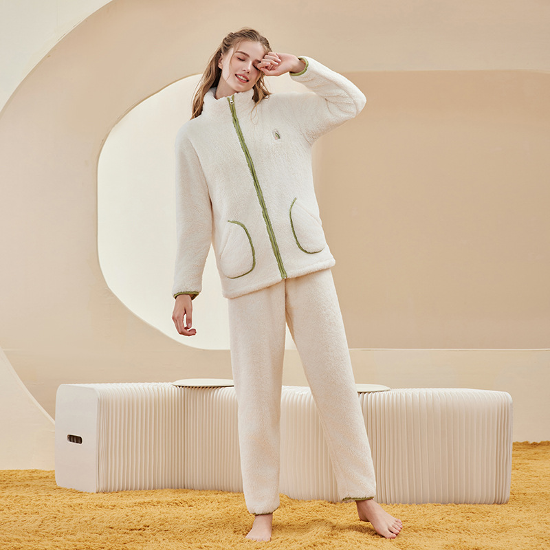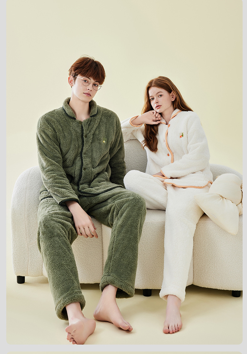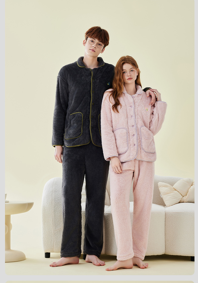 가을 겨울 두꺼운 산호 벨벳 잠옷 여성용 겨울 외출용 벨벳 플란넬 커플 남성용 홈웨어 보온 세트