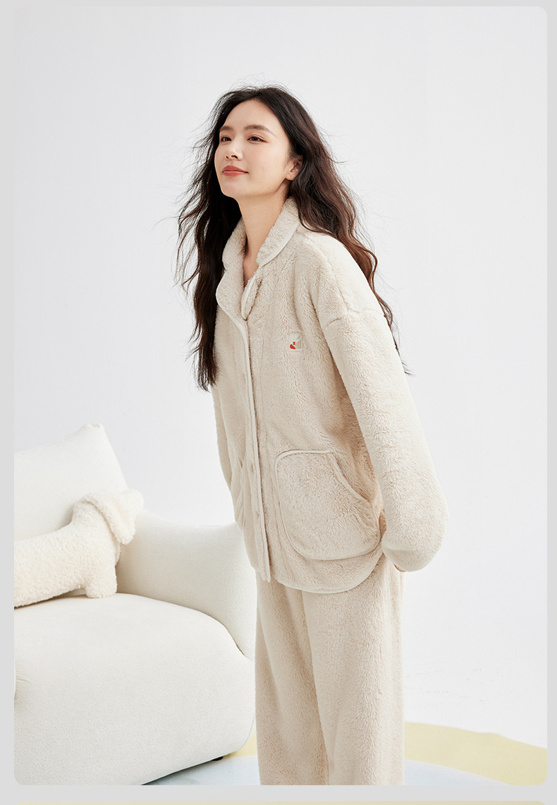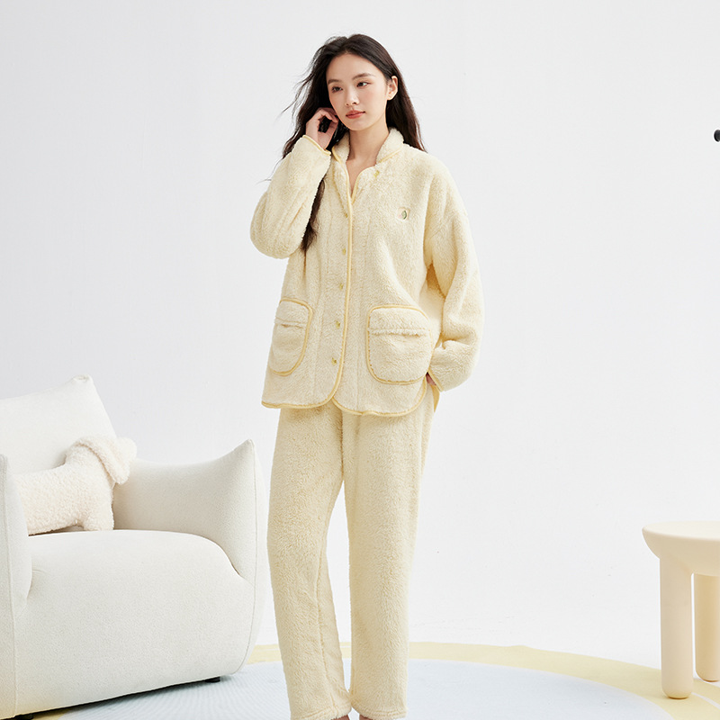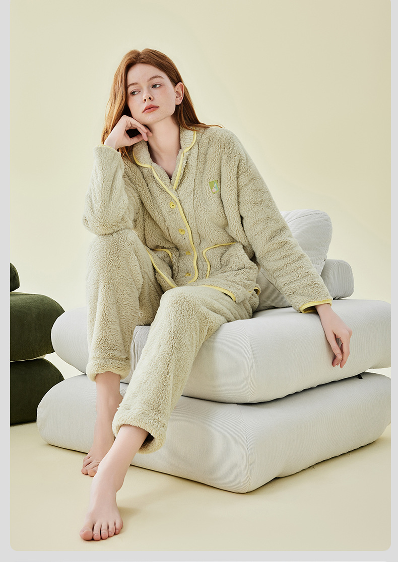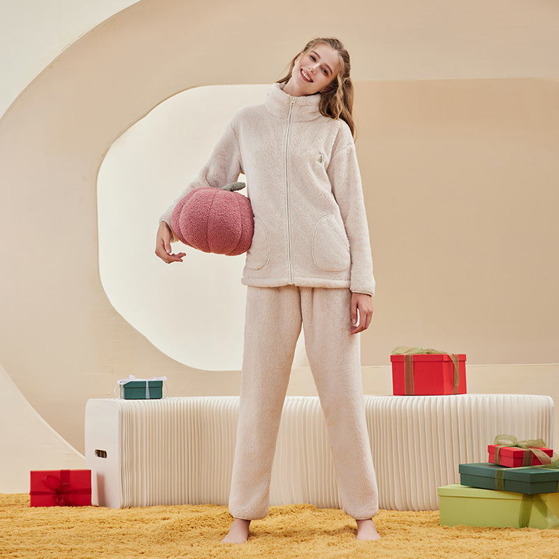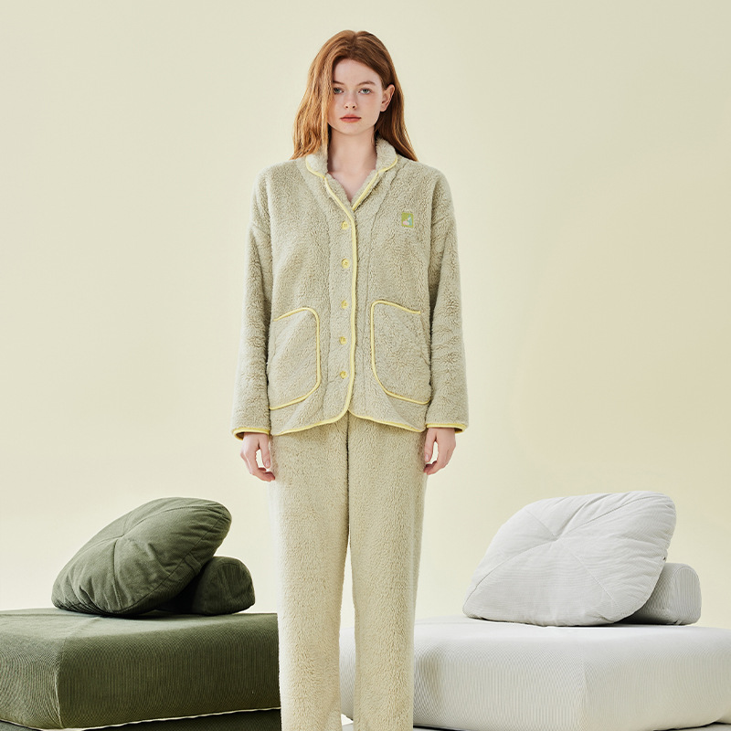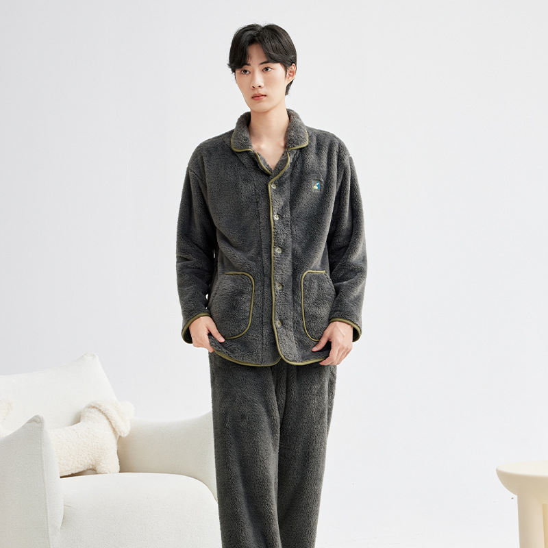 가을 겨울 두꺼운 산호 벨벳 잠옷 여성용 겨울 외출용 벨벳 플란넬 커플 남성용 홈웨어 보온 세트