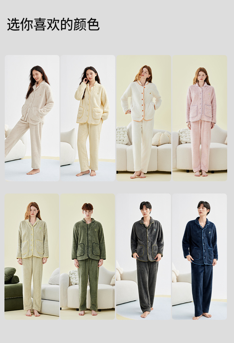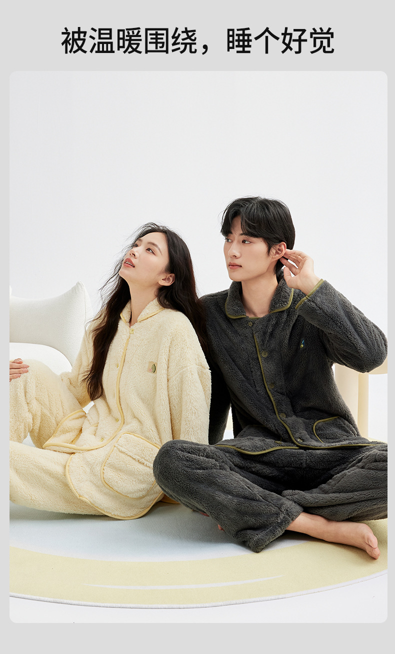 가을 겨울 두꺼운 산호 벨벳 잠옷 여성용 겨울 외출용 벨벳 플란넬 커플 남성용 홈웨어 보온 세트스토어 가기