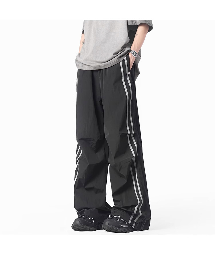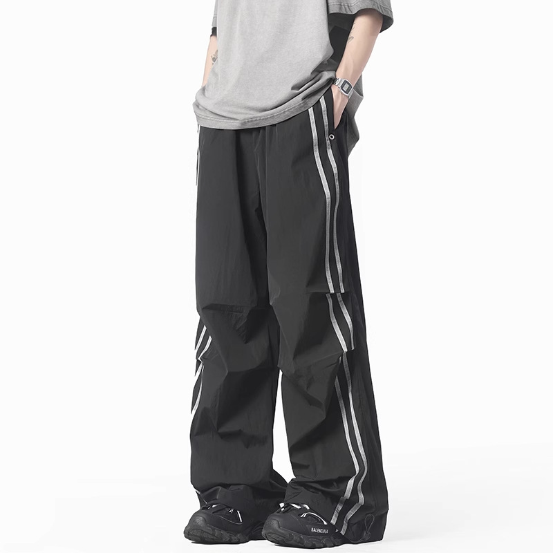 낙하산 병사 바지 남자의 가을과 겨울 미국 하이 스트리트 빠른 건조 2 바 캐주얼 바지 고급 와이드 레그 바지