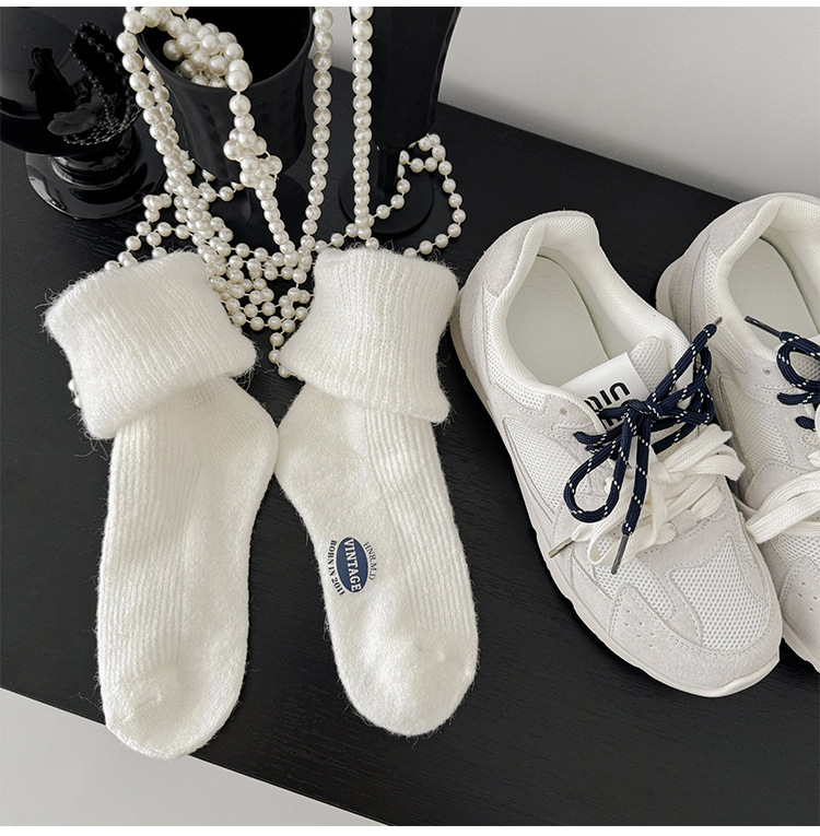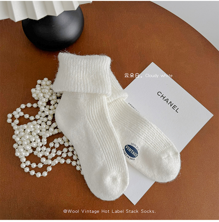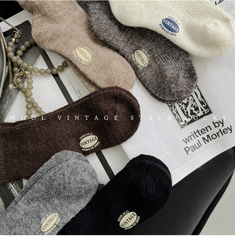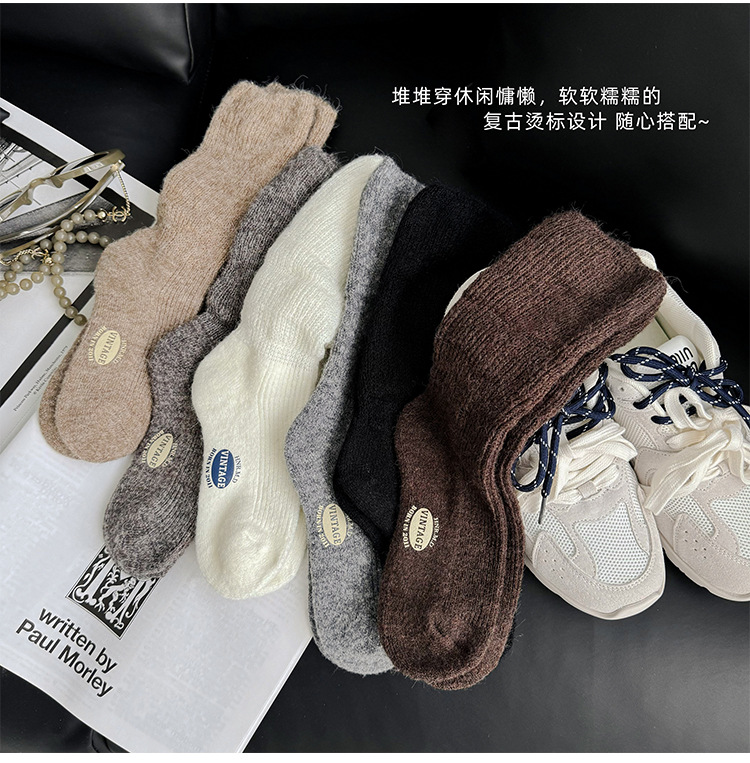 2024 양말 여성 가을과 겨울 양모 푹신한 모헤어 빈티지 핫 표준 더미 양말 여성 스타킹 도매스토어 가기