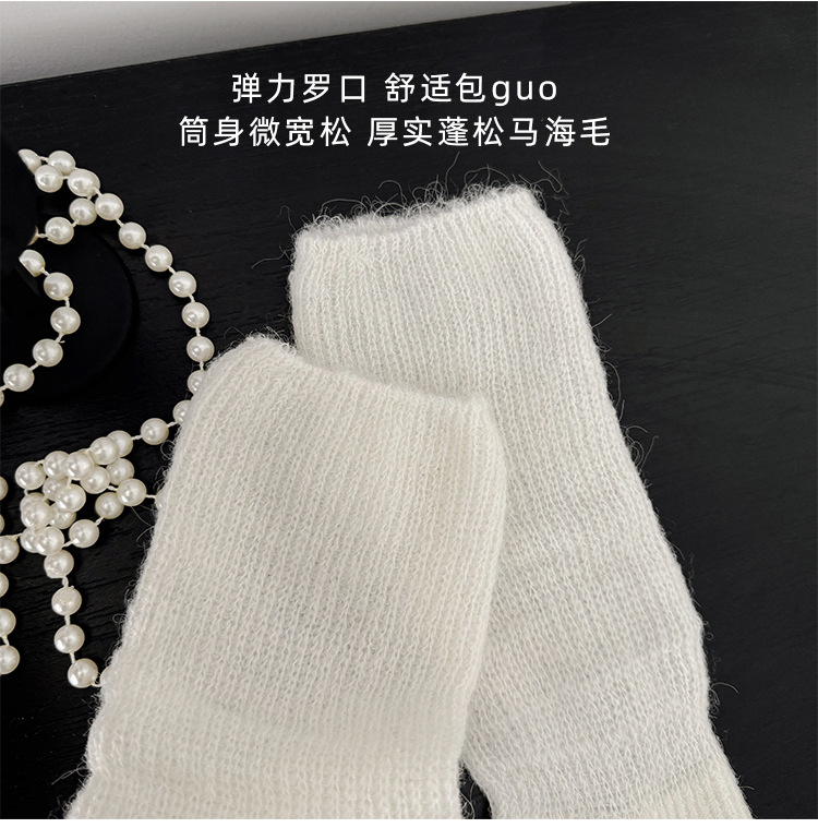 2024 양말 여성 가을과 겨울 양모 푹신한 모헤어 빈티지 핫 표준 더미 양말 여성 스타킹 도매