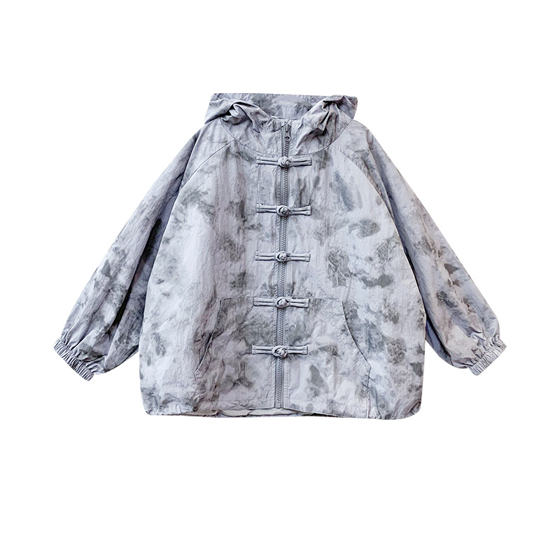아동 코트 봄 2025 새로운 스타일 소년의 새로운 중국 스타일 타이 염색 버튼 트렌디 쿨 재킷 아동용 후드 탑