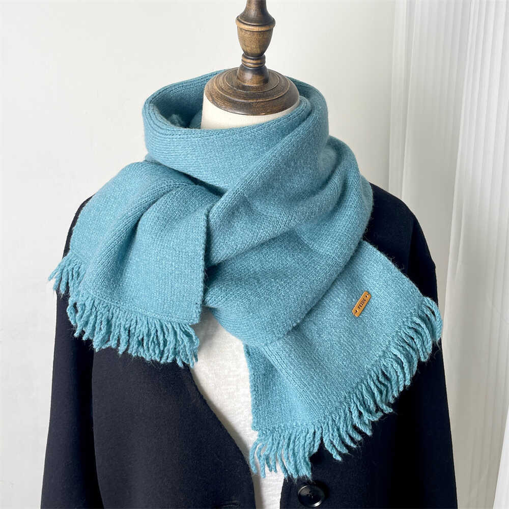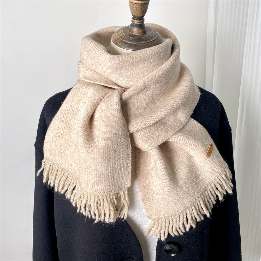 고급 베이지 울 블렌드 니트 스카프 여성 가을 및 겨울 일본 스타일 올 매치 소프트 왁스 따뜻한 울 스카프 남성용