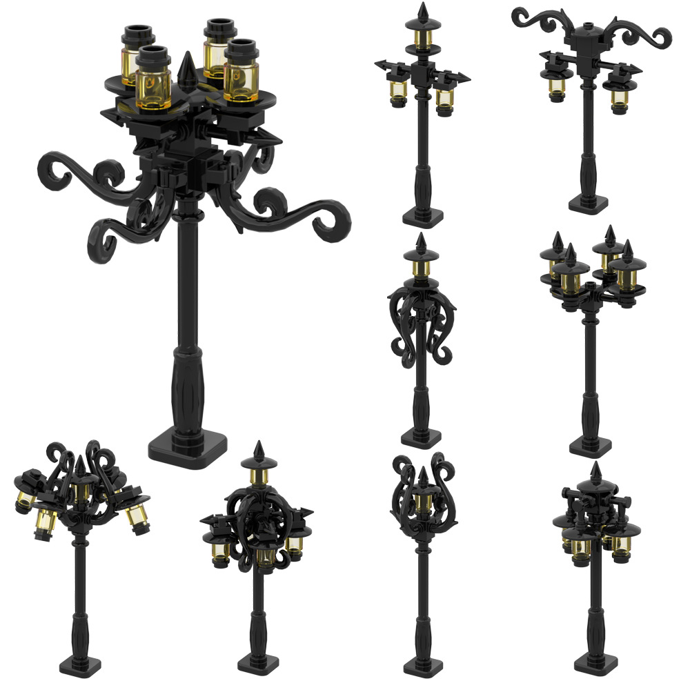MOC 빌딩 블록 조립 할로윈 복고풍 중세 도시 장면 거리 조명 시리즈 창조적 인 장식품