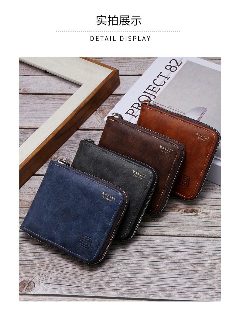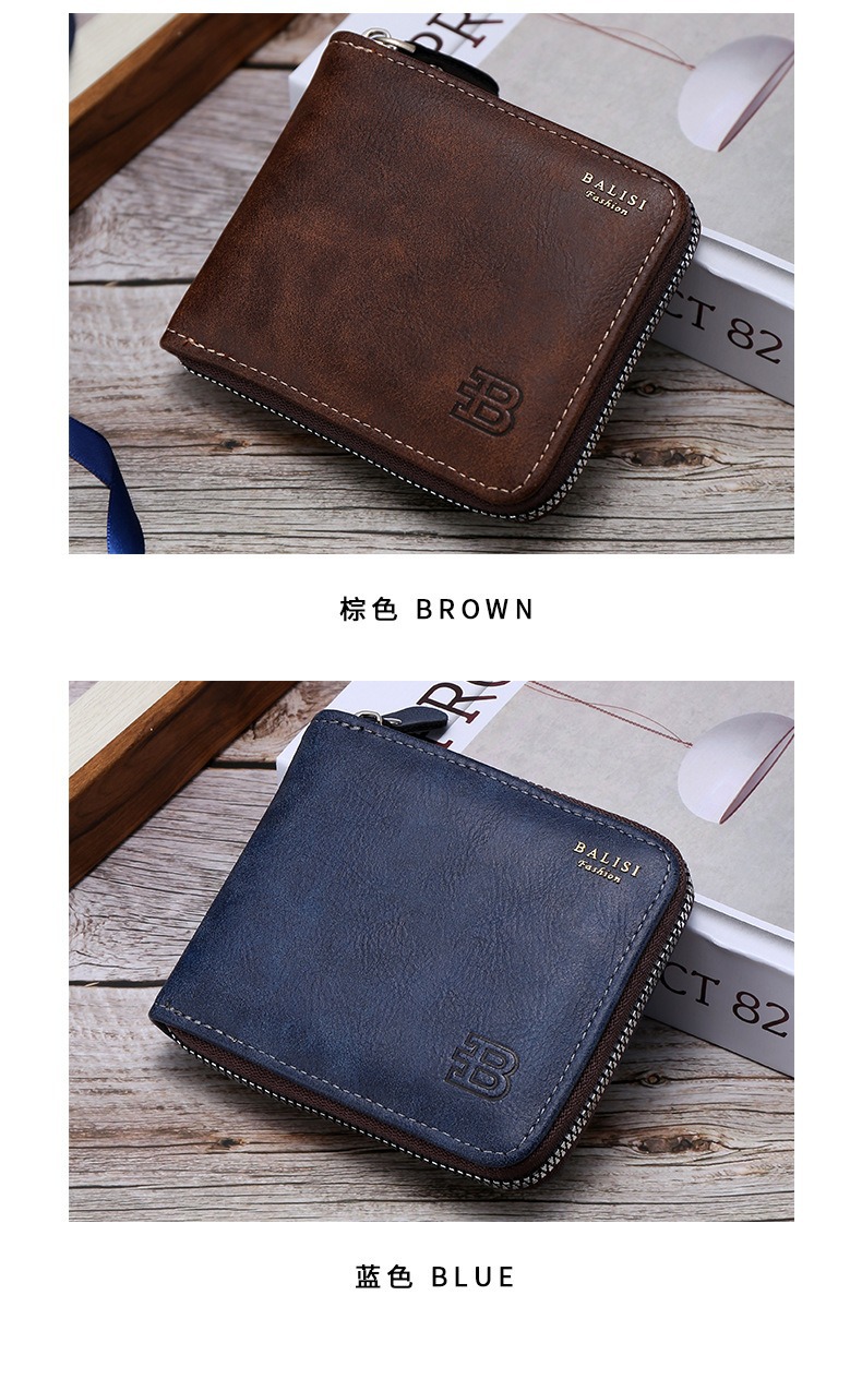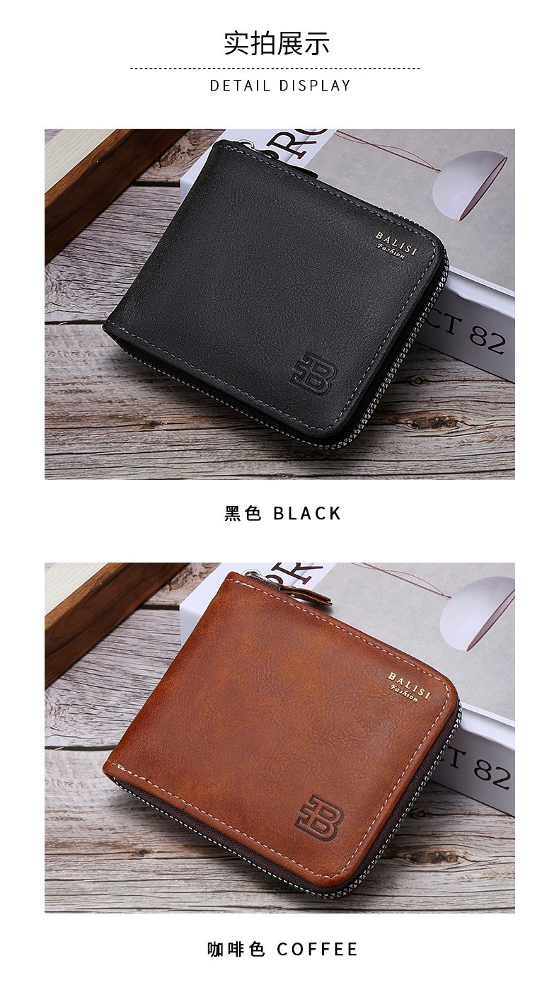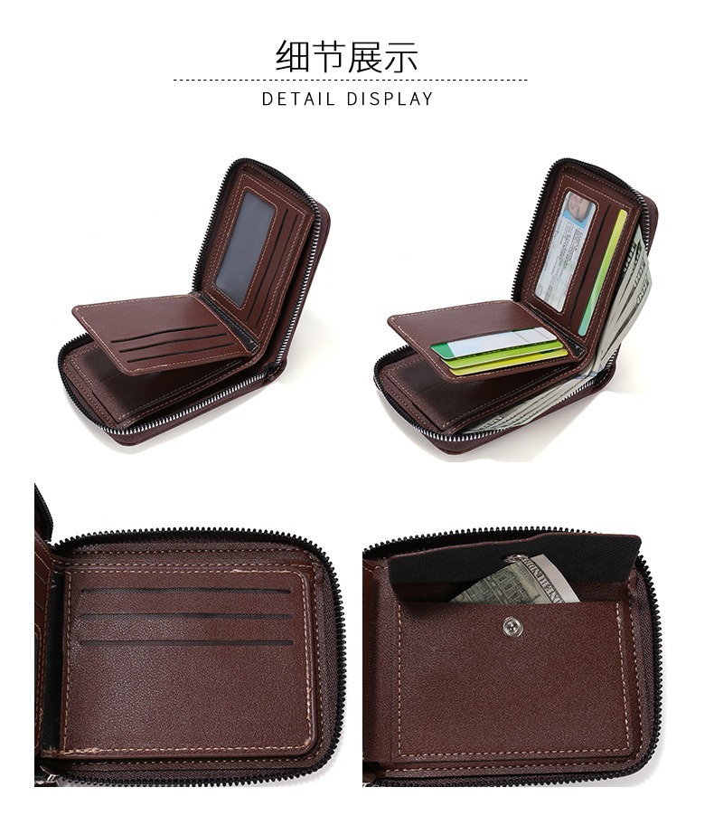 대외 무역 맞춤형 남성용 지갑 짧은 복고풍 pu 동전 지갑 단색 단순 다기능 대용량 지퍼 지갑스토어 가기
