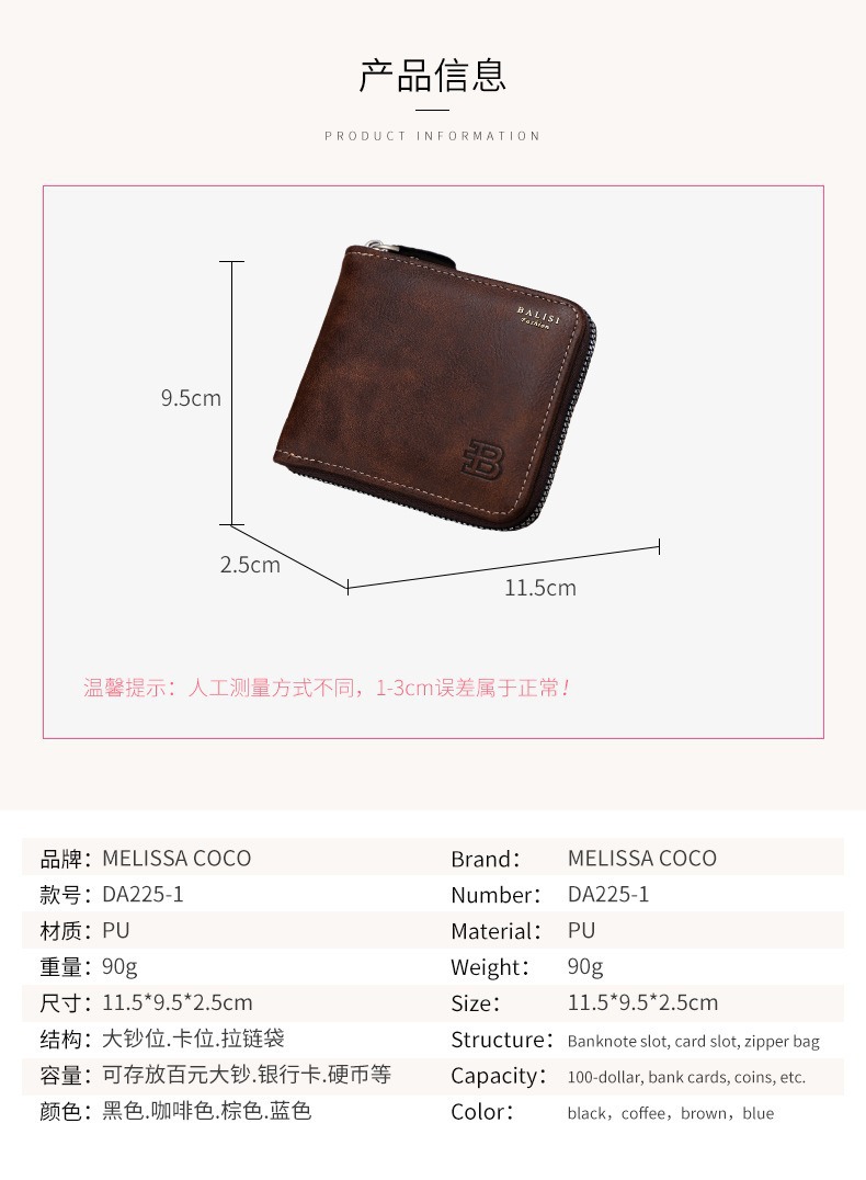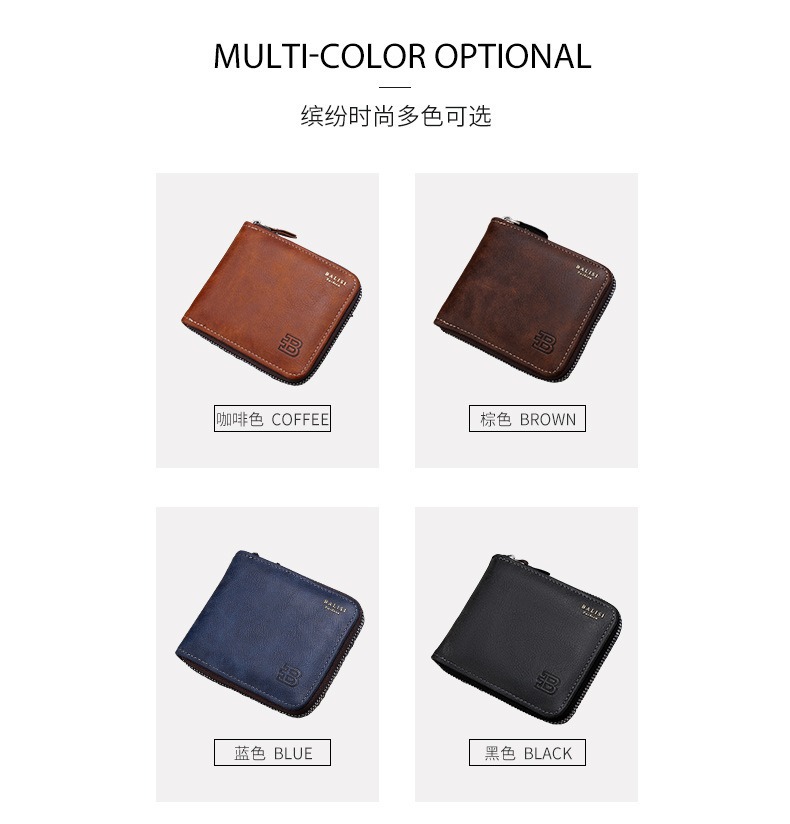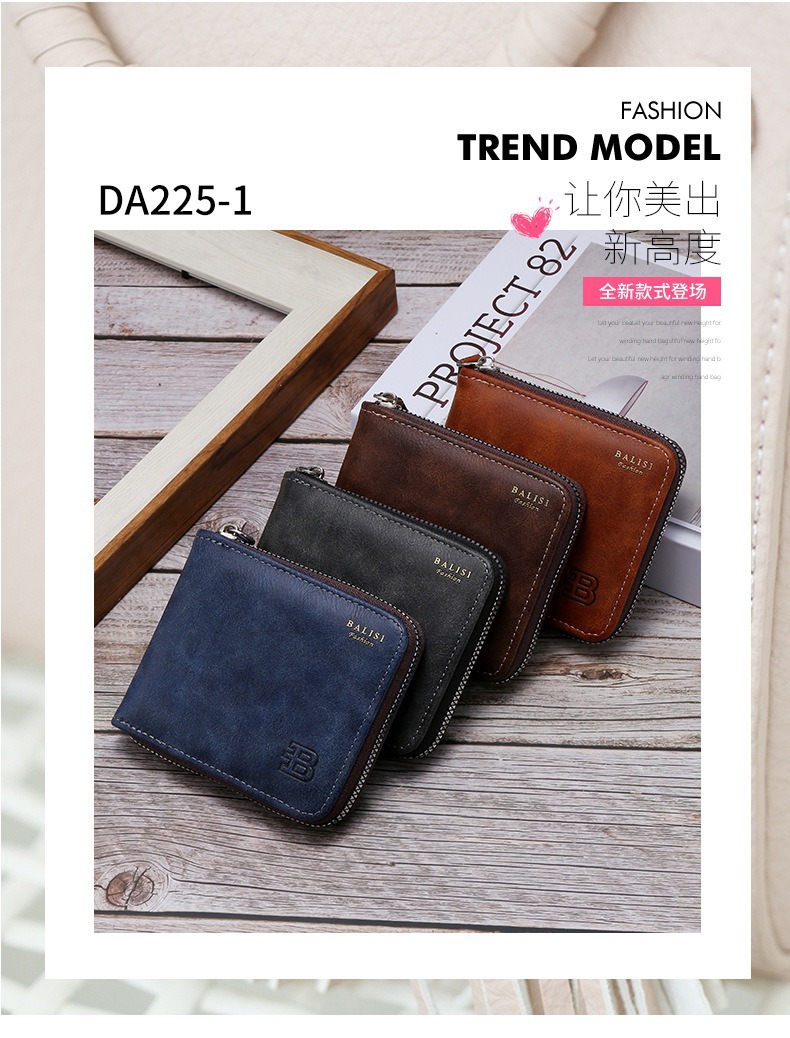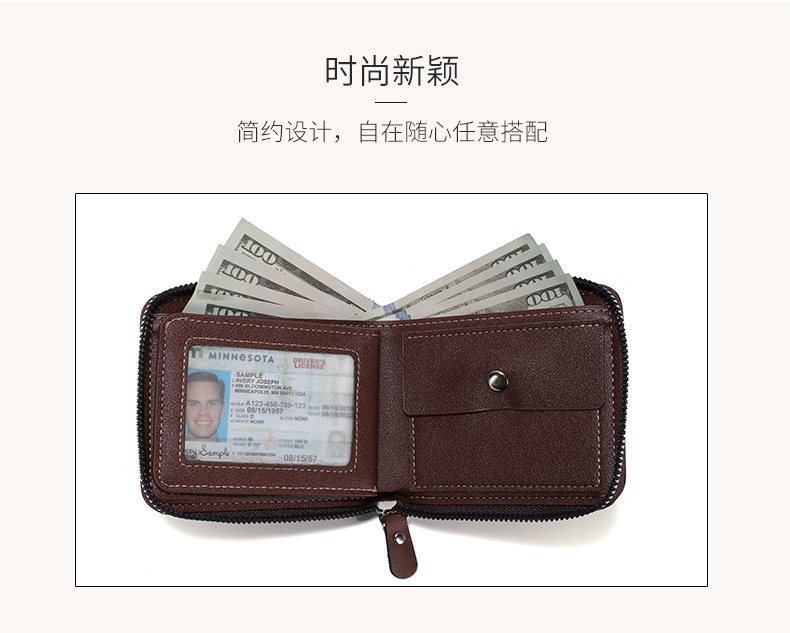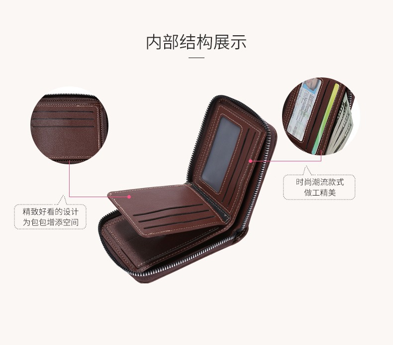 대외 무역 맞춤형 남성용 지갑 짧은 복고풍 pu 동전 지갑 단색 단순 다기능 대용량 지퍼 지갑스토어 가기