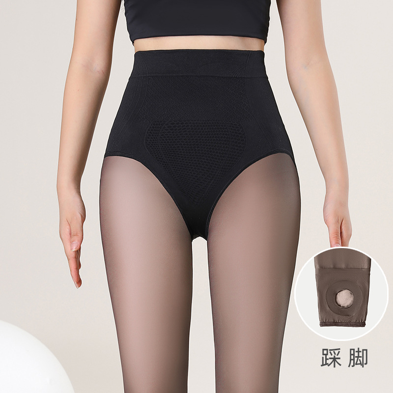 400g 소형 블랙 실크 레깅스 여성용 가을 겨울용 두꺼운 일체형 플리스 블랙 투명 레깅스 워터 글로우스토어 가기