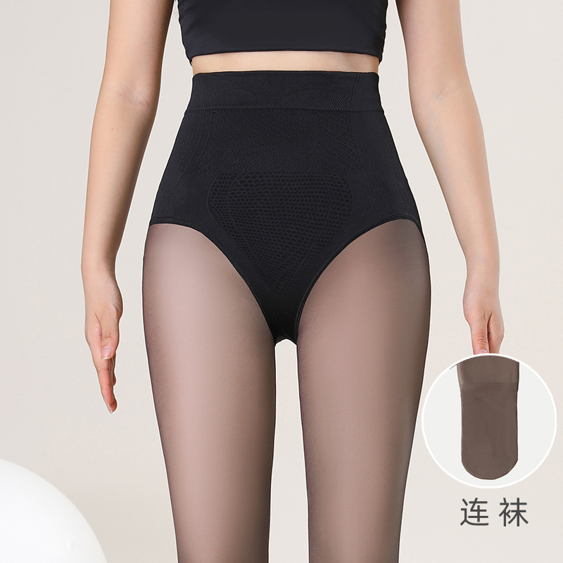 400g 소형 블랙 실크 레깅스 여성용 가을 겨울용 두꺼운 일체형 플리스 블랙 투명 레깅스 워터 글로우