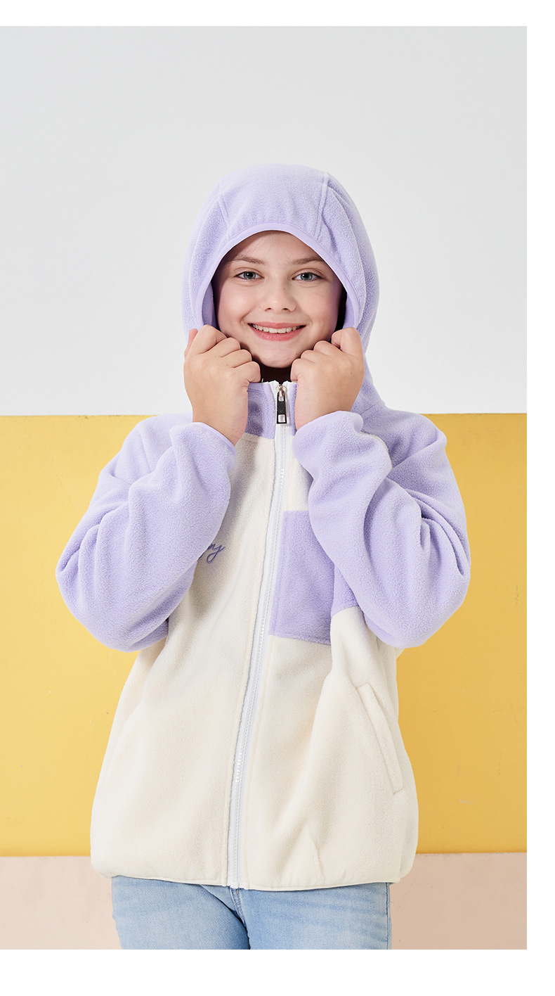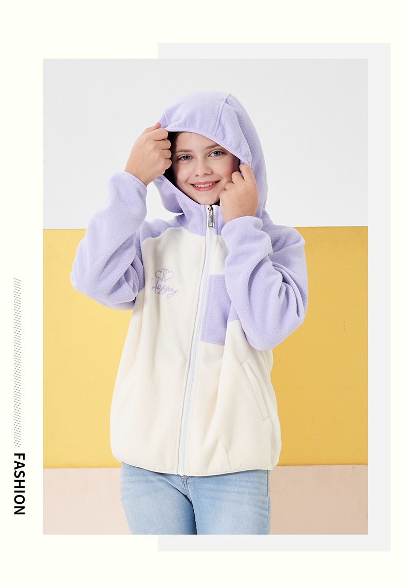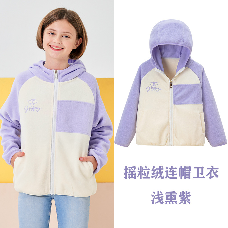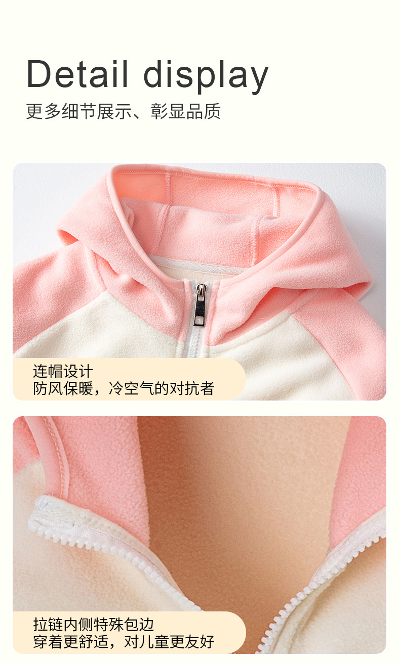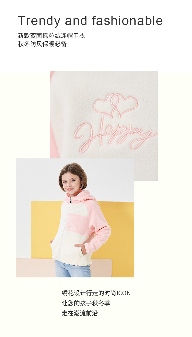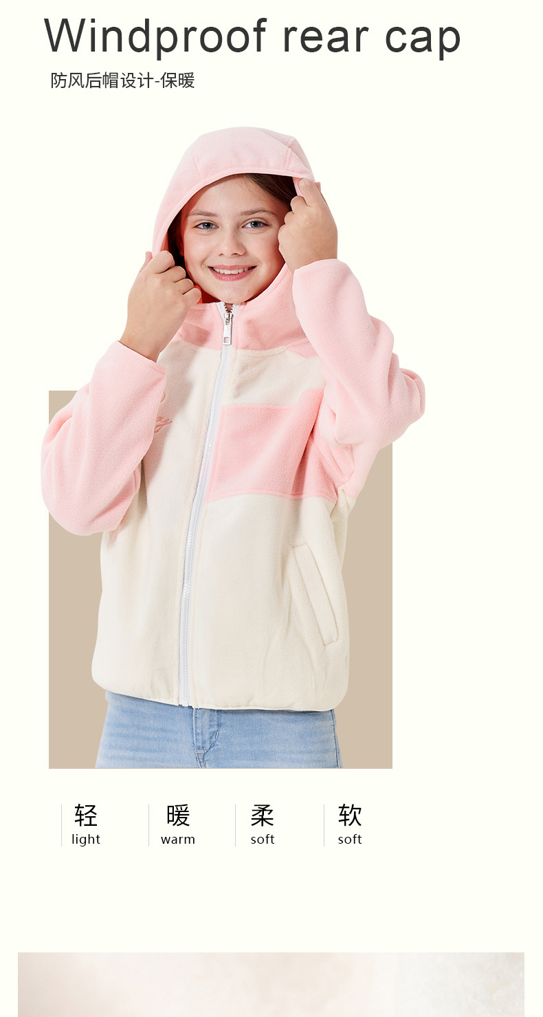 어린이 가을과 겨울 양면 양면 양면 후드 스웨터 작은 소녀 대조 컬러 루즈 스포츠 캐주얼 지퍼 카디건 재킷