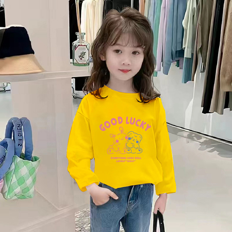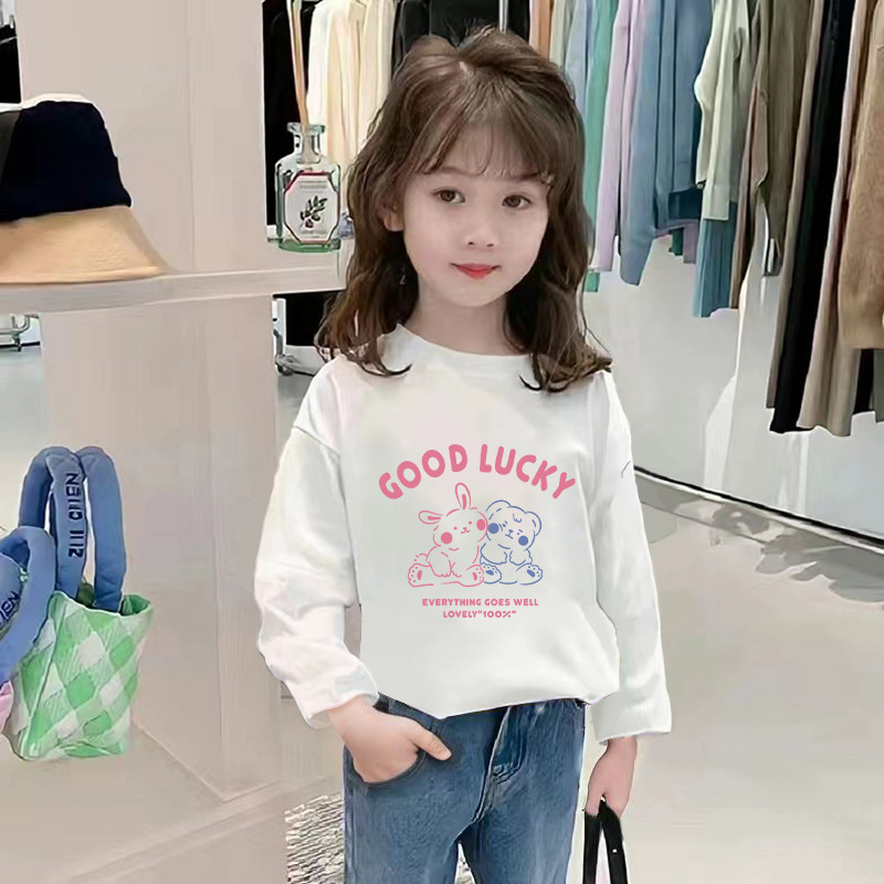H2330 % 100% 순면 어린이 긴팔 바닥 셔츠 봄과 가을 서양식 레저 티셔츠 아기 소녀 화이트 탑 조수 t스토어 가기