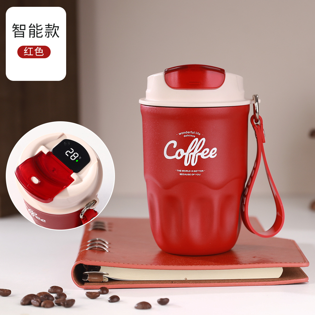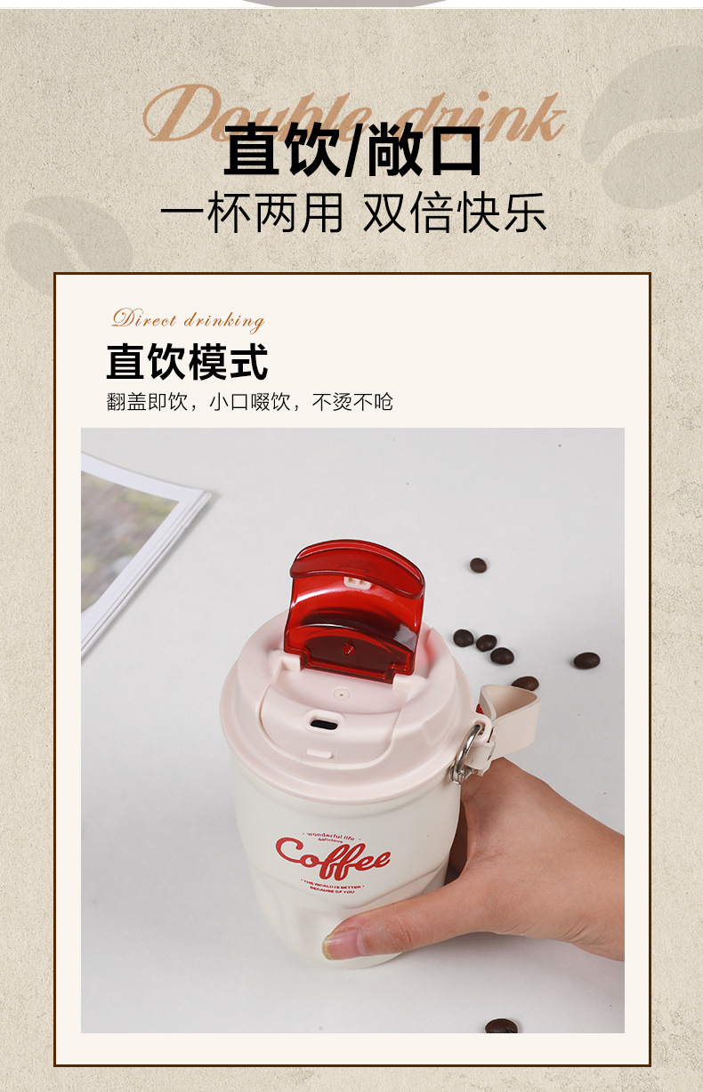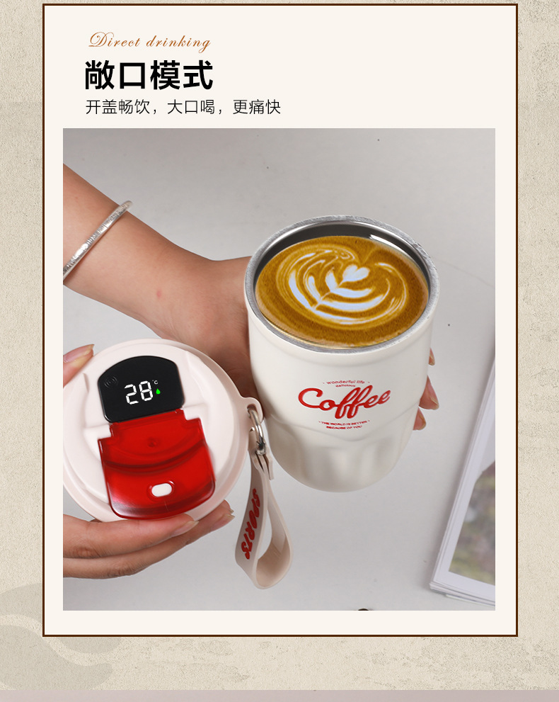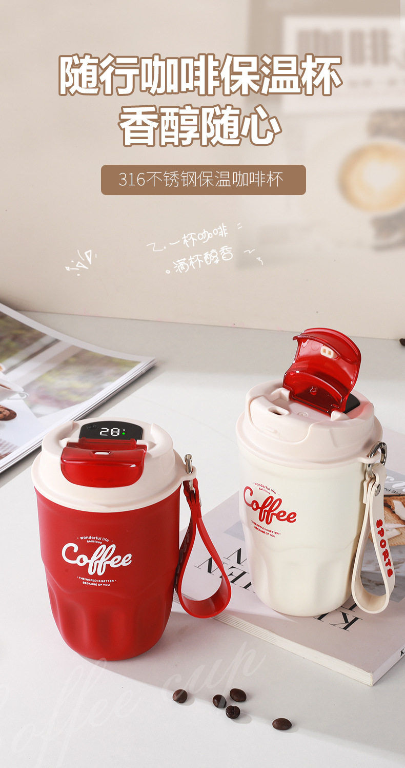 폭발 스타일 스마트 316 스테인레스 스틸 커피 컵 높은 색상 가치 끈 보온병 컵 남녀 선물 동반자 컵
