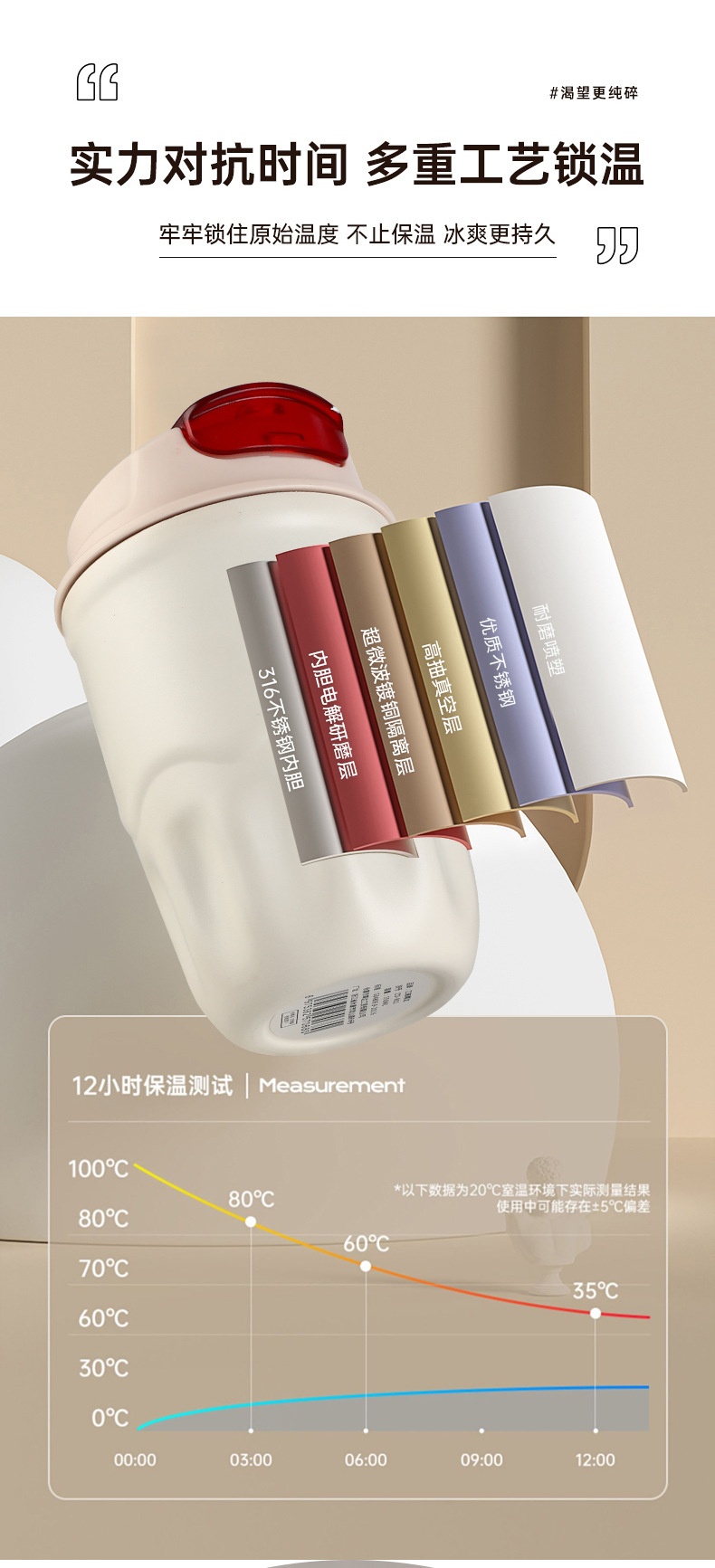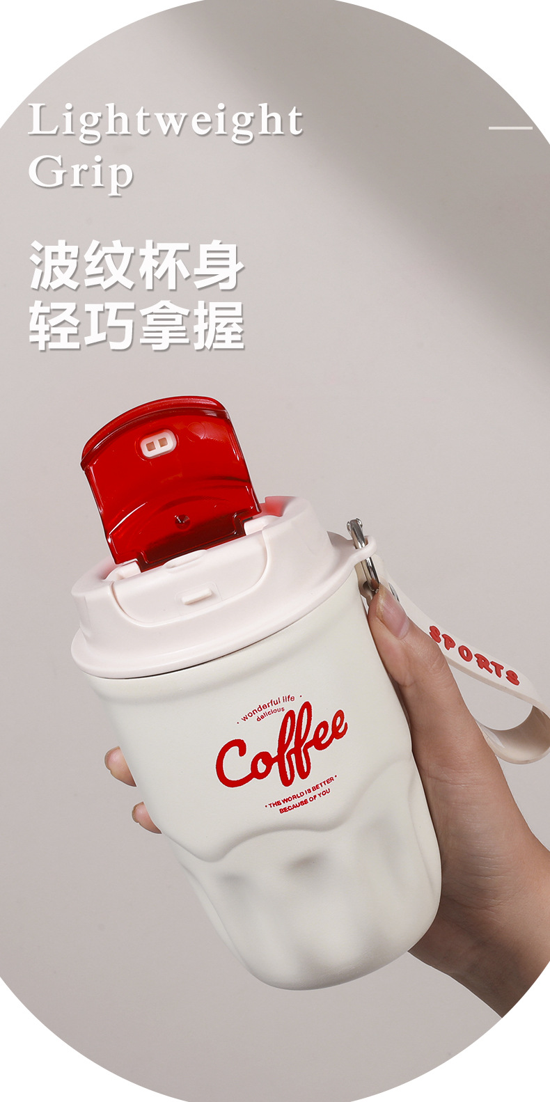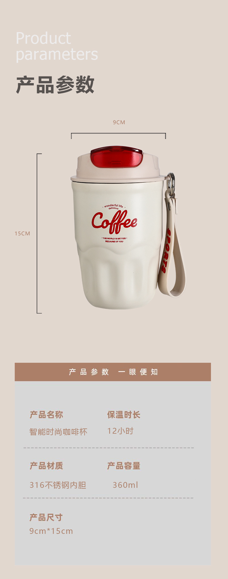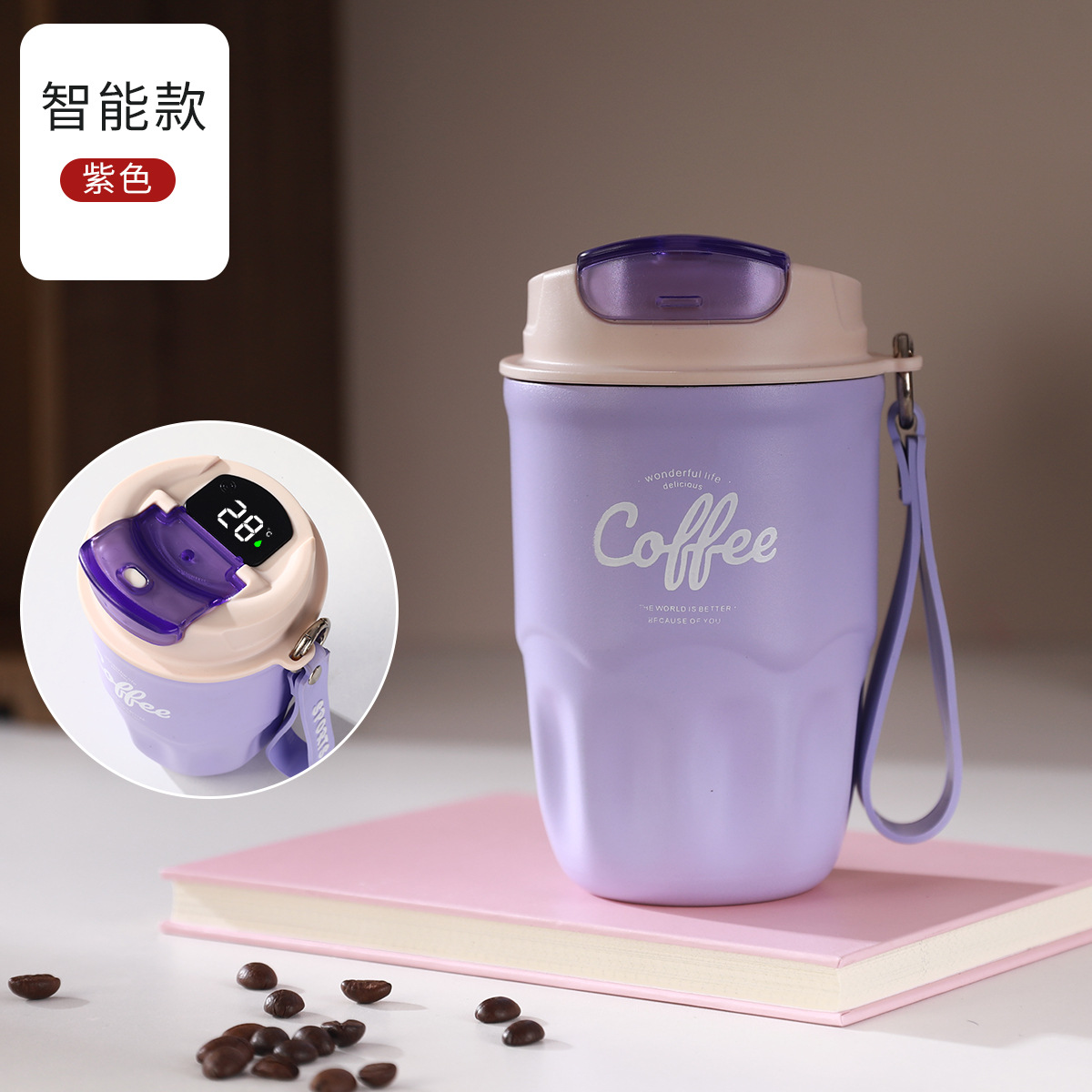 폭발 스타일 스마트 316 스테인레스 스틸 커피 컵 높은 색상 가치 끈 보온병 컵 남녀 선물 동반자 컵