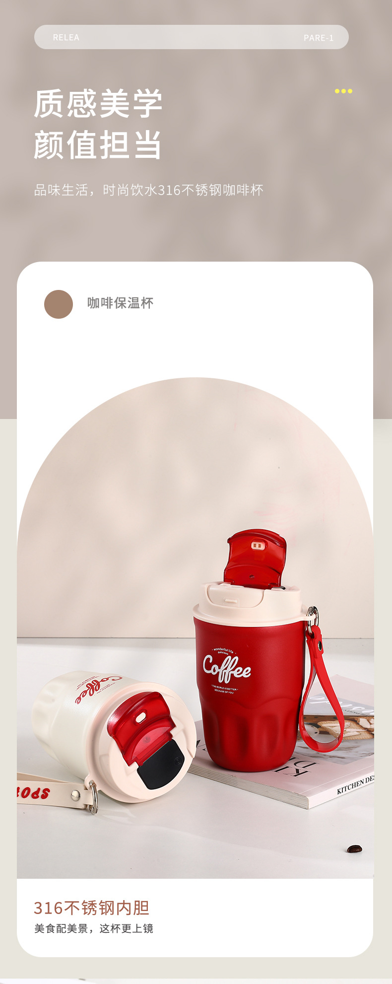 폭발 스타일 스마트 316 스테인레스 스틸 커피 컵 높은 색상 가치 끈 보온병 컵 남녀 선물 동반자 컵스토어 가기